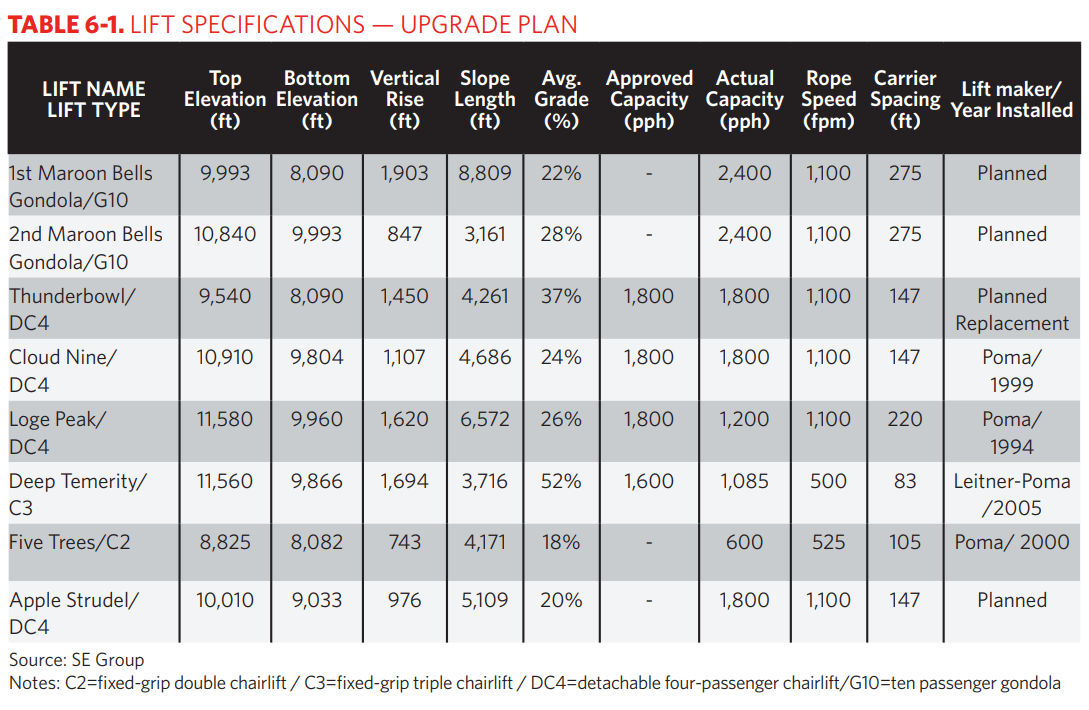 A final, interesting tidbit from the master plan is Aspen Snowmass seeks to connect some or all of its four mountains via lifts. “The technology exists to connect ski areas by aerial tramways, and there are multiple successful examples of these systems in operation in both resort and urban contexts throughout Europe as well as in North and South America,” SE Group notes. “However, the land use complexity, infrastructure costs and construction logistics in the Roaring Fork Valley are such that implementing a linked aerial tramway system across all four ski areas at Aspen/Snowmass provides a tremendous challenge. With that said, conditions are evolving to the point where constructing an aerial tramway connecting Aspen Highlands to Aspen Mountain, to Buttermilk and/or to nodes on the valley floor may prove feasible in the nearer term.”