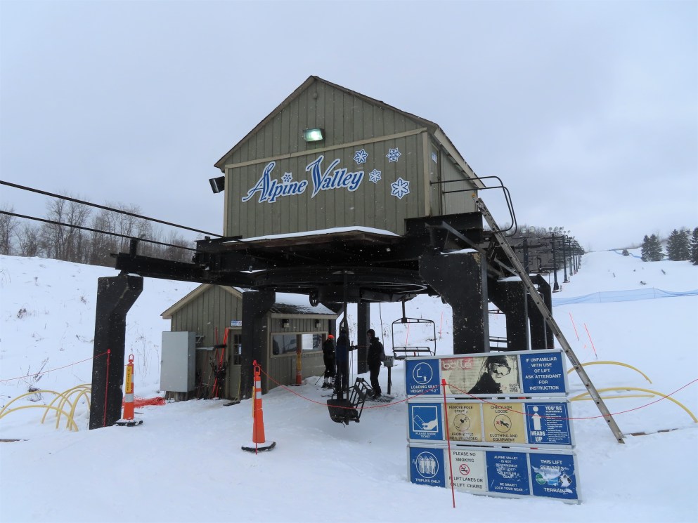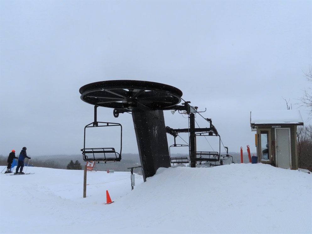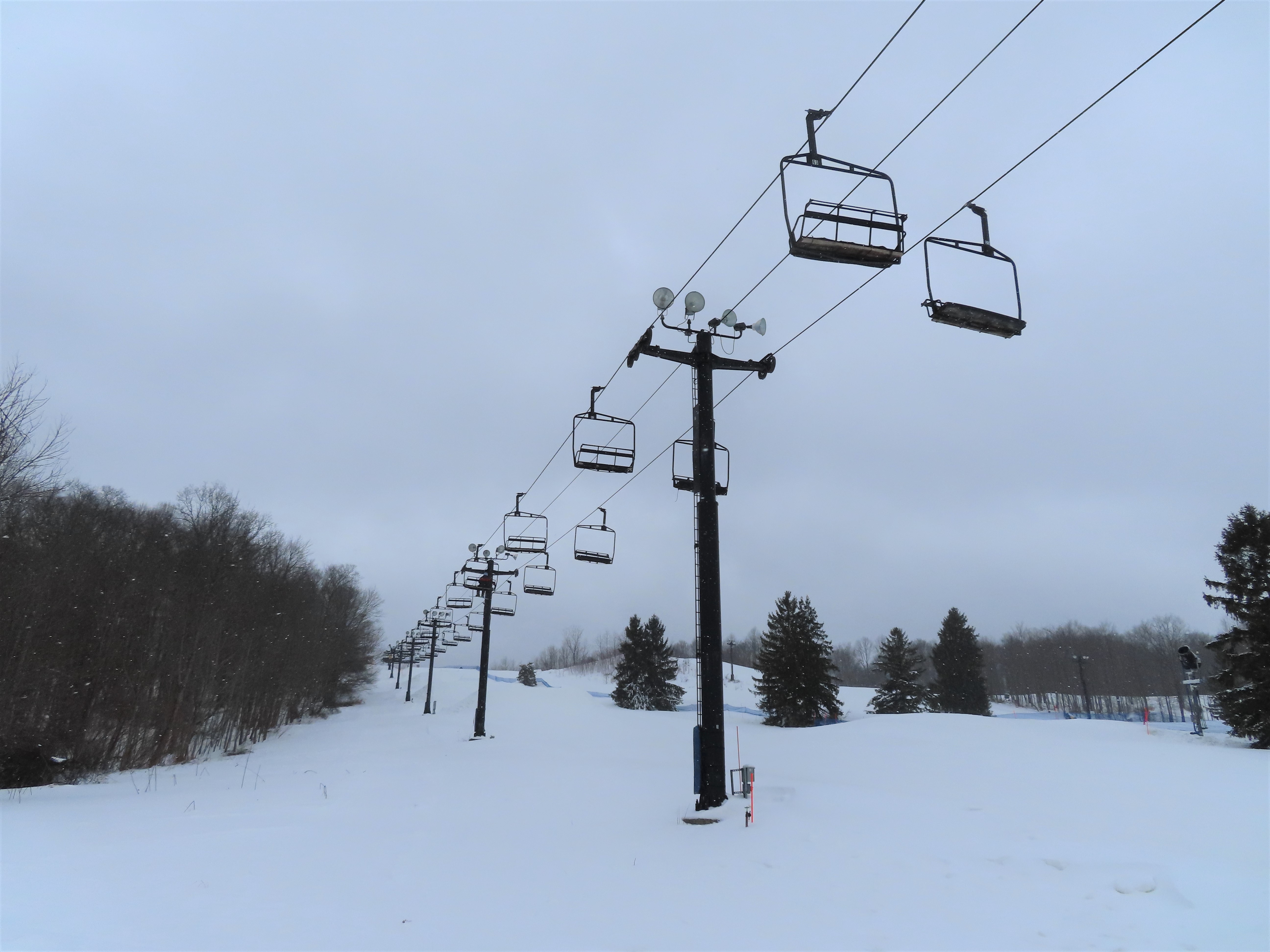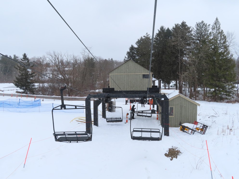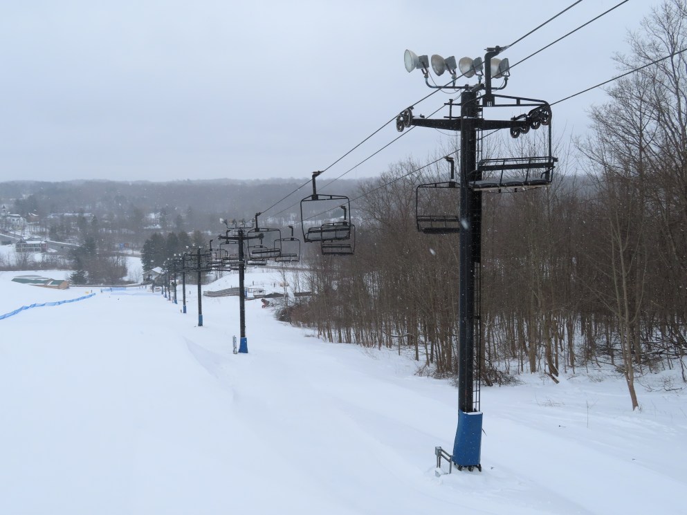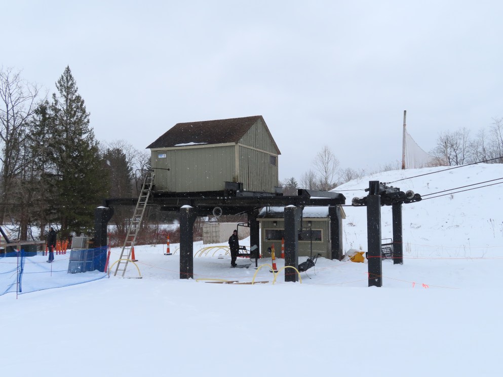 I only know of 3 other Hall quads of this style (that look like triples): Buck Hill, MN, Whitecap, WI, and Paoli Peaks, IN. It looks like all of them were built in 1978. I have seen other hall quads that are wider and actually look like quads. I wonder why Hall chose this design in 1978.