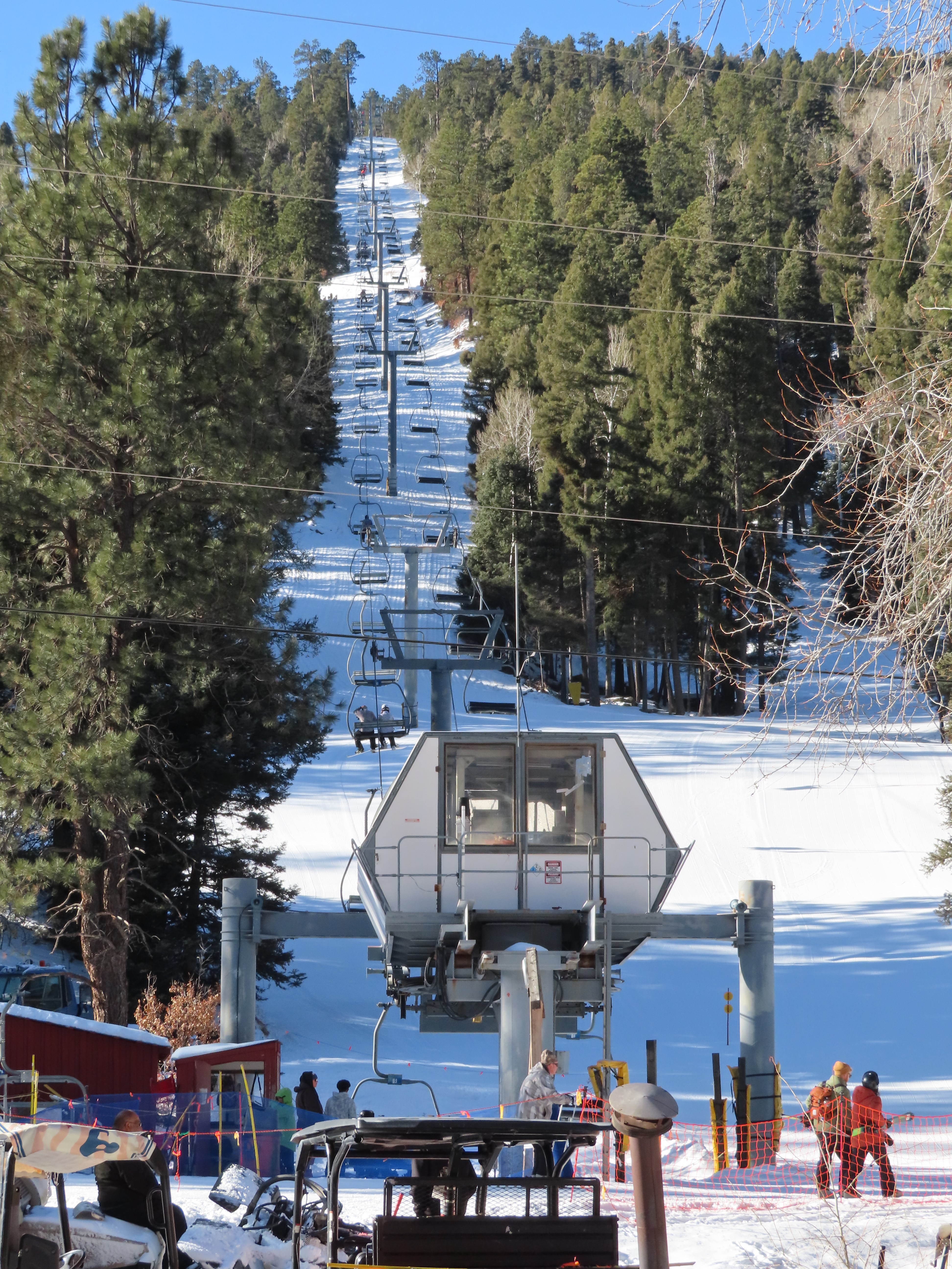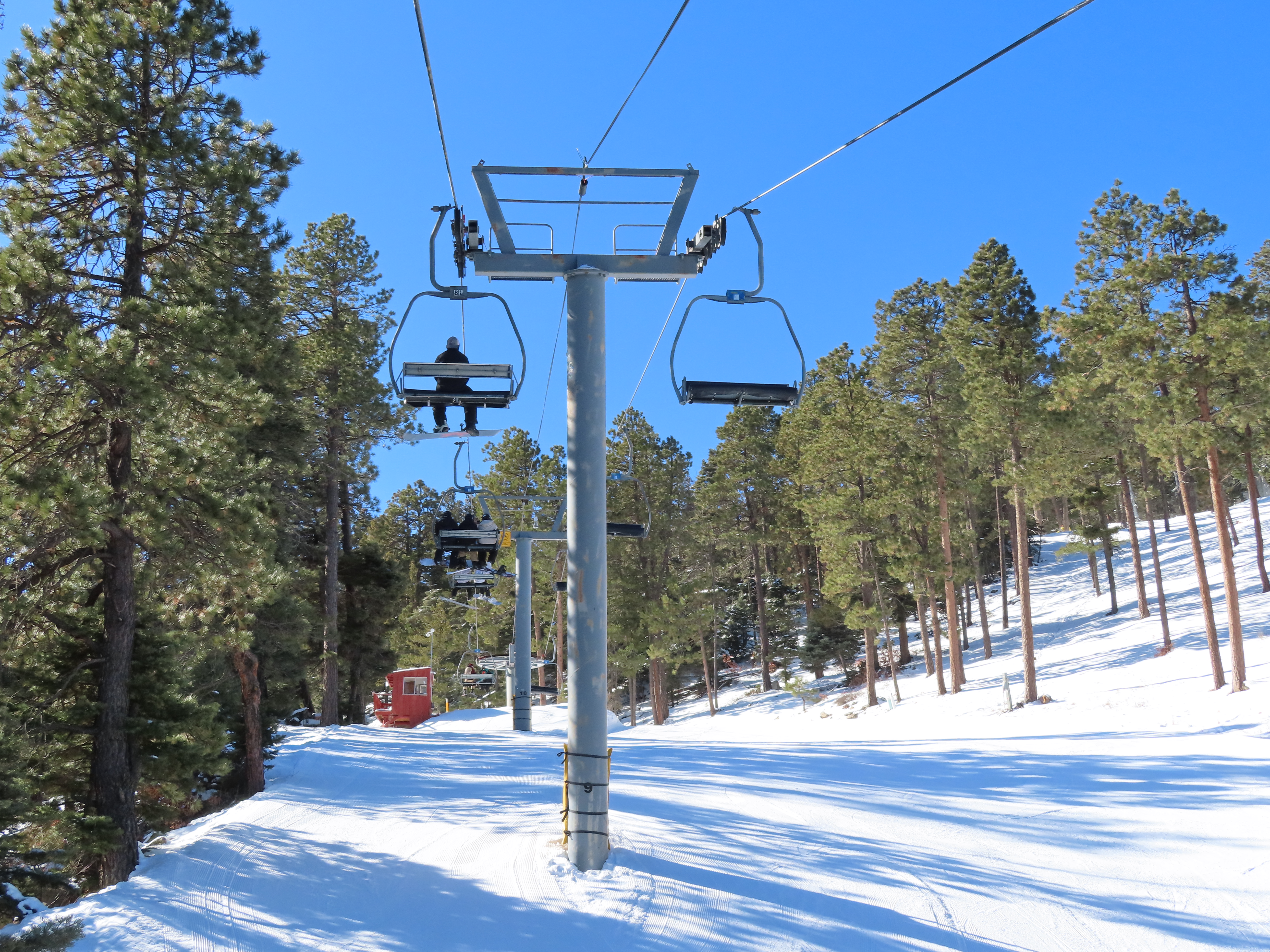 This Poma Delta triple opened in 1983 to complement a Poma platter along a similar alignment.Lift overview.View up the lift line.Portal tower at the bottom station.Middle section of the lift line.Unload ramp up top.Another view down the line.Upper section of the lift.Lift overview.Nearing the summit in winter.