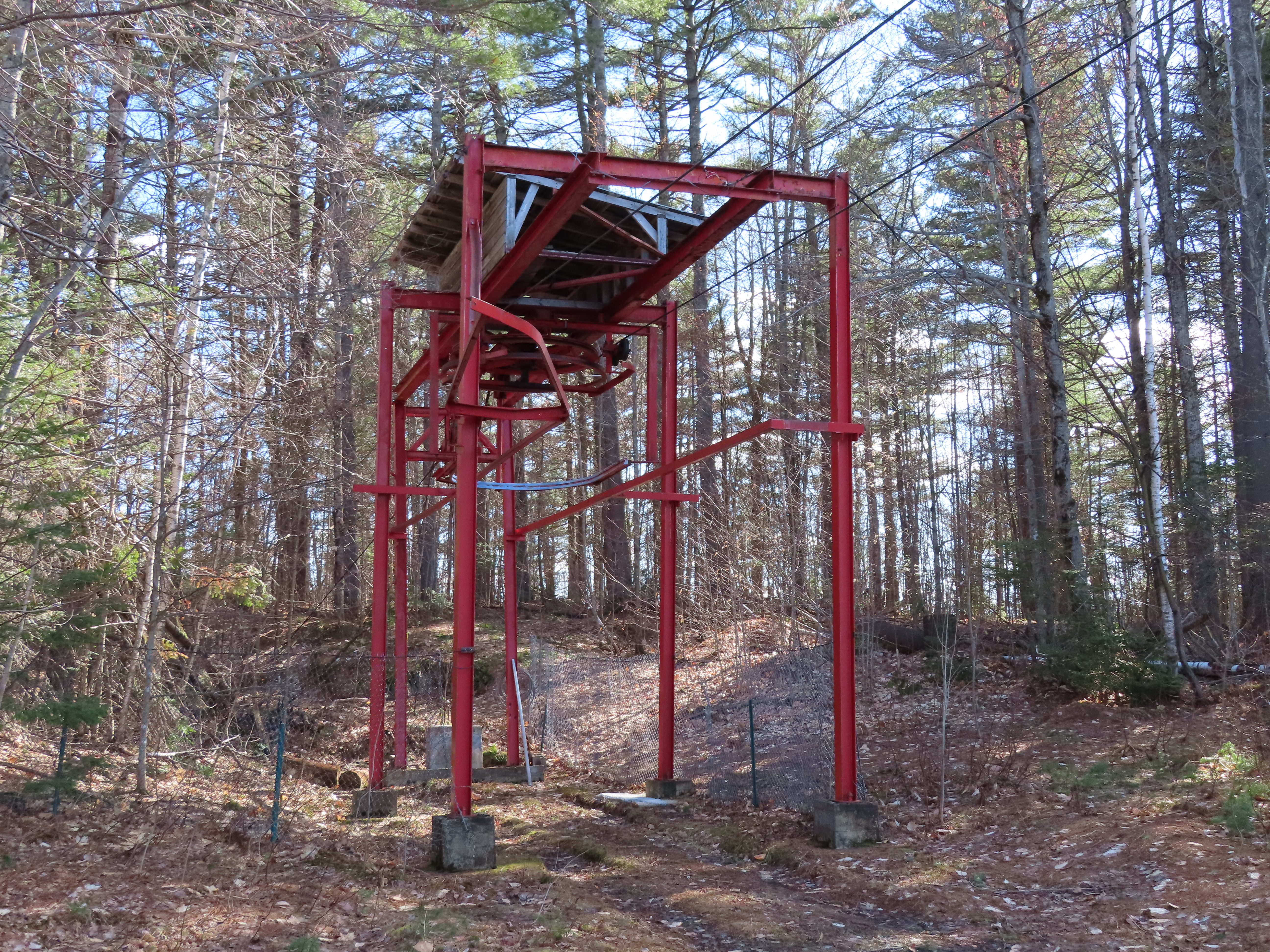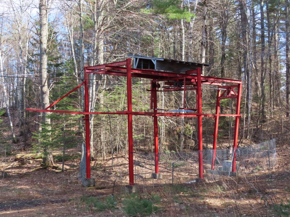 This is a Poma brand T-bar which was relocated form the now closed Bald Mountain Ski Area in Rangeley. If you look at the portal tower, it looks like it was modified from a regular half tower.