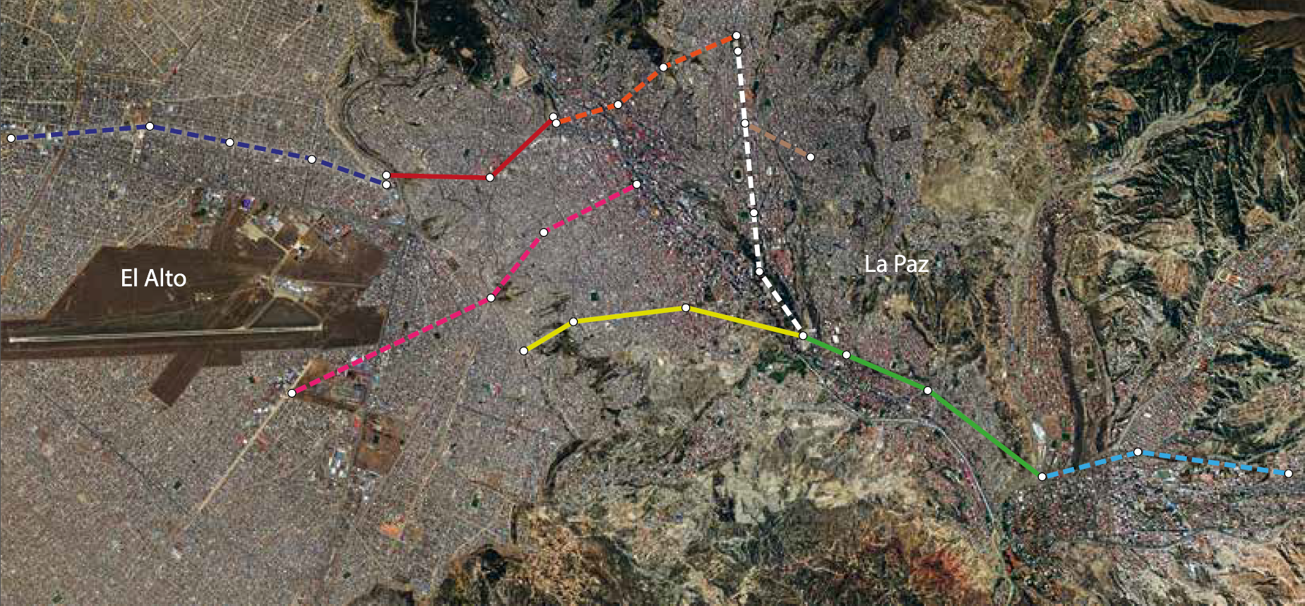 La Paz already has three Doppelmayr gondolas that opened last year. They have already carried more than 16 million people. Each line operates 17 hours per day and a ride costs less than fifty cents US. There are 11 Uni-G terminals where passengers load and unload. The only major incident happened when a eucalyptus tree fell on the yellow line back in February, causing a deropement and rope evacuation.
