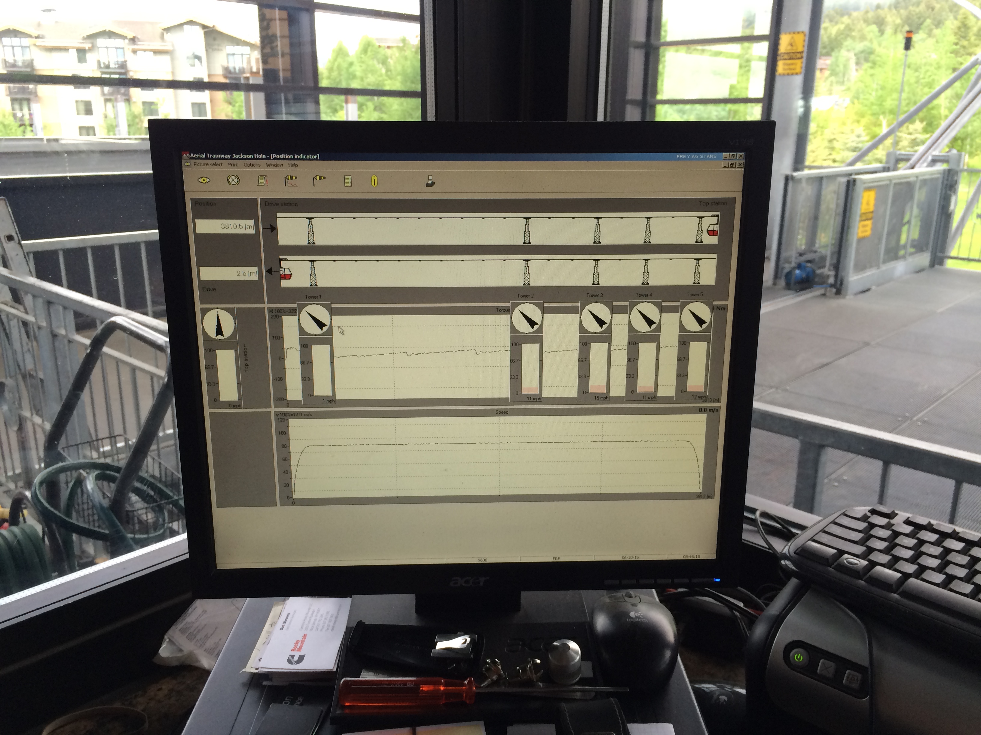 The tramway can be operated directly from a console in tram control or remotely by operators in each car. Tram operators have touch screen controls with the status of the other car and important information. Each tower has an anemometer which transmits wind speed and direction to the cars and tram control. During normal operation, acceleration and deceleration are handled automatically. Tram operators start each trip and always have the authority to change speed for wind or wildlife.