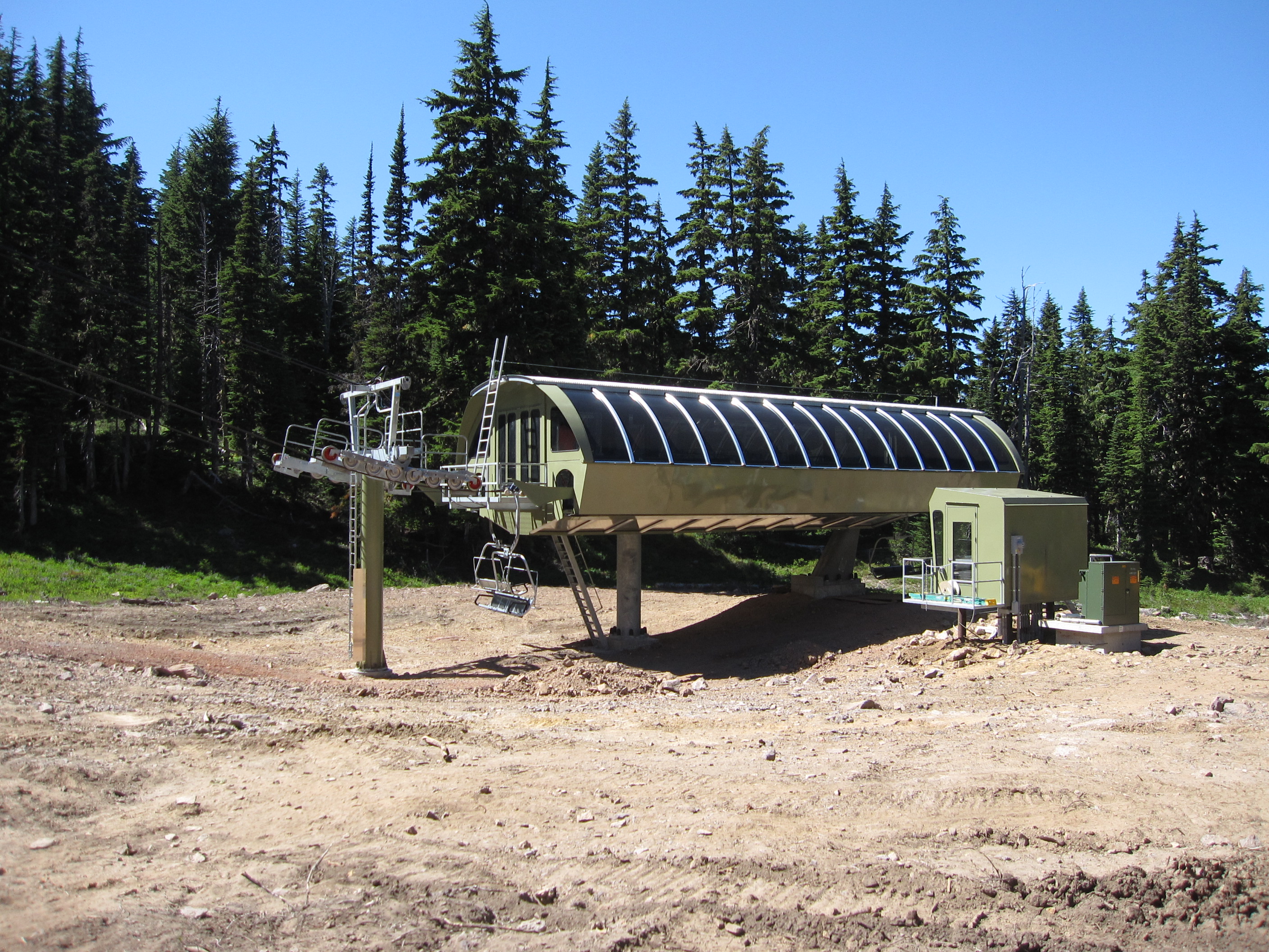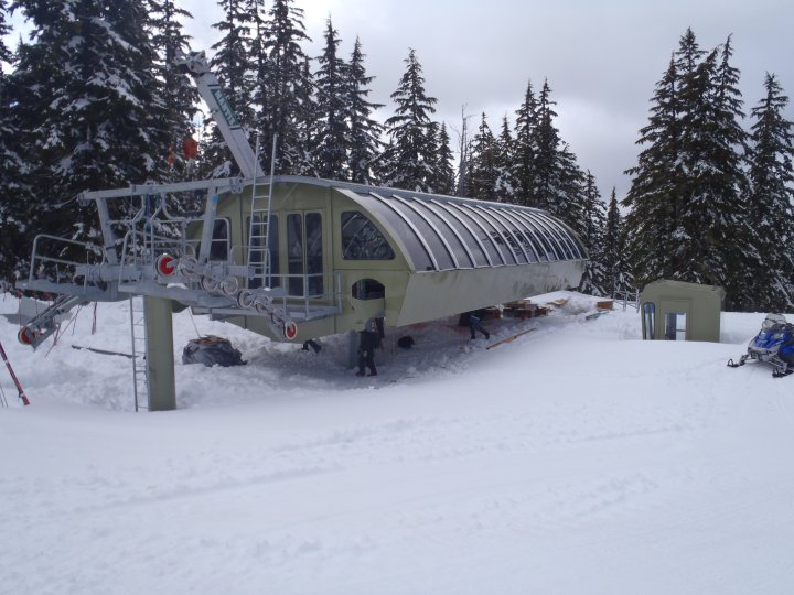 White Pass completed terminal/tower footings and put up tubes in 2009 but worked with Doppelmayr to delay installation of the rest of the lift until spring 2010. During the 2009-10 winter, backcountry skiers got to explore the new trails and ski between brand new lift towers with nothing on them.