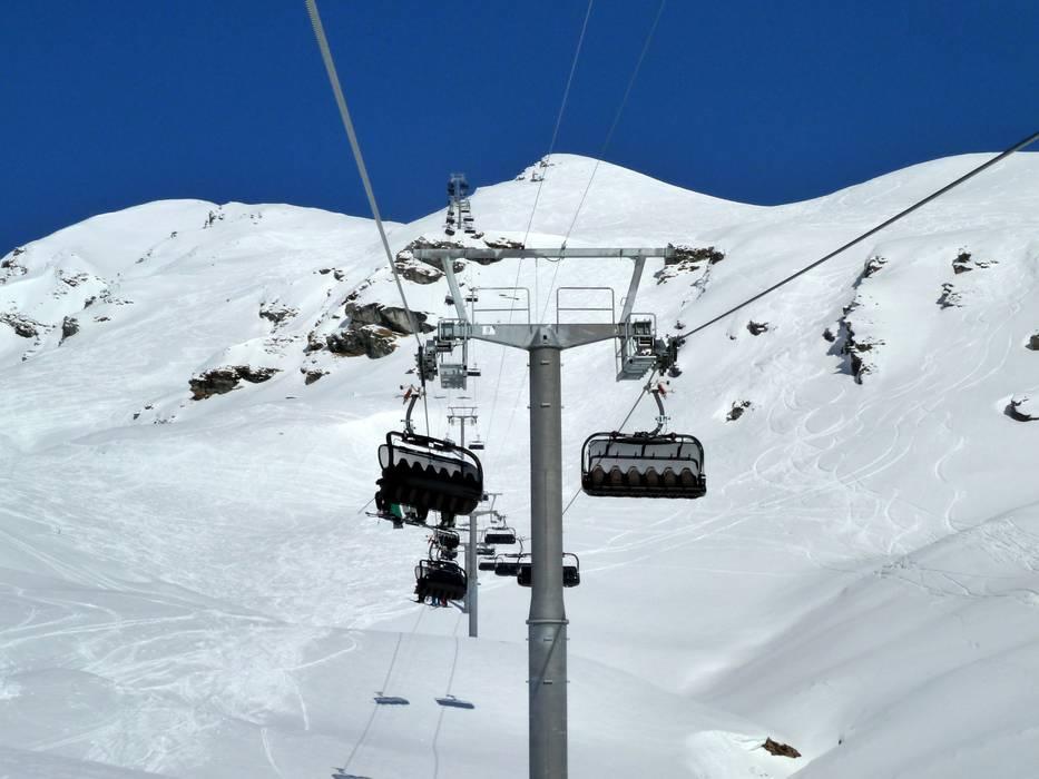 The gondola rises 1,351 feet and has a slope length is 4,432 feet. The bottom drive terminal is a Poma Alpha model with a 400 HP electric motor. Because this is also the tension terminal, the entire loading platform moves hydraulically with the motor room and bullwheel.
