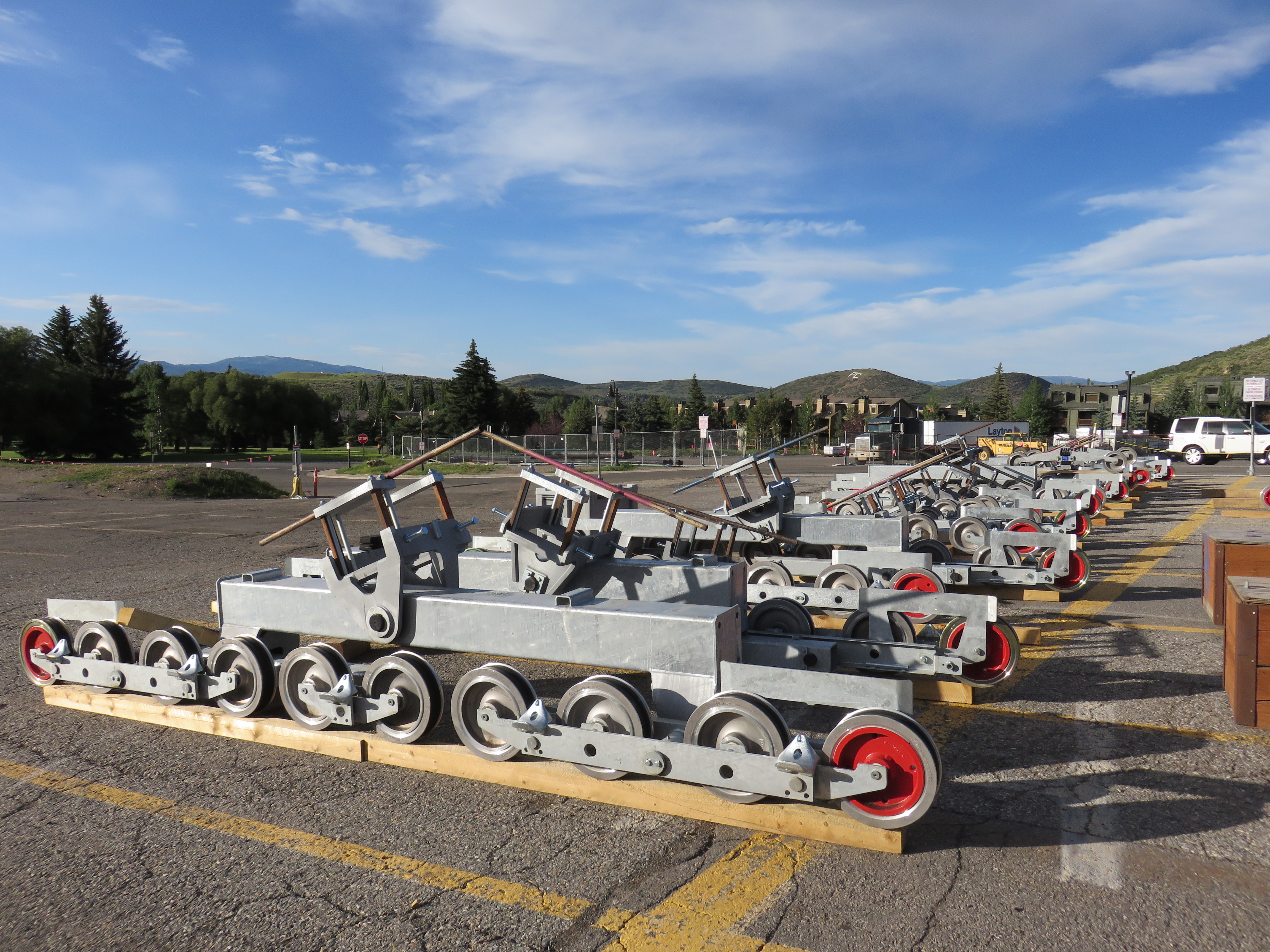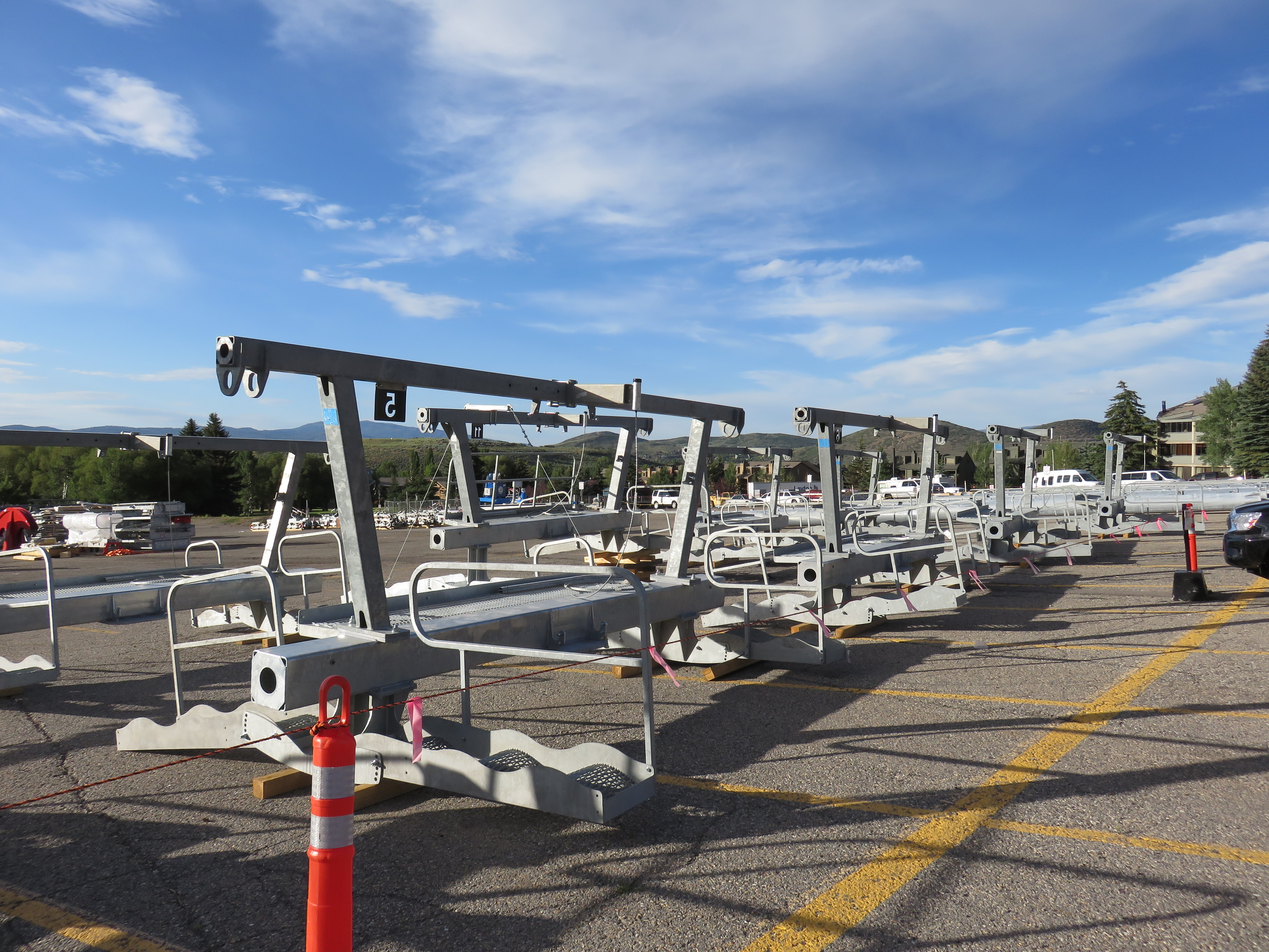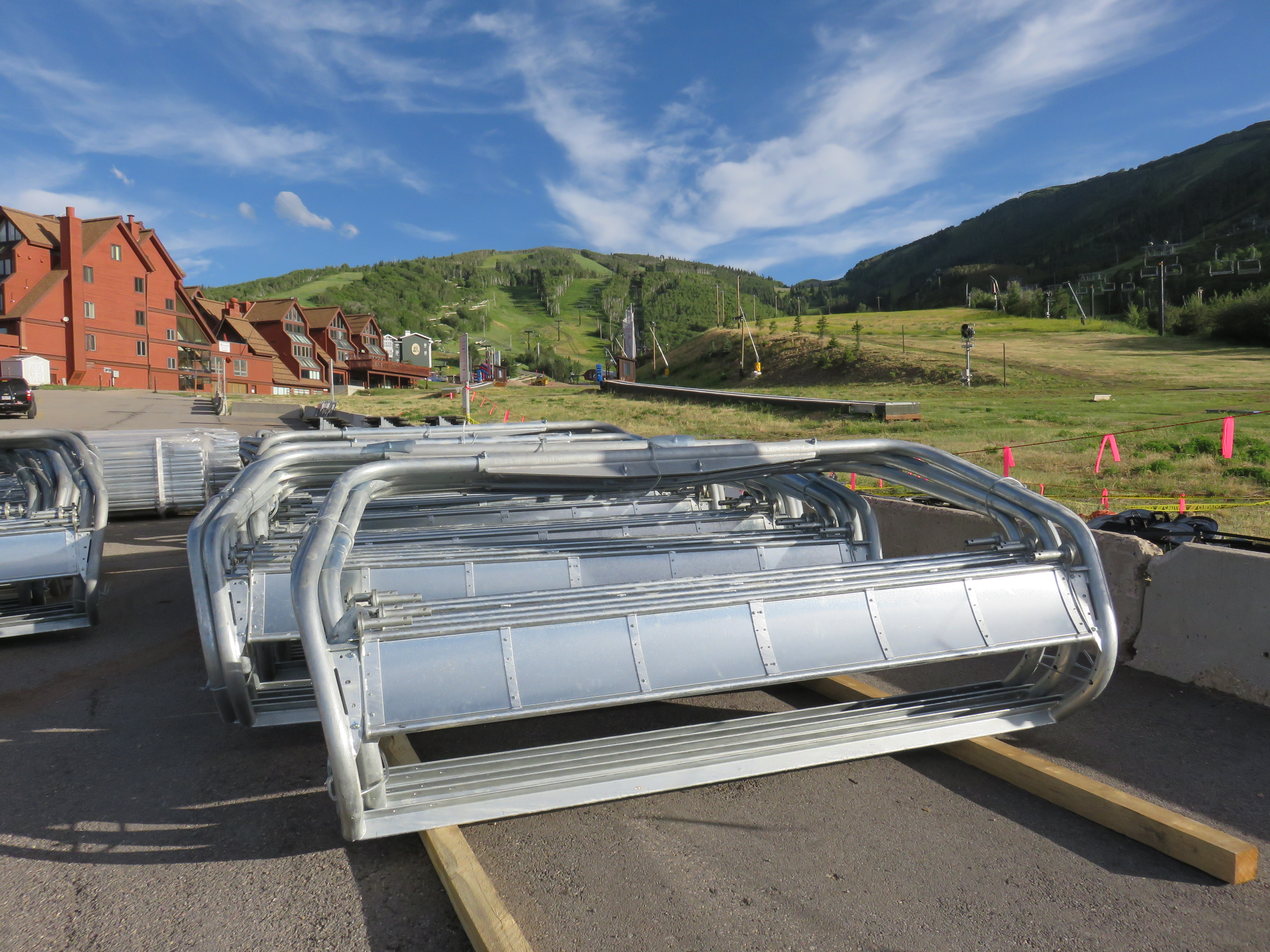 King Con Six will re-use the CTEC tower tubes from the old high speed quad. New tower heads are being assembled in the base area parking lot. The bottom terminal will have a loading carpet as is standard with all new detachable lifts at Vail Resorts these days. The lift is a top-drive, bottom-tension configuration. Doppelmayr EJ six passenger chairs are already on-site. All three of Park City’s new lifts will have Redaelli haul ropes which have also been delivered.