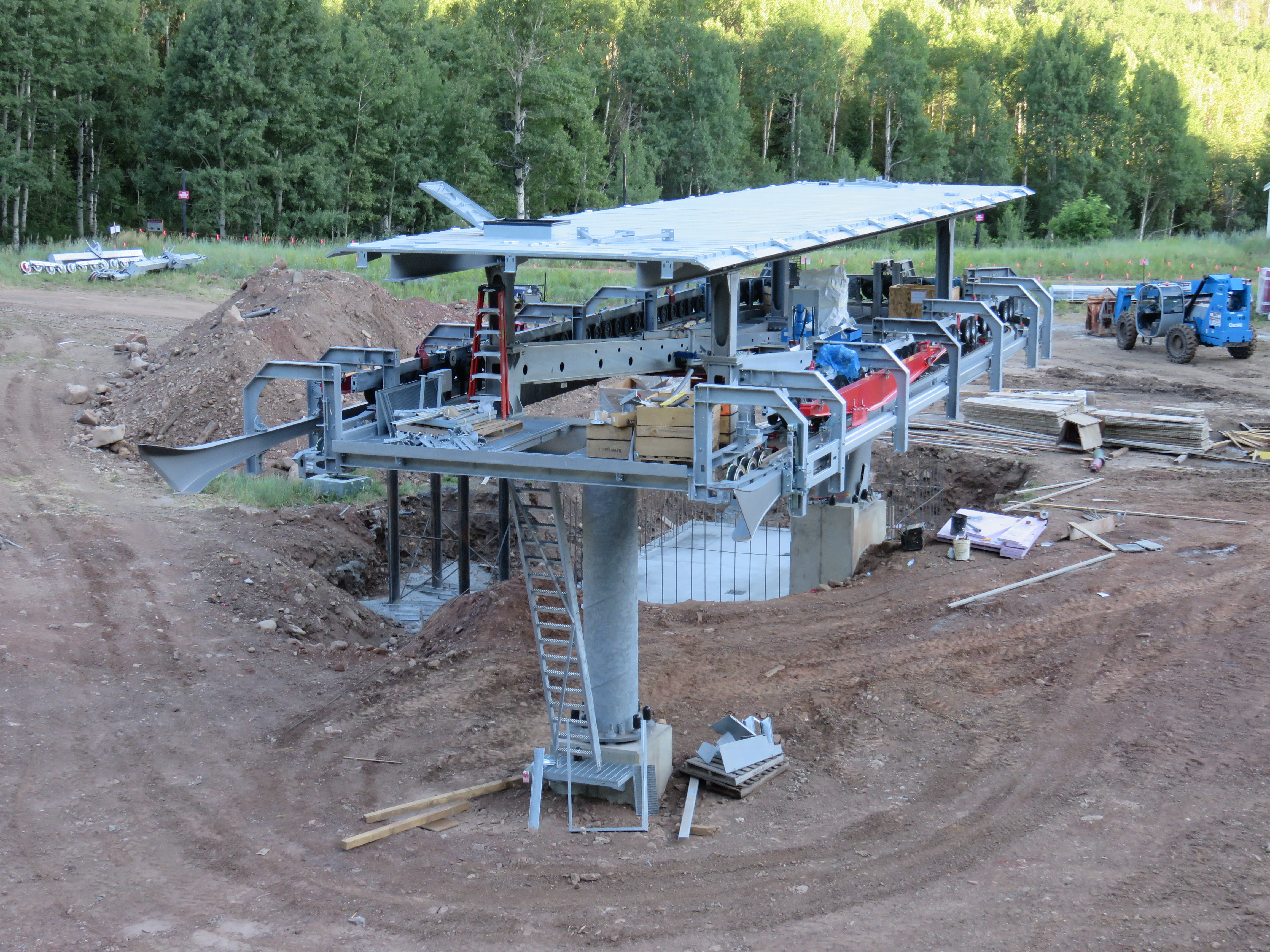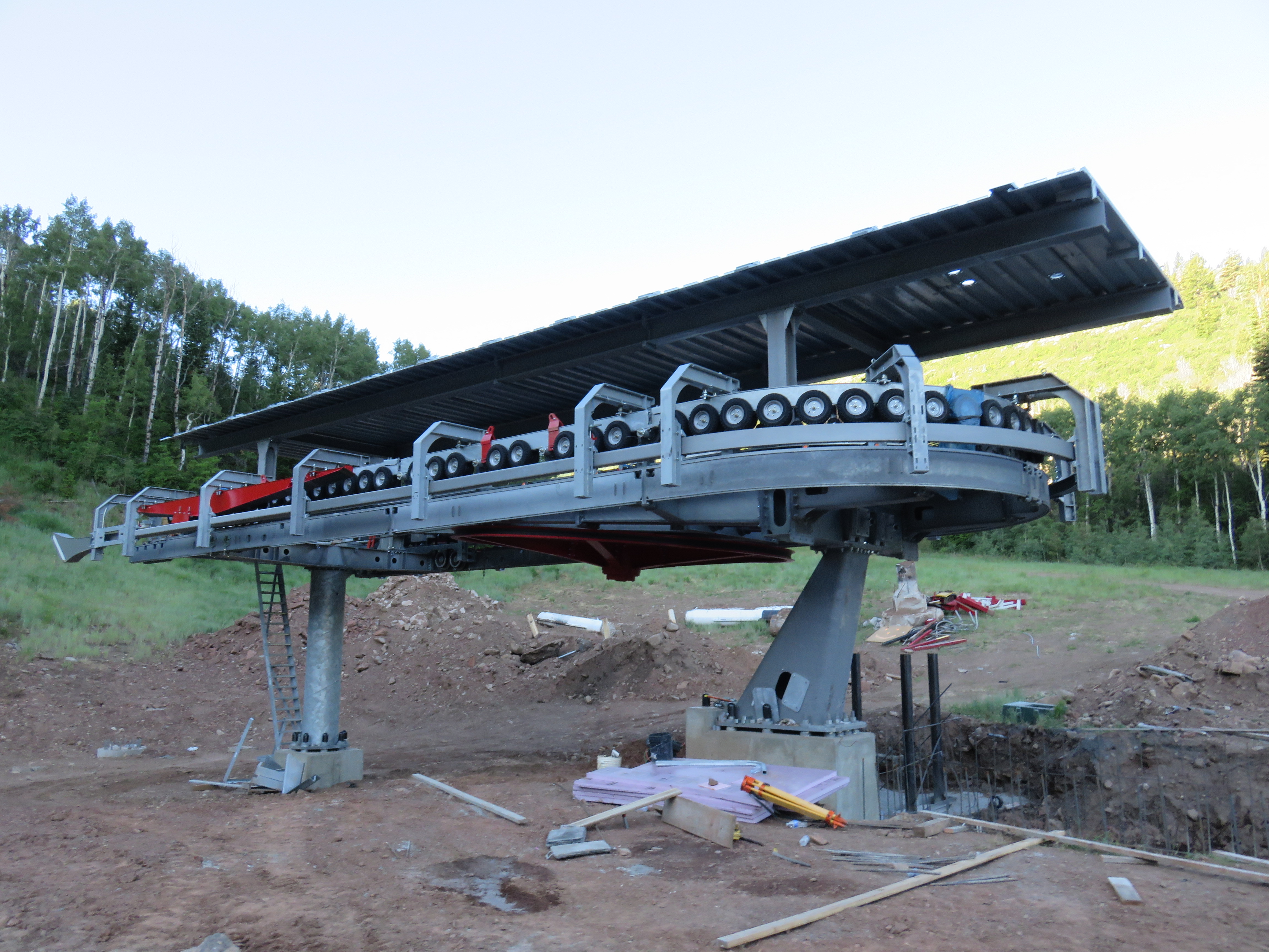 Park City removed the Motherlode triple early this spring to make way for a new high speed quad in the same alignment. Instead of a brand new lift, Vail Resorts opted to relocate the King Con lift, originally built in 1993. Both CTEC terminals have already been moved and all tower footings poured. Motherlode will get new tower tubes but just about everything else is coming from King Con. The lift may need some new chairs due to the increased length of Motherlode. The new tower tubes and haul rope are on site.