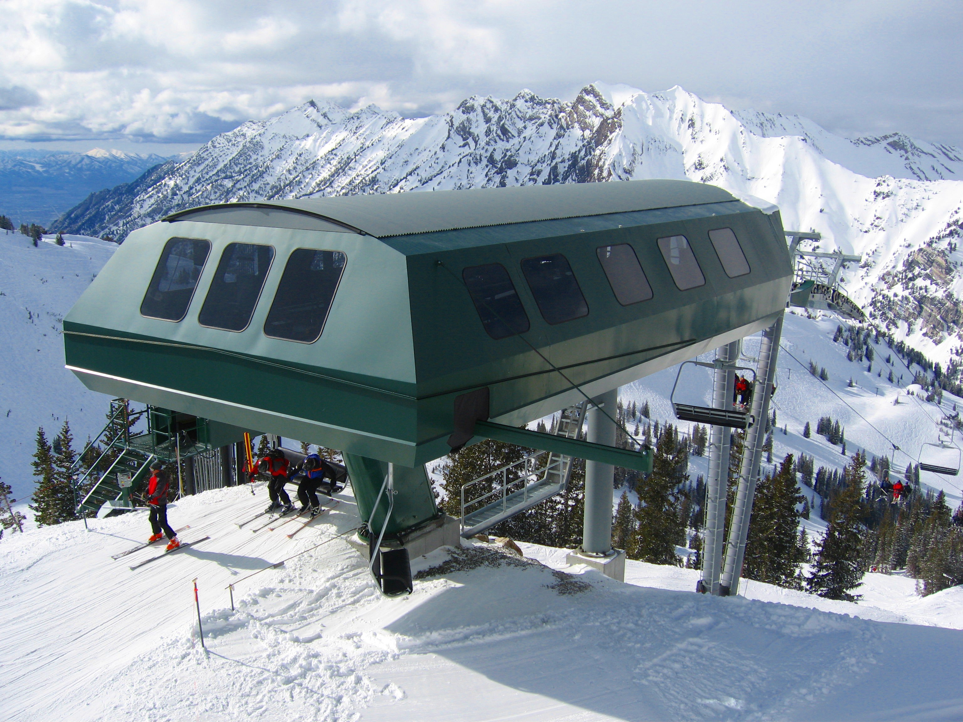 When it opened at Alta Ski Area in 2004, the new Collins lift was the 66-year old resort’s first base-to-summit lift. It replaced two older Yan fixed-grip lifts and dramatically improved the skiing experience at Alta. Collins is actually two detachable quad lifts joined in the middle at a 29-degree angle. Its four Stealth III terminals were the last off the line following Doppelmayr and CTEC’s merger two years earlier.