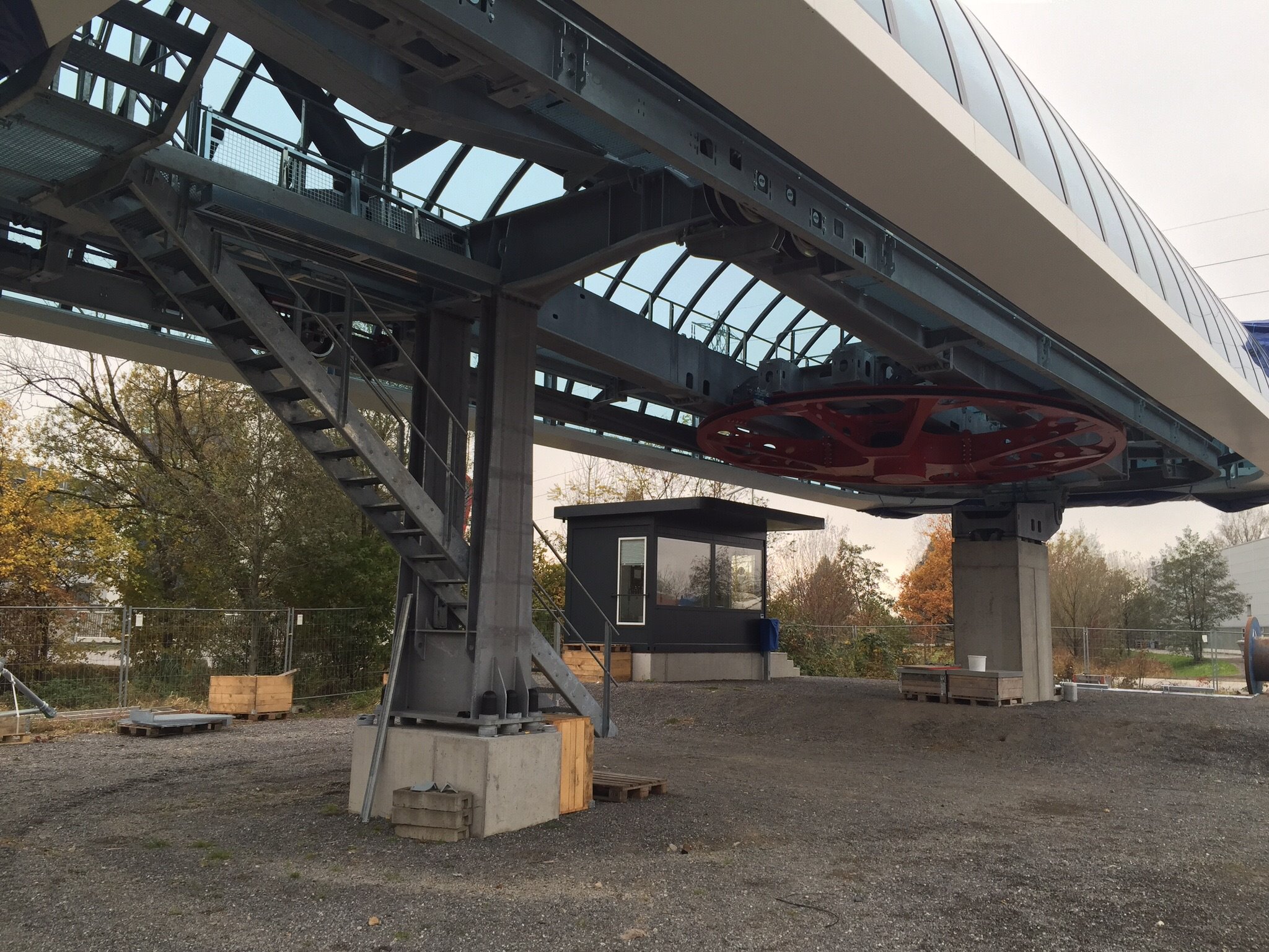 Test lift at Doppelmayr in Wolfurt has carriers on it even though the terminals are not finished.