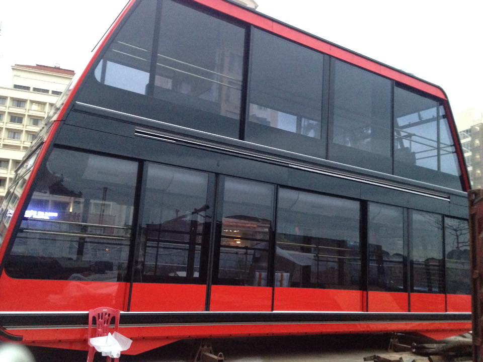 We now know what the world’s largest tramway cabins look like. One bright yellow and the other red, CWA’s largest Kronos cabins built to date will hold 230 passengers plus one operator each with six sets of doors on two levels. They will soon be hung on the Ha Long Queen cable car, whose track cables already stretch 5,000 feet across Vietnam’s Ha Long Bay at heights up to 617 feet. The Queen will supplant the 200-passenger Vanoise Express as the world’s highest capacity aerial tram when it opens early this summer.