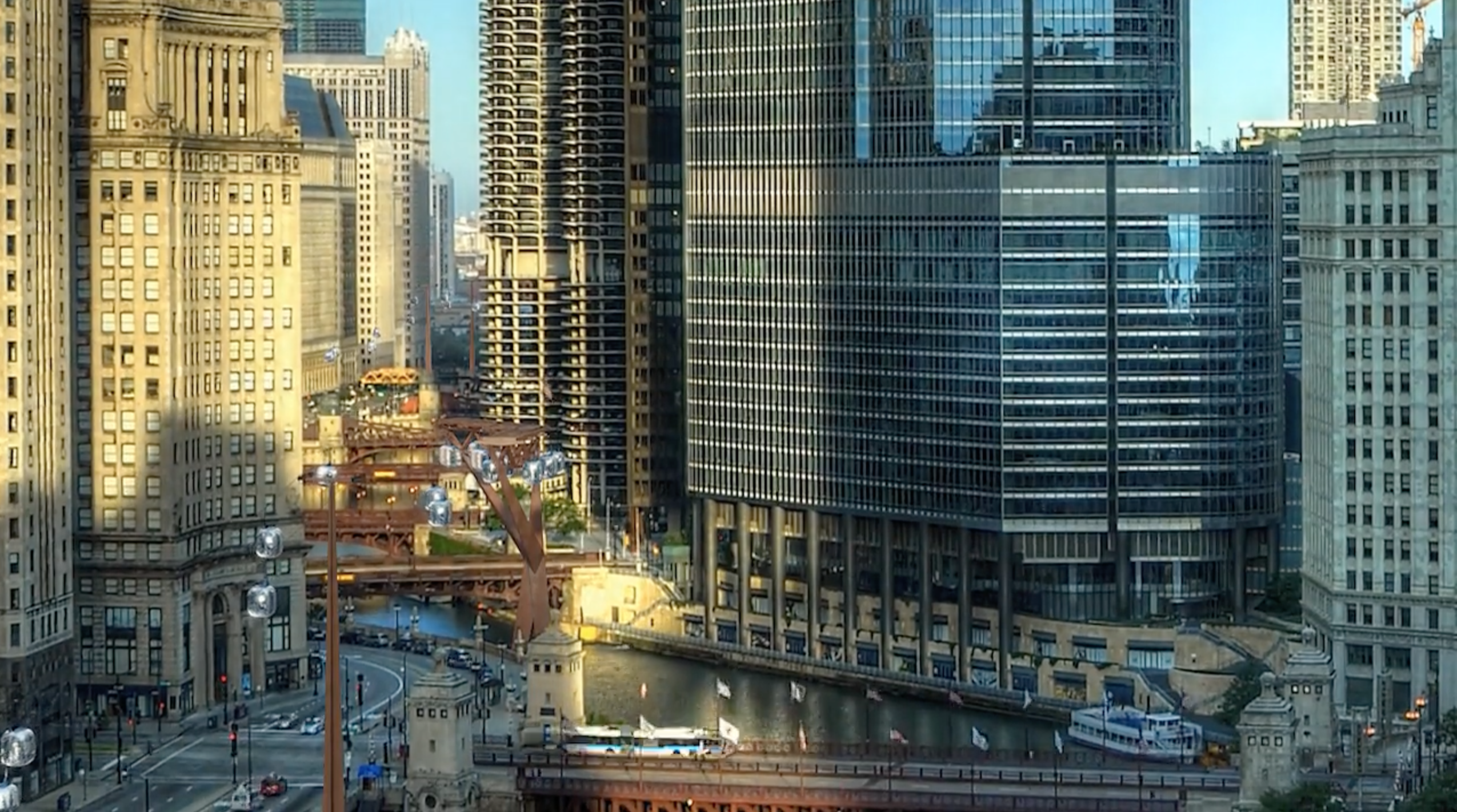 Chicago doesn’t have an iconic tourist attraction. There’s no giant Ferris wheel, no observation tower, no famous bridge. Entrepreneurs Lou Raizin and Laurence Geller want to change that with a gondola. Over the past four years, the men studied more than fifty signature attractions in cities around the globe and came up with the Skyline as an iconic attraction for the Windy City. As presented to the City Club of Chicago on May 3rd, the plan includes a gondola from Navy Pier with multiple stops along the Chicago Riverfront. David Marks, the architect behind the London Eye, collaborated on the innovative design with New York-based Davis Brody Bond. Marks also designed the British Airways i360 observation tower with a passenger capsule built by Poma and Sigma. The Skyline project would likely bring together the same team from the Eye and i360 with engineering firm Jacobs Inc. and ropeway technology from Leitner-Poma.