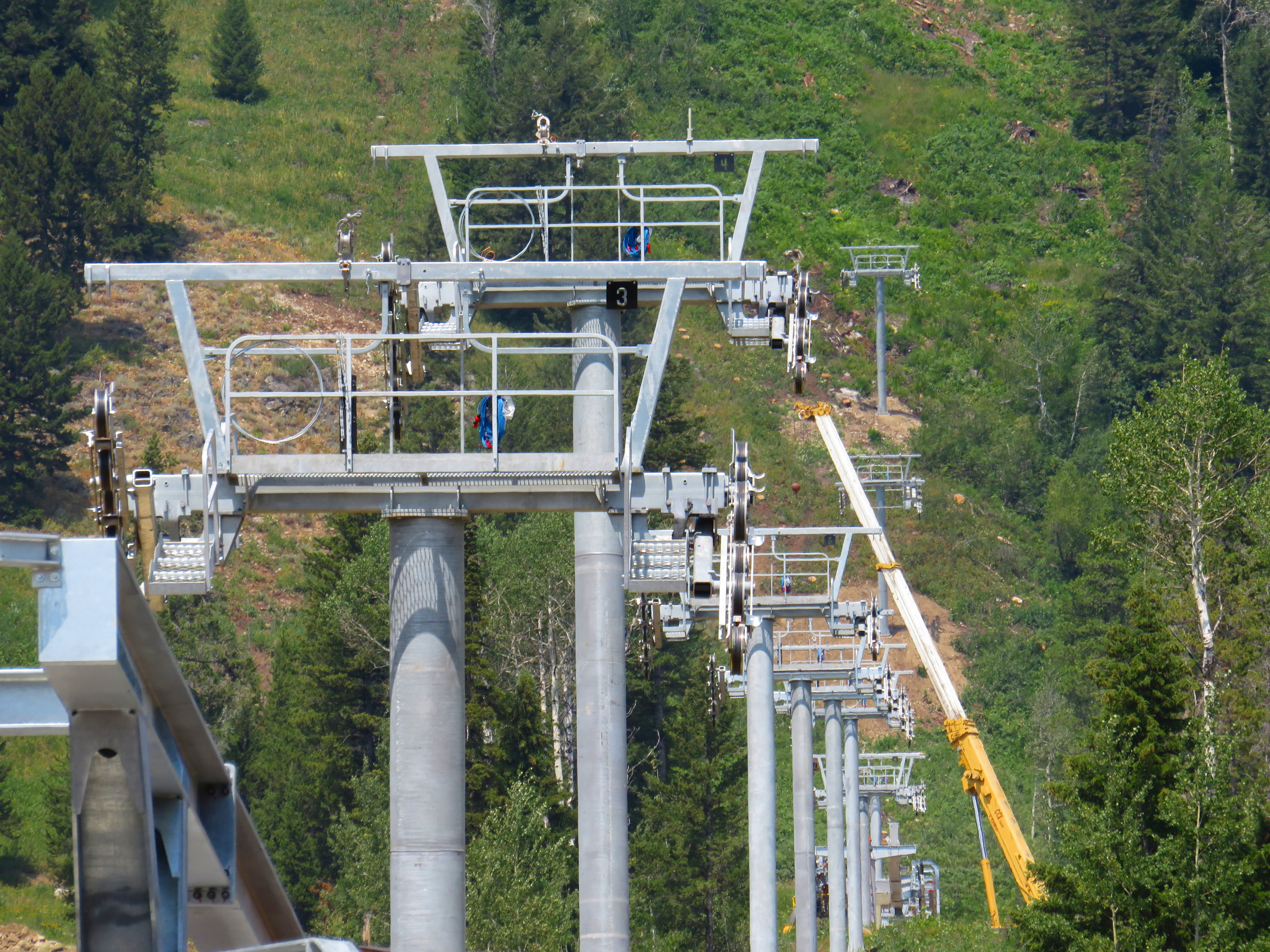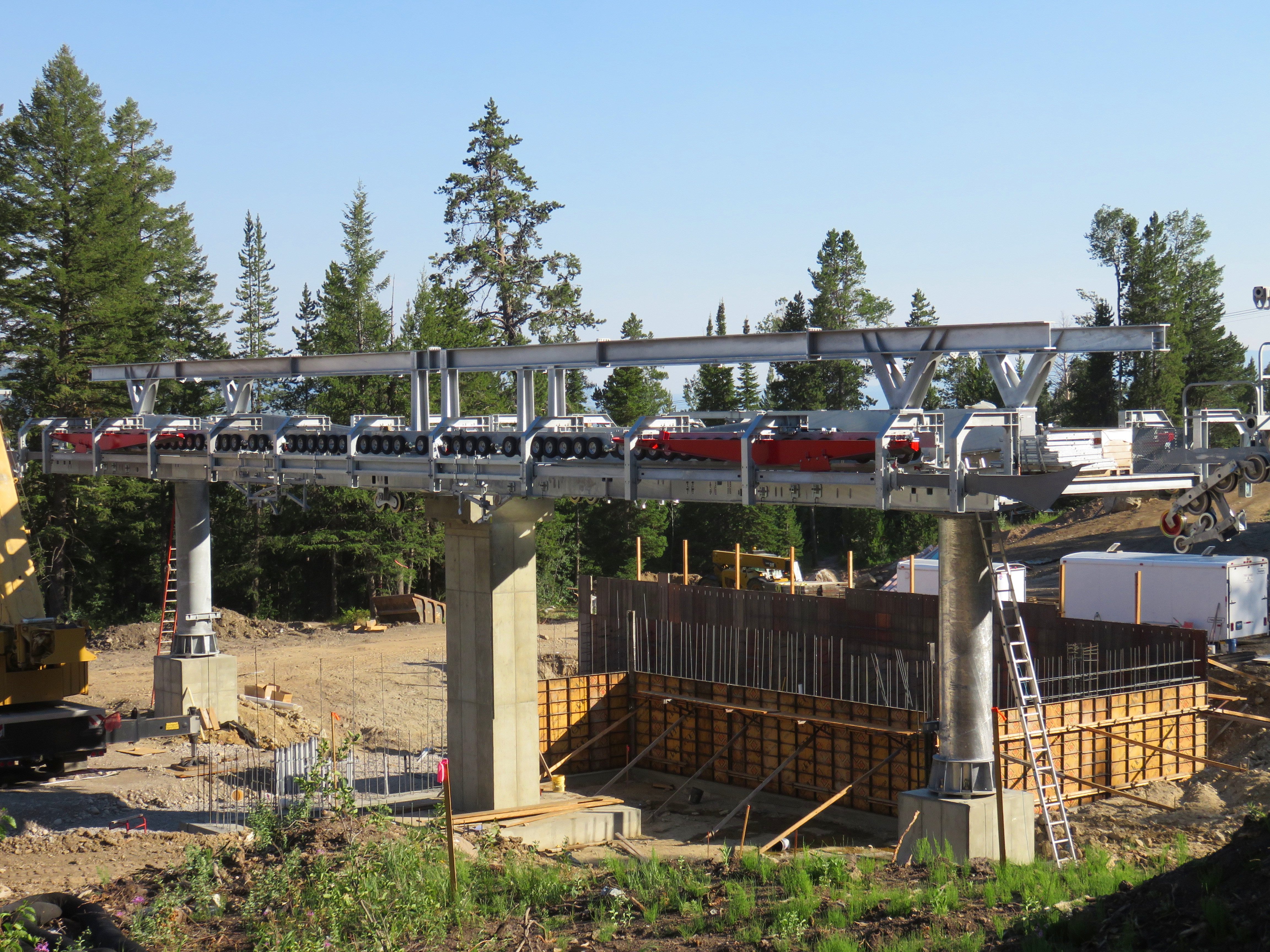 Doppelmayr crews put together the erector set at Solitude.The mid-station is big in both height and length!