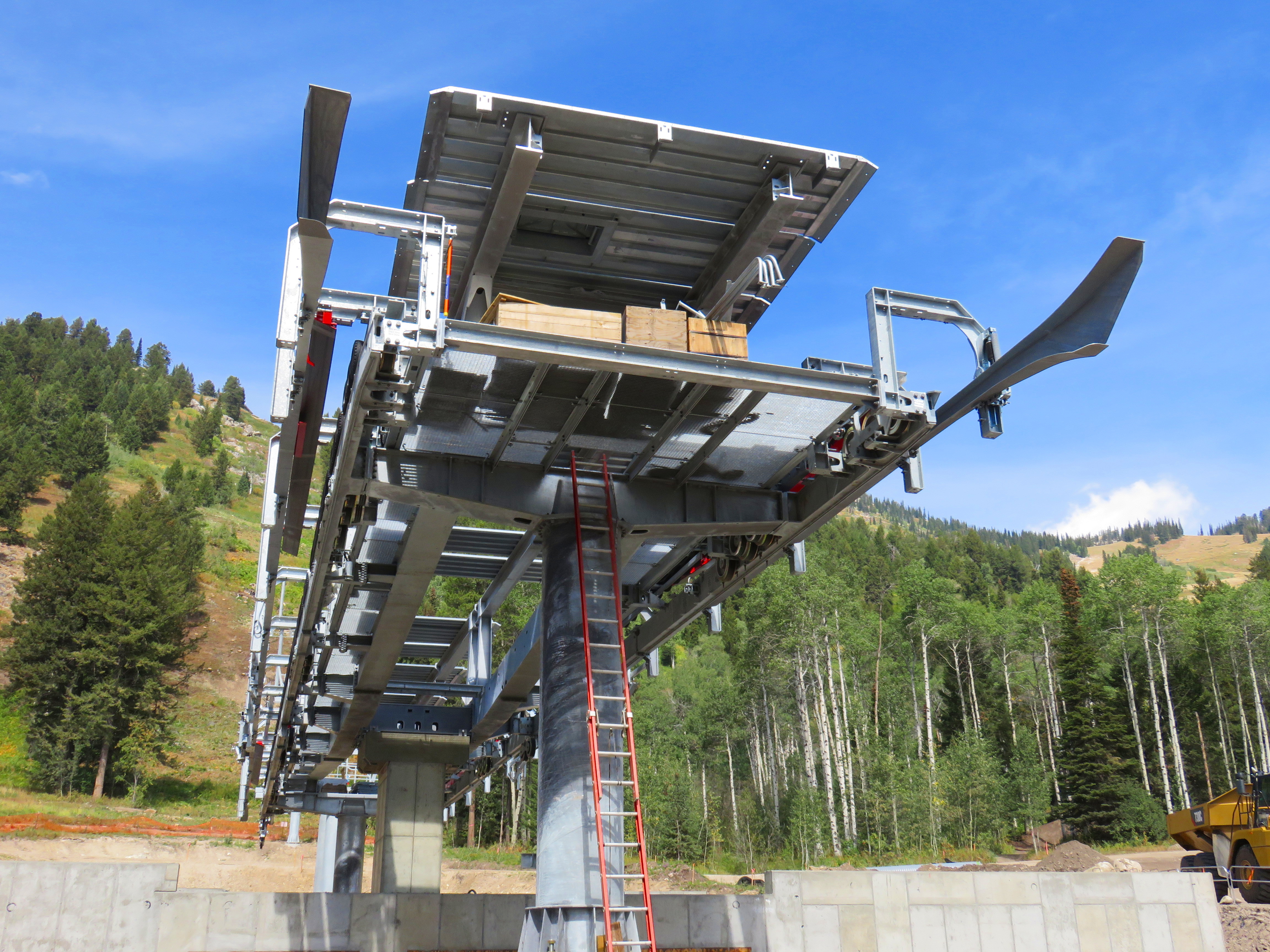 The drive platform was hauled up the hill in the back of a dump truck and includes an electric motor along with CAT auxiliary and evacuation drives.  Operator houses for the mid-station and summit arrived from Salt Lake last week along with the haul rope from France.  48 cabins from CWA will follow next week to meet their hangers and grips which are already here. Doppelmayr’s supply chain is fascinating – Sweetwater includes key components built in the USA, Canada, Austria, France, Germany and Switzerland.