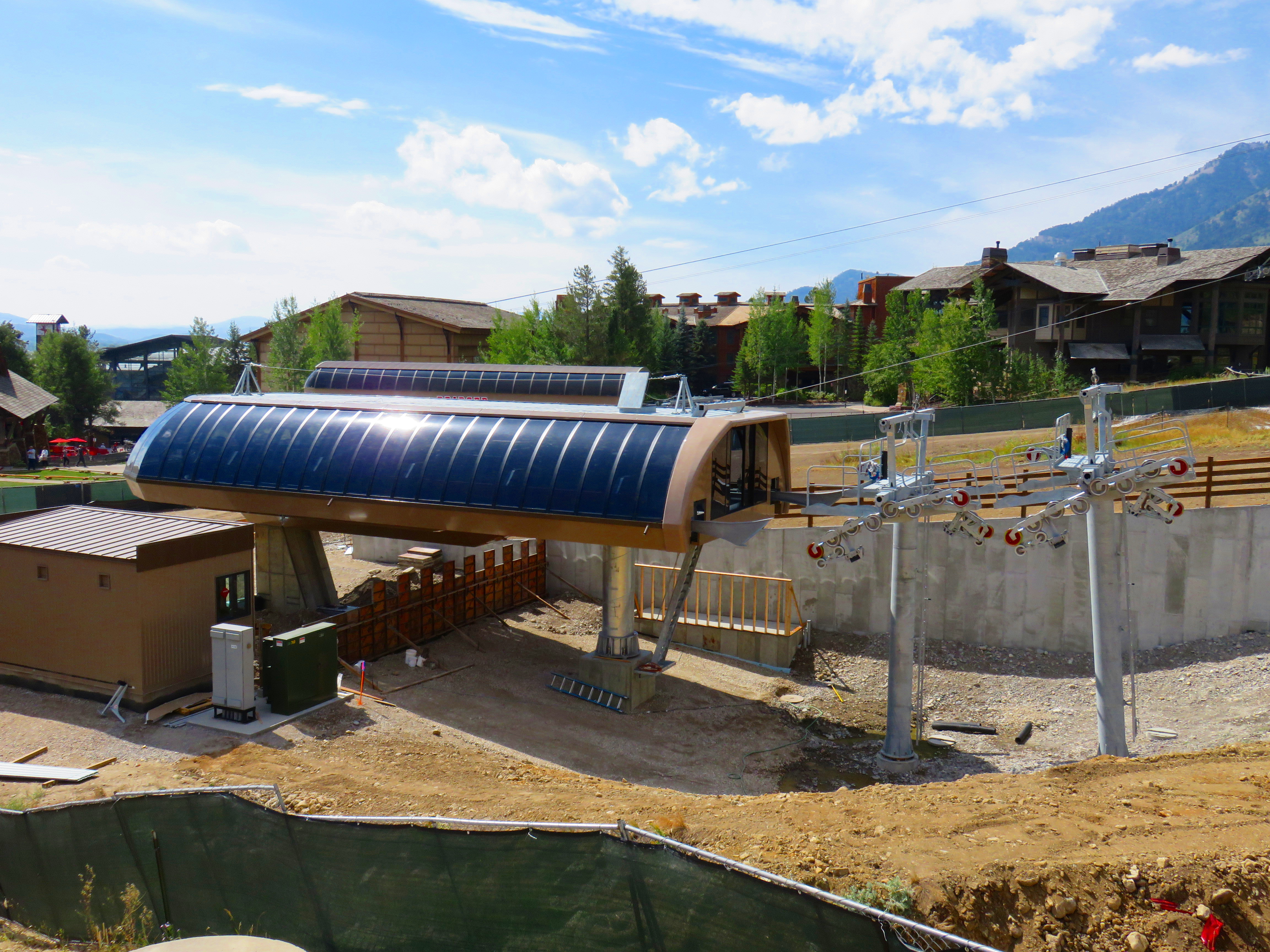 The rope will be pulled soon with a splice planned for mid-September.  As workers piece together the final enclosure at the mid-station, Doppelmayr’s electricians and alignment folks will get to work.  Keep in mind while all of this goes on, JHMR crews and local contractors are working around Doppelmayr on concrete hardscapes, boiler rooms, new snowmaking pipes, RFID gates and more.  “There are a lot of people trying to play in the same sandbox but it’s working well,” JHMR General Manager Tim Mason told the local paper.  Solitude Station will also see a new yurt and magic carpet built before Thanksgiving.  Everything is on schedule thanks to the hard work of many, many people.