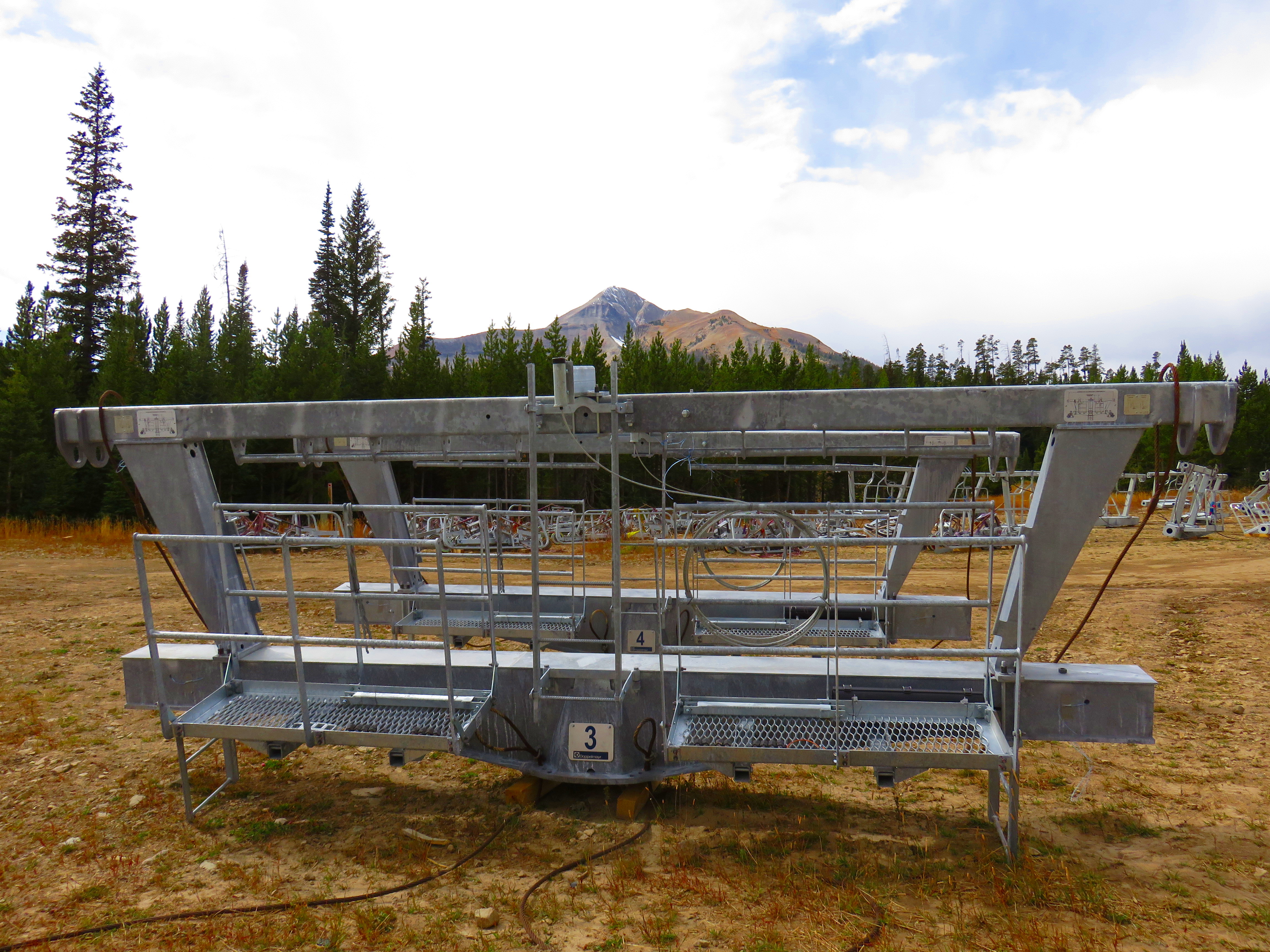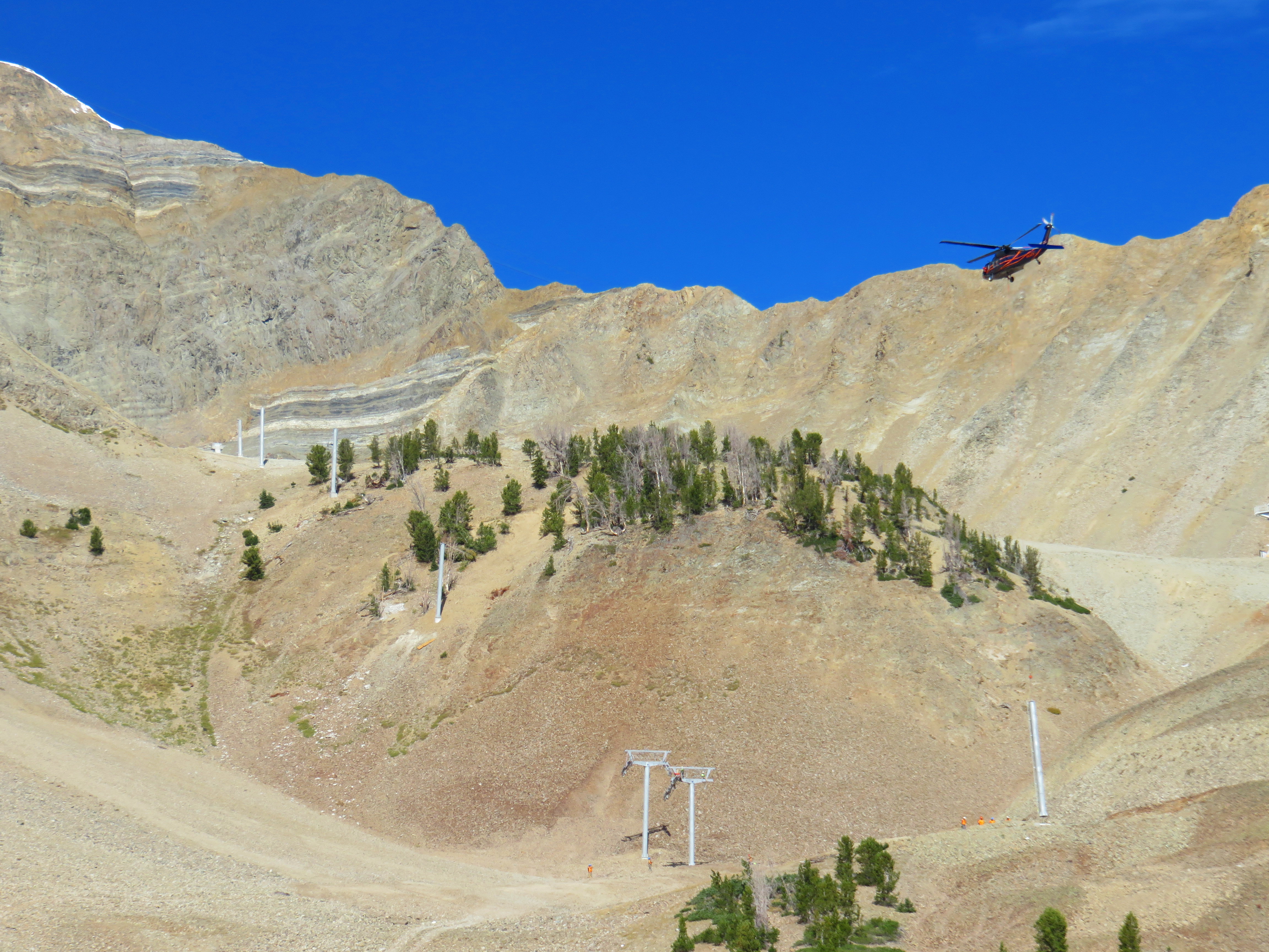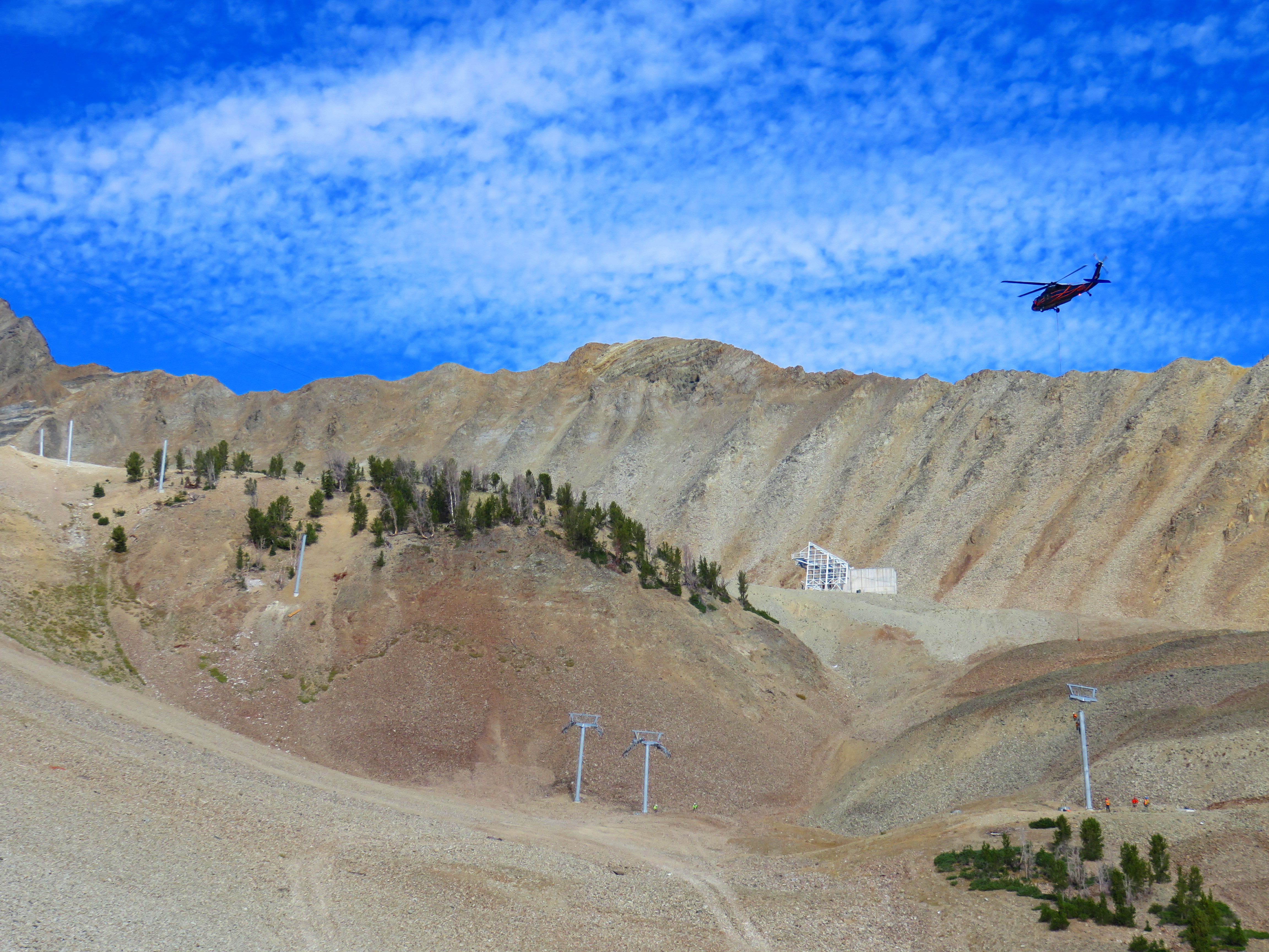 33 chairs arrived from Austria last week and feature Big Sky blue bubbles, heated seats, headrests and more.Brian Jorgenson from Timberline Helicopters began flying 12 lift towers on Sunday and will haul the rest later this week. The same Black Hawk will also set 17 towers for the new Challenger lift, a Doppelmayr triple chair. Wind stopped Brian from flying around lunchtime yesterday (and today it’s snowing) but both projects are on schedule thanks to the hard work of Big Sky’s mountain operations team, the Doppelmayr USA crew and their contractors.