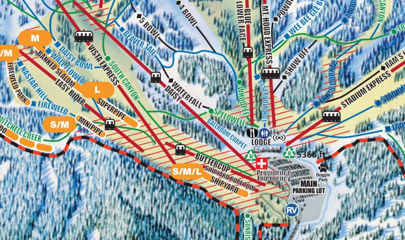 - Lift V: A bottom drive fixed-grip lift starting near the Backside Express/Promised Land Express rising into the new Sawtooth Ridge expansion area.