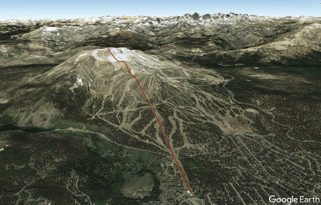 long UNI-G terminals, large-diameter sheaves, and fully symmetrical line uphill and downhill allowing for full capacity downloading — extending it upwards to the summit seems hardly feasible. Most notably, the prevailing winds will likely be prohibitive to its alignment. Section 2 of the Panorama Gondola is fairly well protected (especially considering it being over 200 feet above ground) and the SW wind tends to blow straight down the line which allows it to stay open (albeit at 3 m/s or less) when many other lifts across the mountain cannot. Sections 2 and 3 of the Eagle Gondola will be subject to violent crosswinds. Additionally, the alignment would have the gondola reach the actual summit of Mammoth Mountain, subjecting it to even more severe winds. The top station of the Panorama Gondola is tucked away on the side of the mountain some 30 feet below the summit. Weather considerations aside, it just doesn’t make too much sense from a skier’s point of view. The Eagle Lodge side is dominated by beginners. Whereas intermediate skiers and riders can take Road Runner from the top to Main Lodge, there is only advanced and expert terrain leading towards Eagle Lodge. And plus considering how fast Mammoth gets tracked out already, is doubling the capacity to the top really a good idea?