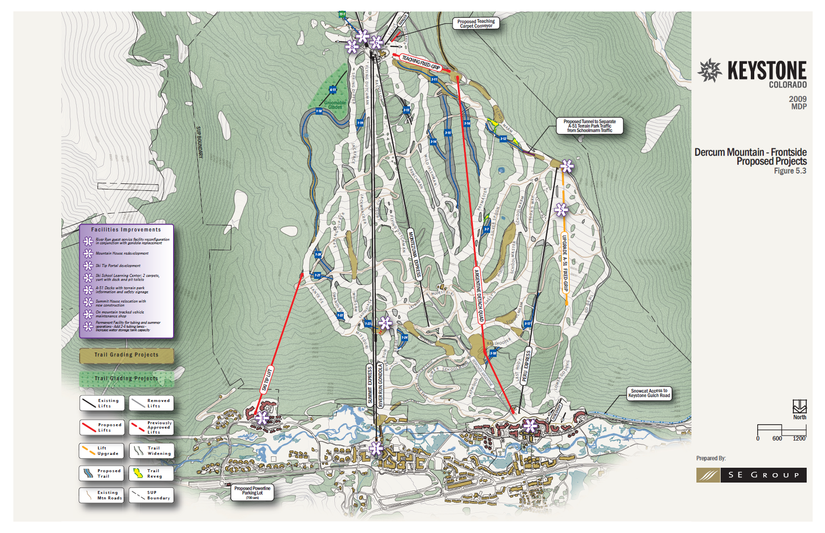 In 2009, Vail Resorts and SE Group updated the resort’s master plan, a road map for expansion over the coming decades. With eight new lifts planned for Dercum Mountain, North Peak and The Outback, Keystone’s plan outlines significantly more growth than slated for Vail’s other Colorado resorts. Much of the expansion would come above current lift service, adding high-alpine terrain to attract a broader spectrum of skiers and snowboarders to Keystone.