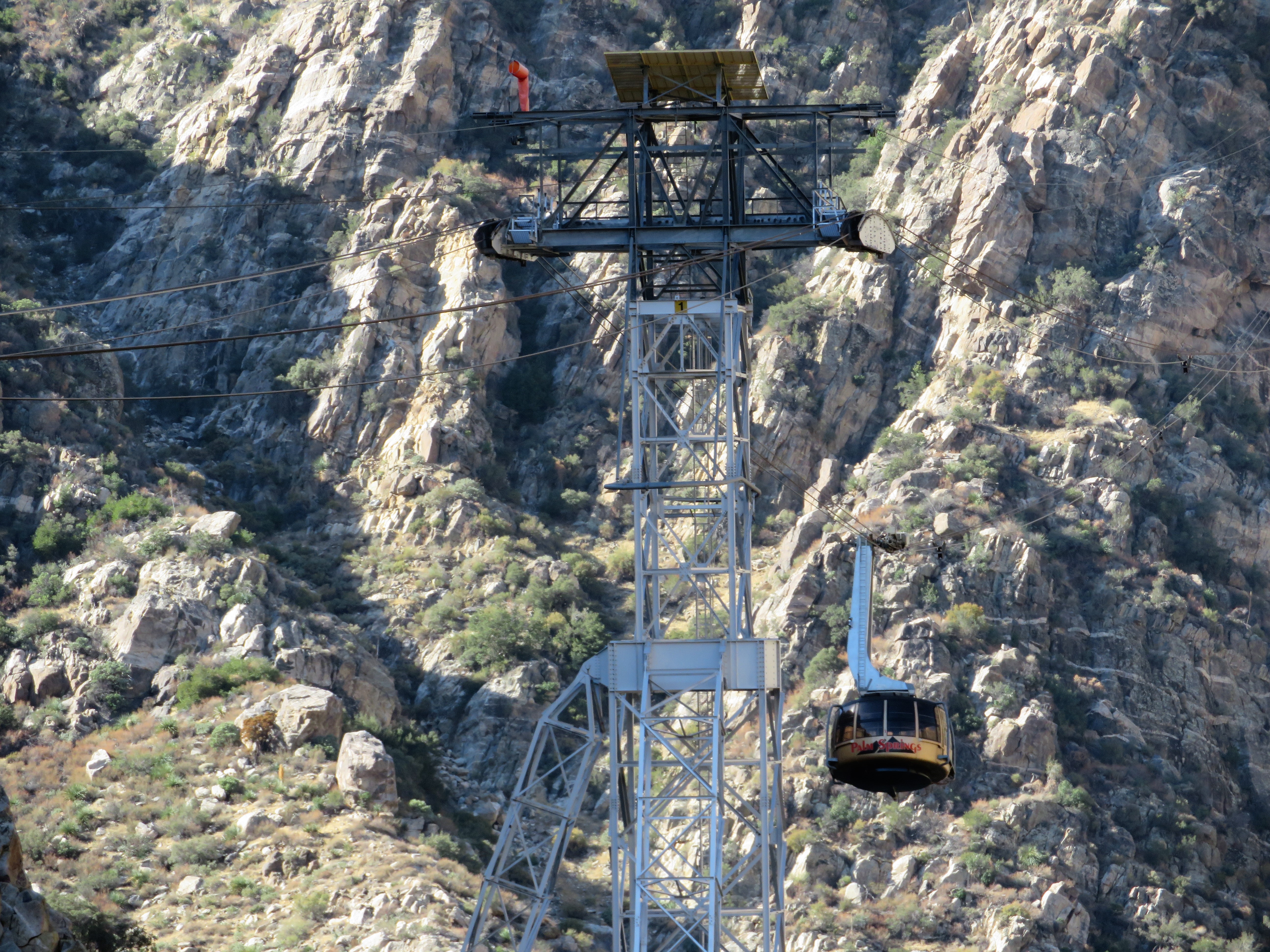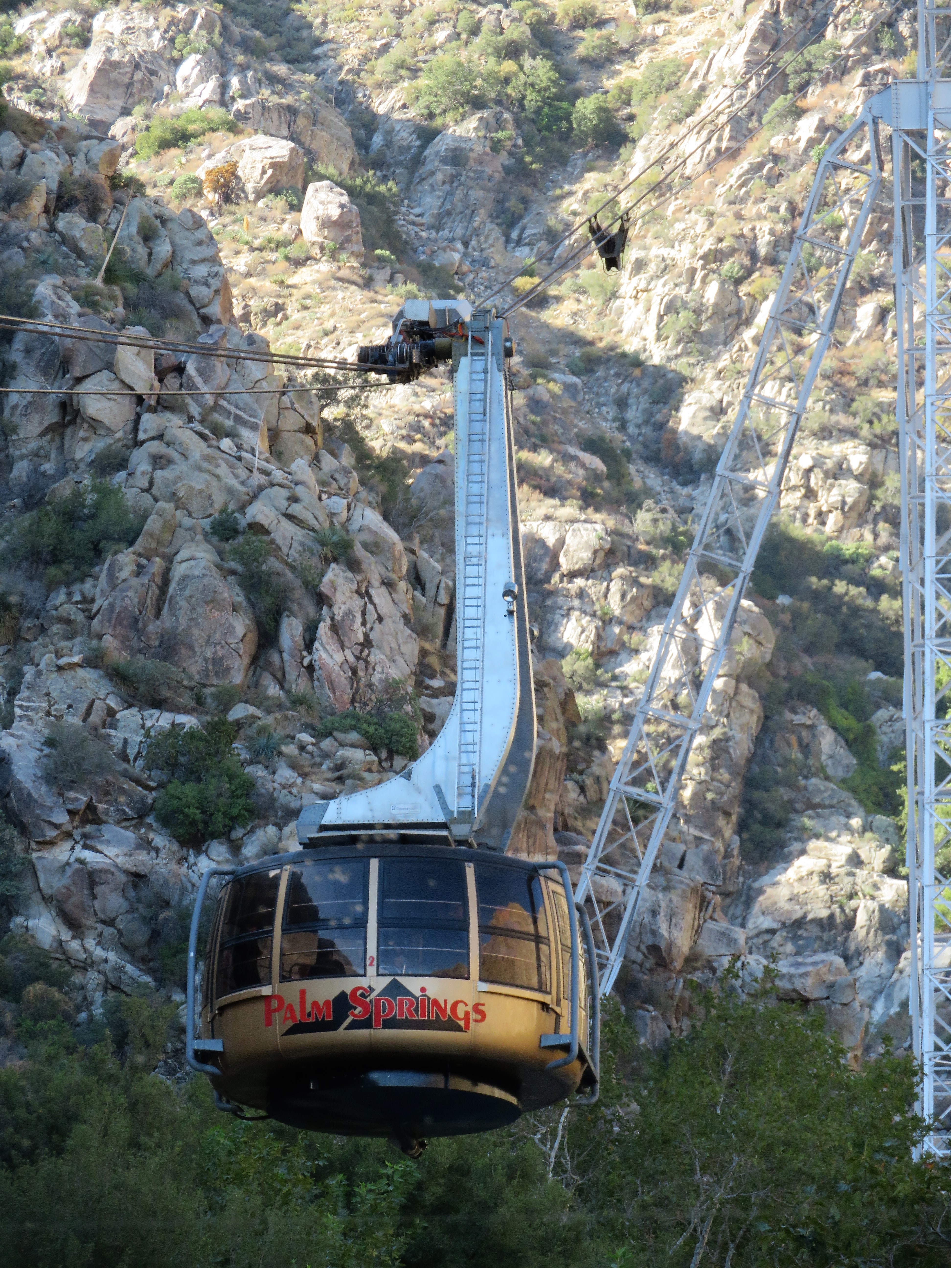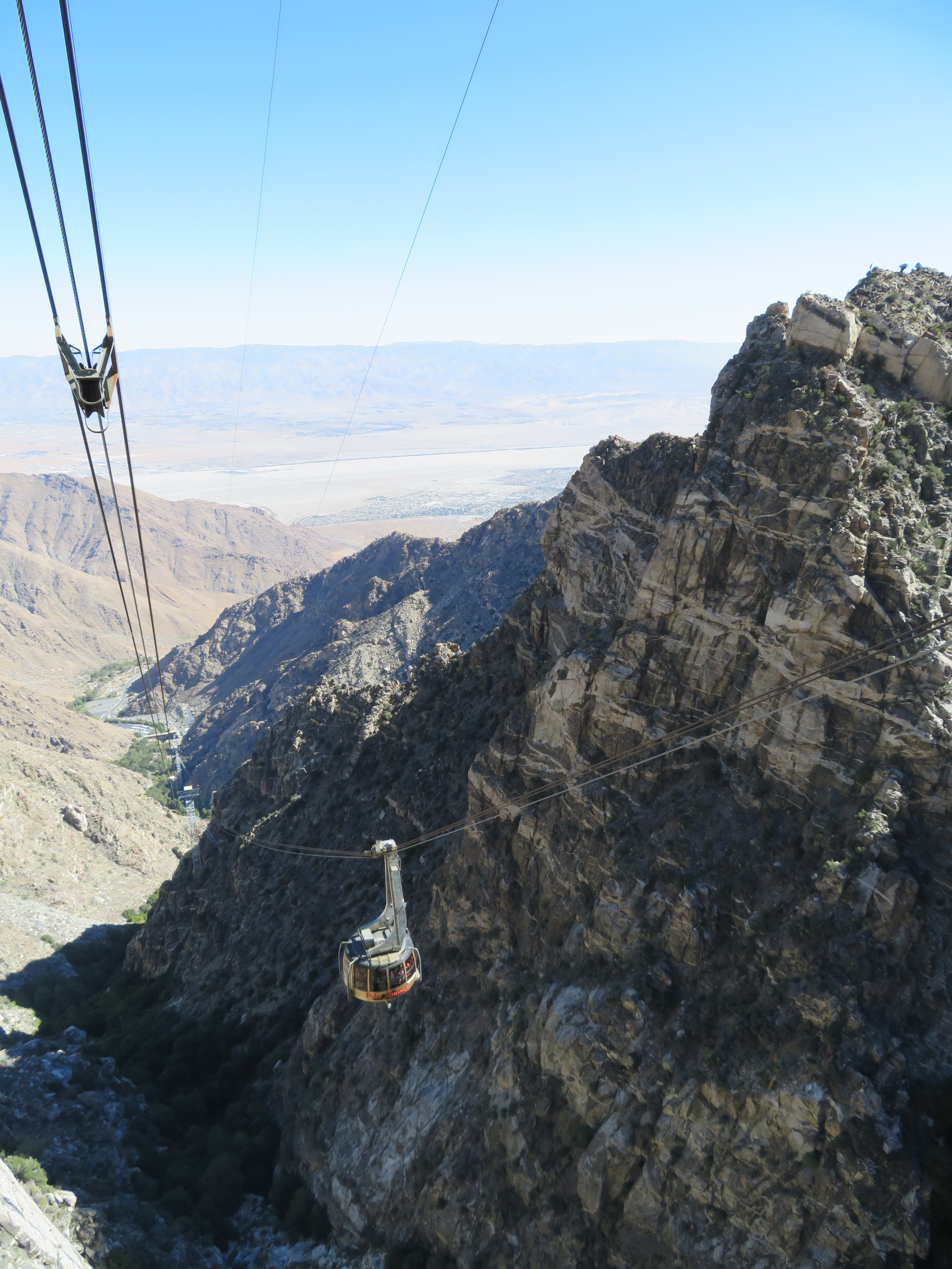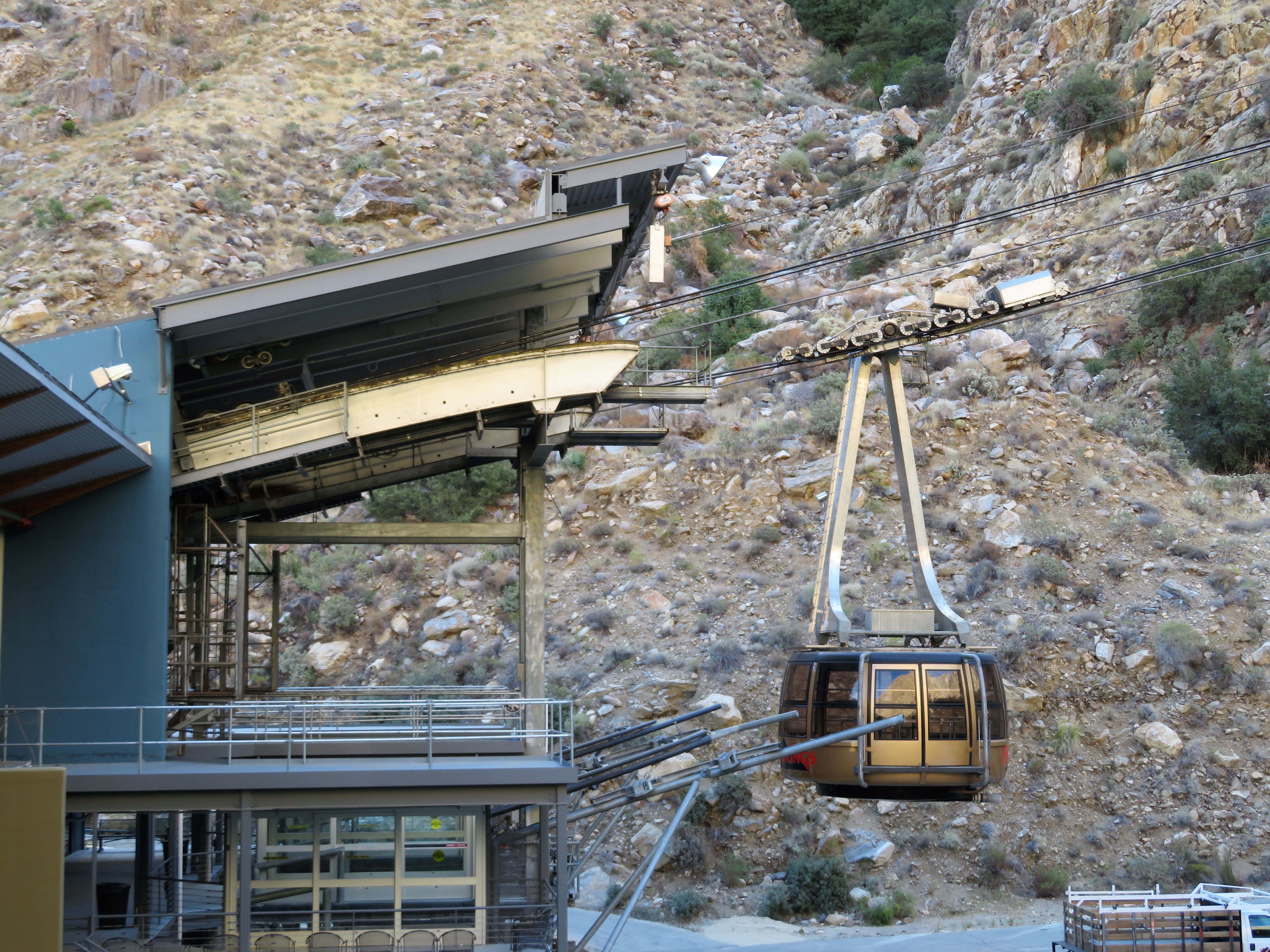More than 18 million people have ridden the Palm Springs Aerial Tramway and the operation runs morning, noon and night 350 days a year. The tram’s ten parking lots sometimes fill but crowds are managed well with tickets sold for specific trips and available online. There are museums, cafes, theaters and shops to enjoy while you wait. I walked right on both ways this weekend, good news because I still have six more American trams left to ride: Alyeska, Gatlinburg, Jay Peak, Roosevelt Island, Sandia Peak and Stone Mountain.