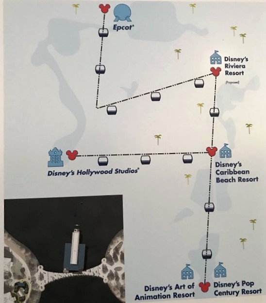 Signage at the Pop Century Resort shows guests how they will be able to reach Epcot and Hollywood Studios by gondola.