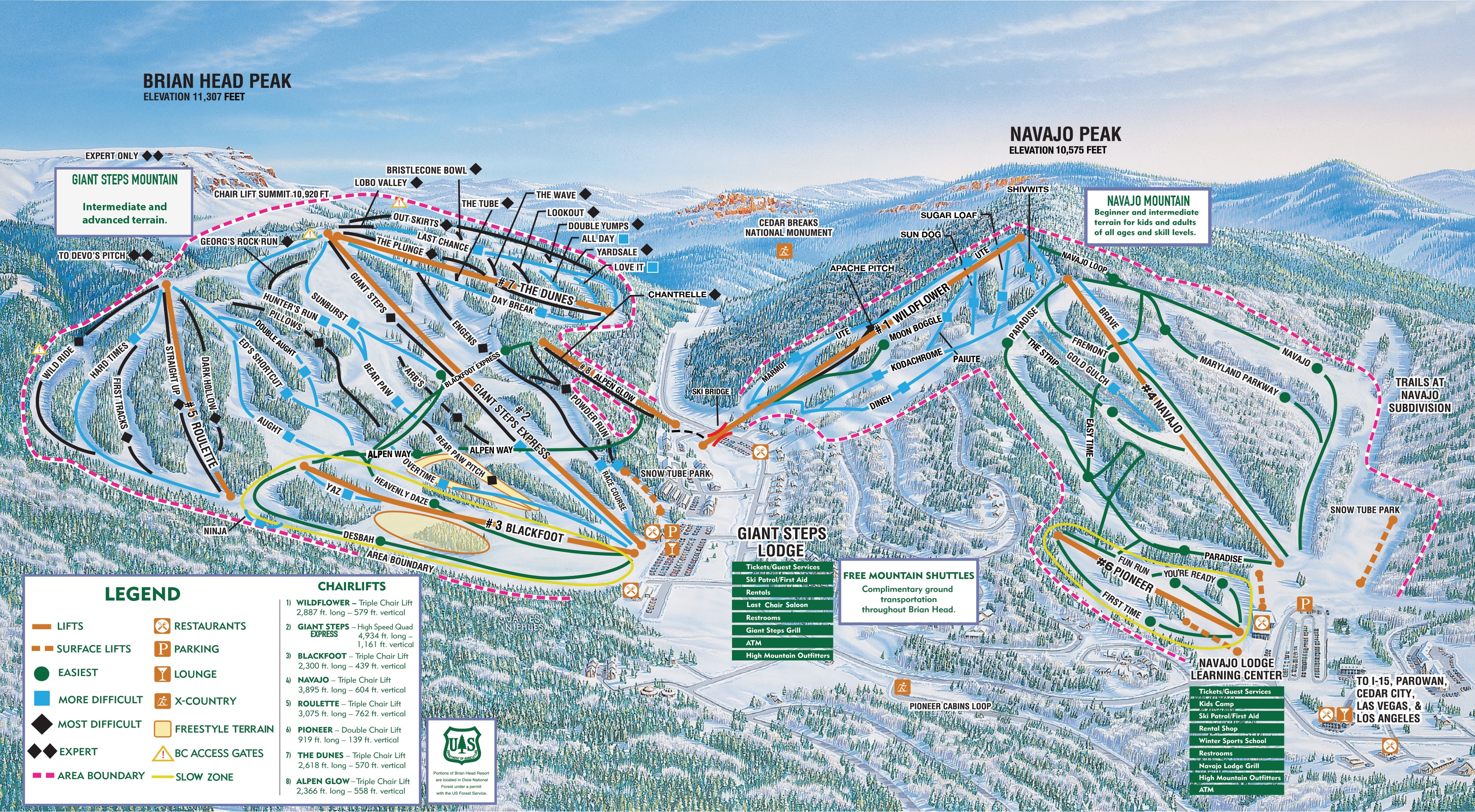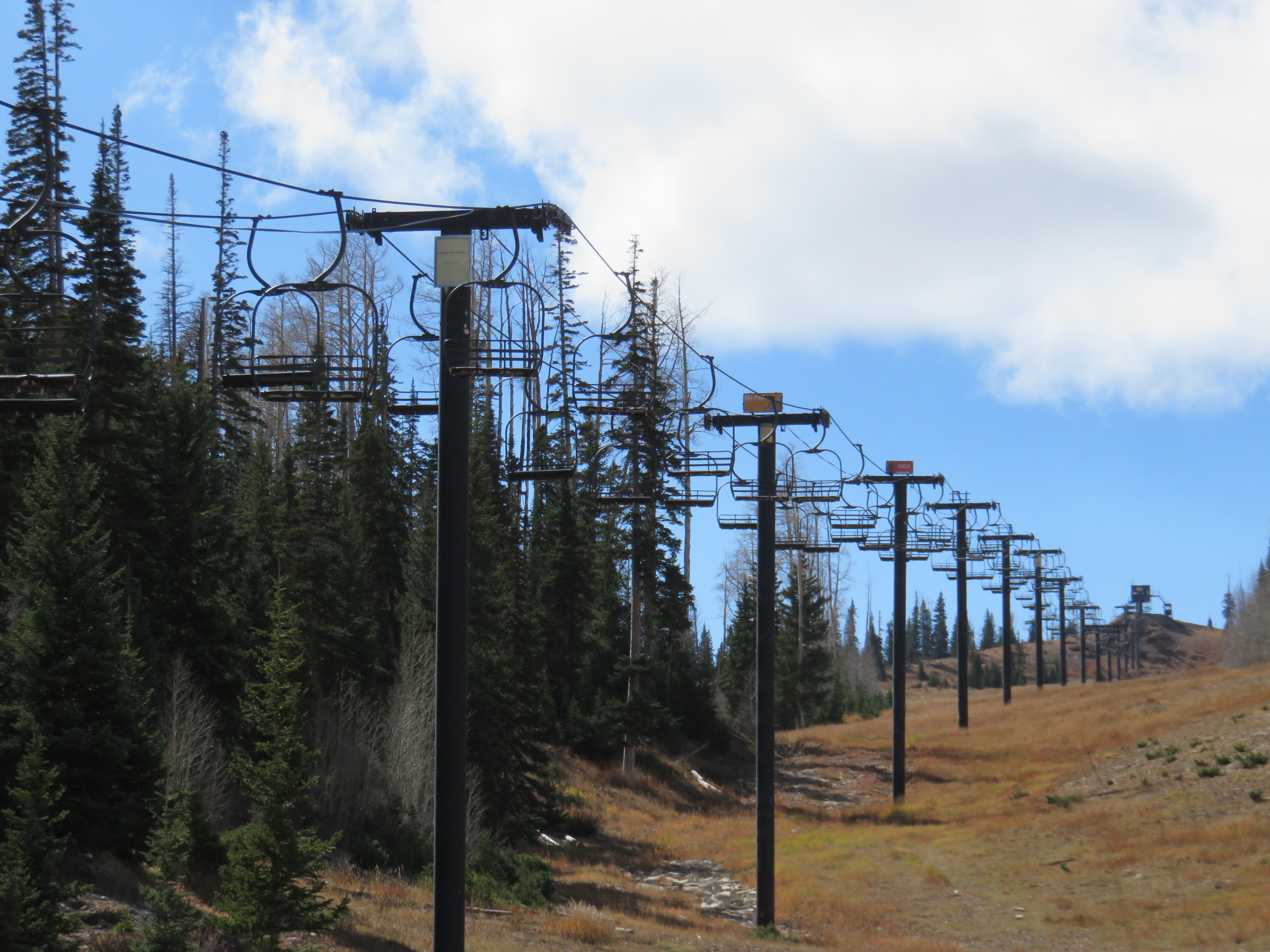 Lift Engineering constructed the current Navajo lift in 1980 to service almost exclusively beginner terrain. The existing lift runs 3,900 feet and rises 620 vertical feet over nine minutes. Brian Head lift maintenance is selling components from it including towers, sheave assemblies, pneumatic emergency and service brakes, grips and chairs.
