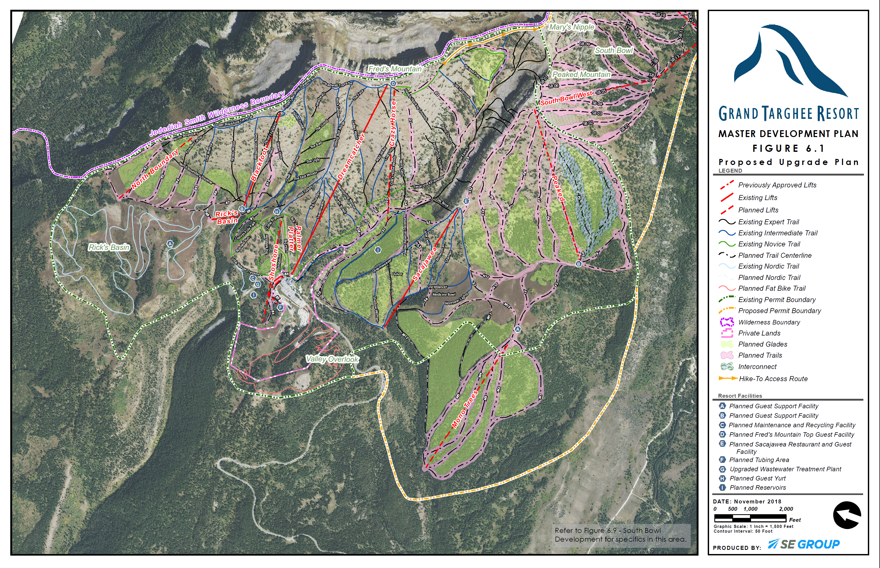 The Caribou-Targhee National Forest recently accepted an updated road map for Grand Targhee Resort, which could eventually result in the western Teton mountain operating as many lifts as the more famous one to the east. The 2018 Master Development Plan serves as a guide for what could change over the following decades and includes a whopping five new fixed grip chairlifts, four detachable quads and three additional surface lifts.