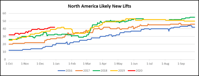 2020 is just two days away and there’s reason for optimism. Vail and Boyne already announced signature projects while Alterra, Powdr and others are likely to follow in the coming months. Some innovative point of interest projects are in the pipeline including a two gondola system at Icy Strait Point, Alaska and another at Argo Mill, Colorado. Race programs at Sugarbush and Aspen Highlands plan to build new surface lifts for training. Overall, announced projects are pacing slightly above last year at this time.