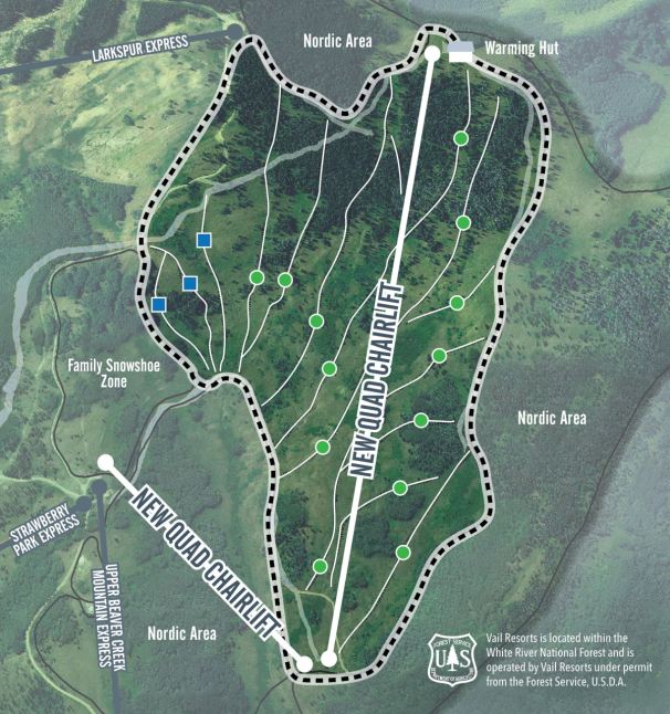 At Beaver Creek, a new detachable quad will service the high alpine McCoy Park learning zone. “This new lift accessed beginner and intermediate bowl experience is a rare opportunity to expand with highly accessible terrain in one of the most idyllic settings in Colorado and will further differentiate the high-end, family focused experience at Beaver Creek,” said the company. A second quad chair will provide egress to the top of the Strawberry and Upper Beaver Creek Mountain Express lifts.
