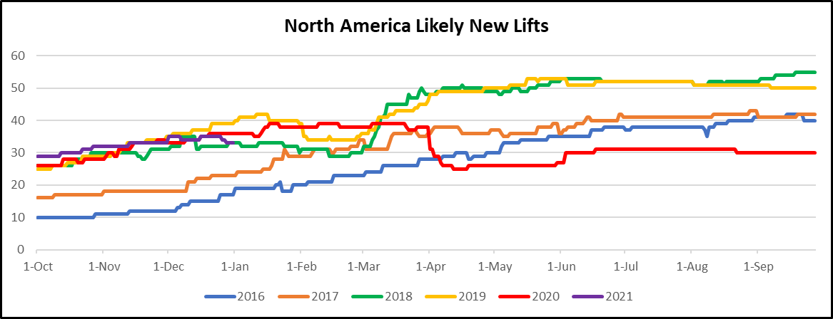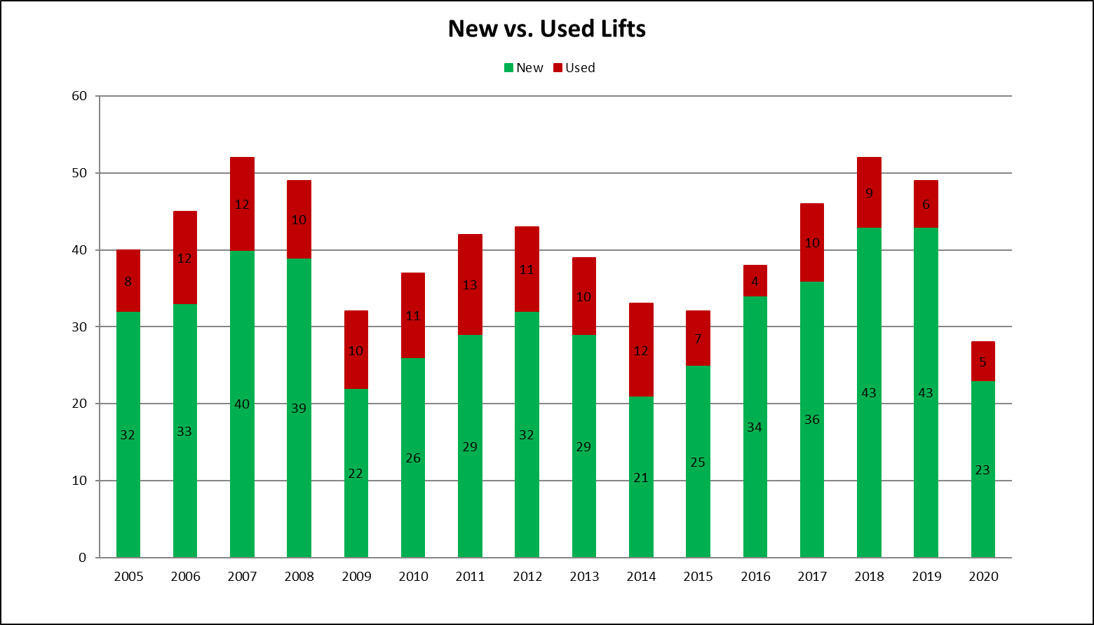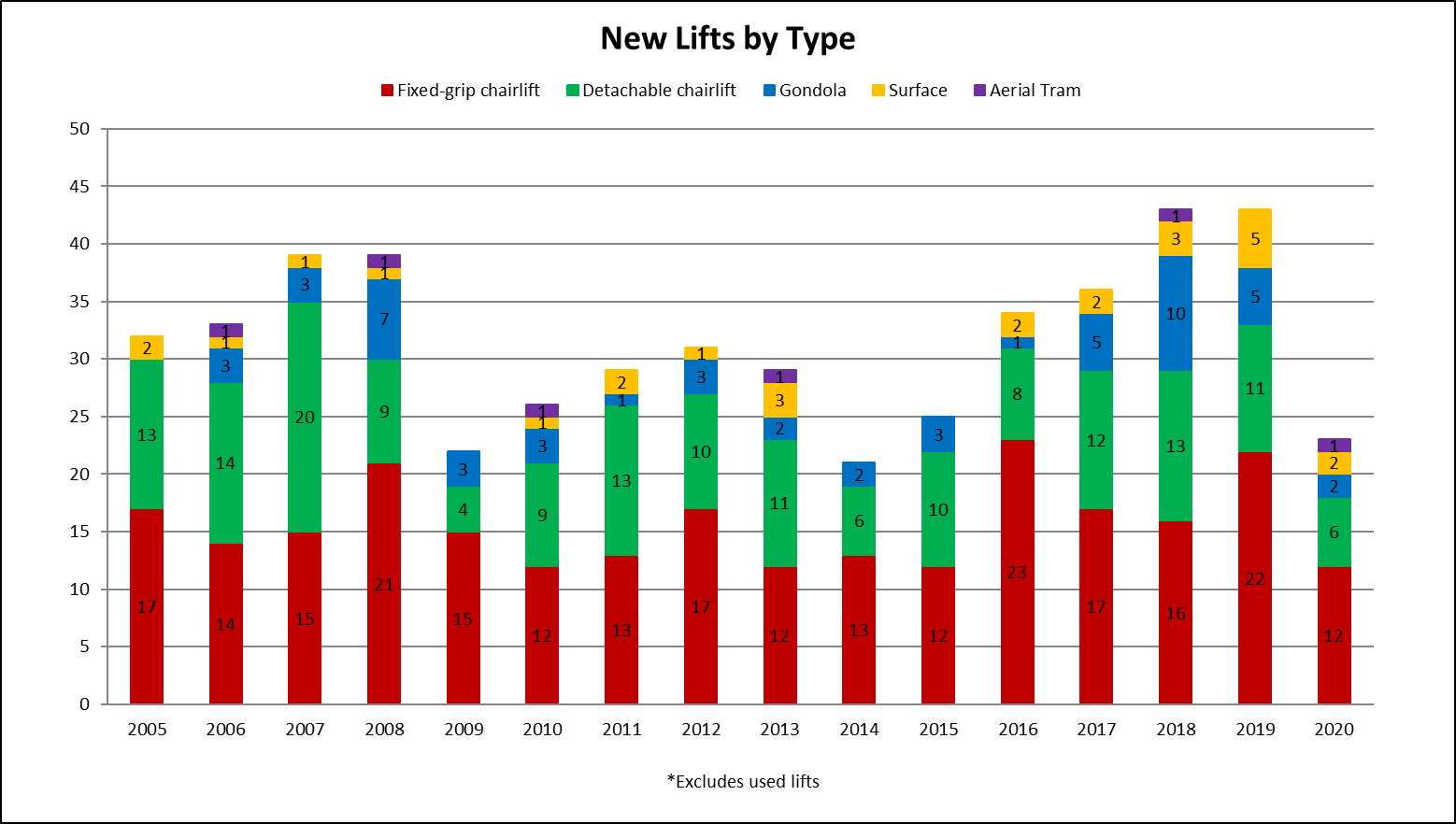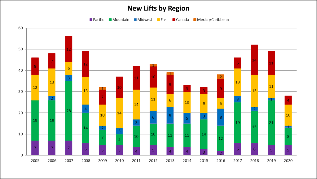 On the eve of 2021 there’s reason for optimism. Not only did resort groups already make payments for lifts not completed this year, a whole new set of projects are approved and ready to move forward. 2021 is pacing similarly to 2018, a year when 43 lifts were built.