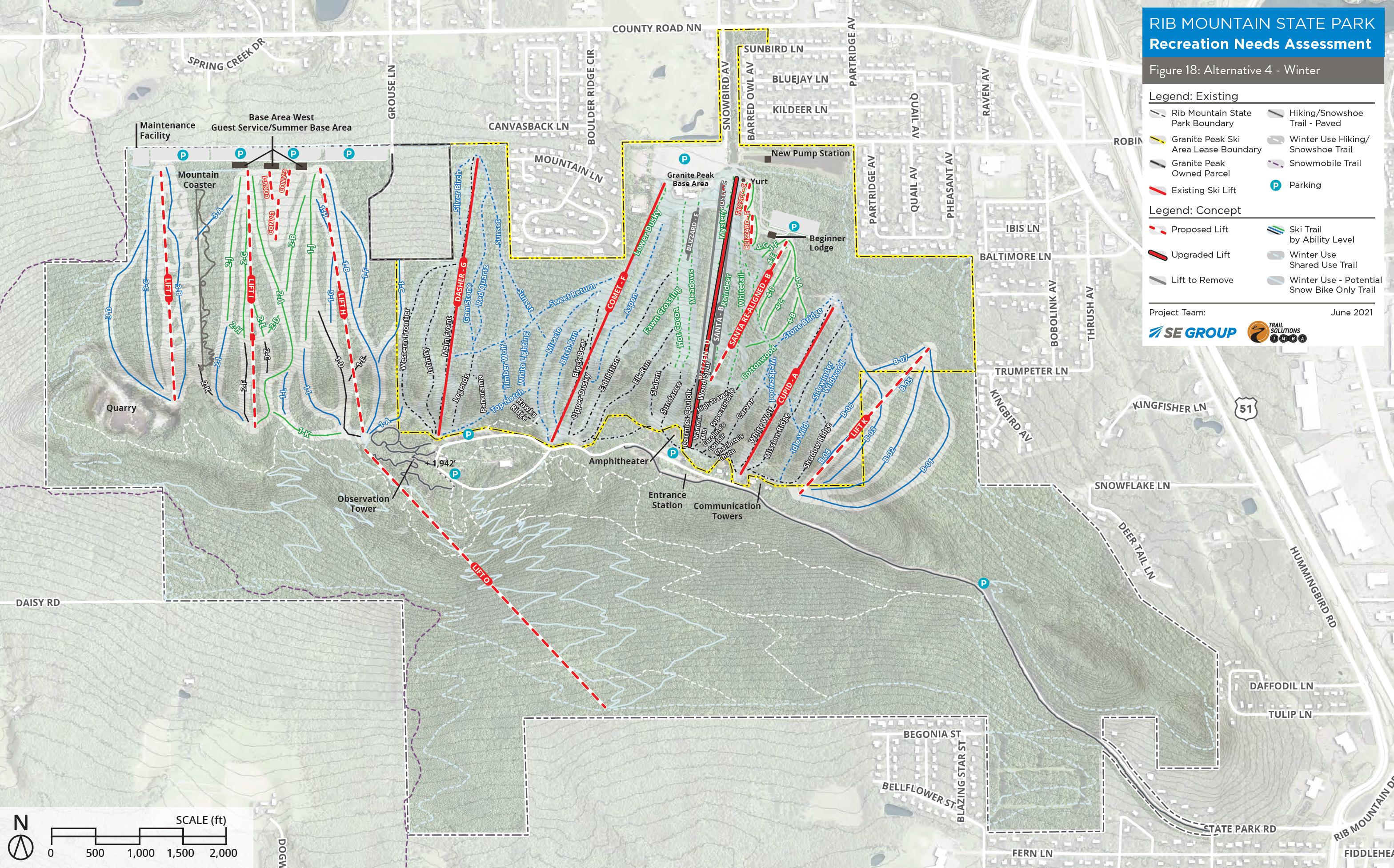 Alternative 4 adds a third westward expansion lift plus a year-round mountain biking chair on the south side of the mountain (yes, a lift dedicated to fat bikes instead of skiers all winter). Total visitation in winter and summer could reach 744,000 with the most diverse recreational offerings in the region.