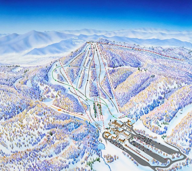 A new Summit Pass base lodge would anchor a new entry point for the larger Timberline area. The 20,000 square foot building would include space for dining, ticketing, ski school, retail, restrooms, and more. A new conveyor lift would serve beginner skiers and snowboarders away from the busy Timberline terrain. The master plan also includes replacement of Summit’s Riblet double with a 2,200 foot fixed grip quad and expansive new snowmaking.