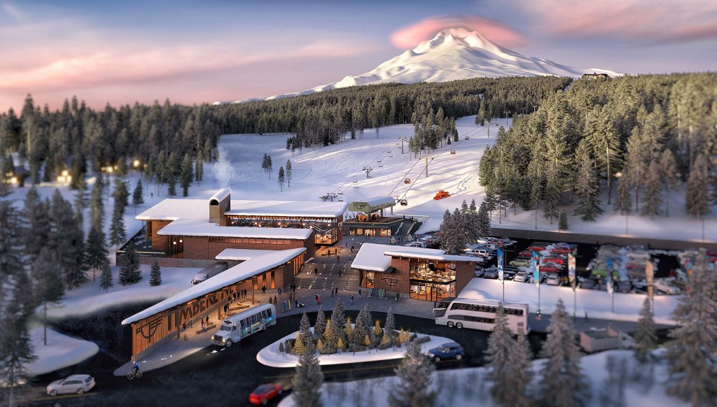 The proposed 10 passenger gondola would link three stations 2.5 miles apart with an hourly capacity of 1,800 guests in each direction. “It would serve as an introductory experience to variety of guests to Timberline and the Mt. Hood National Forest, including beginner skiers, more advanced skiers traveling to Timberline, tourists exploring the area, people sledding or tubing, and more,” notes the plan, which was prepared by SE Group. The gondola would ascend 1,958 vertical feet in just 12 minutes, though a journey to the top of Timberline would still require two additional lift rides.