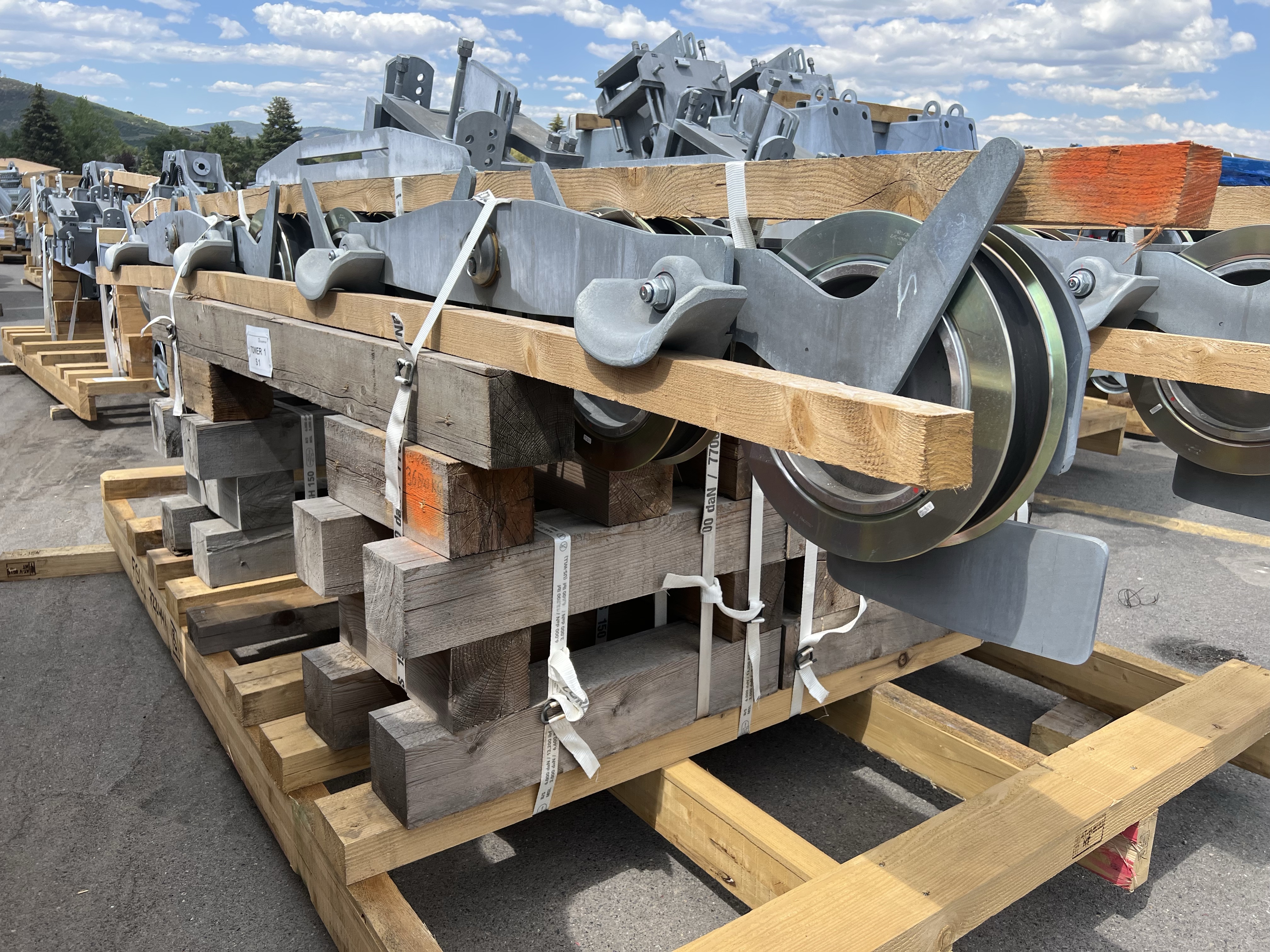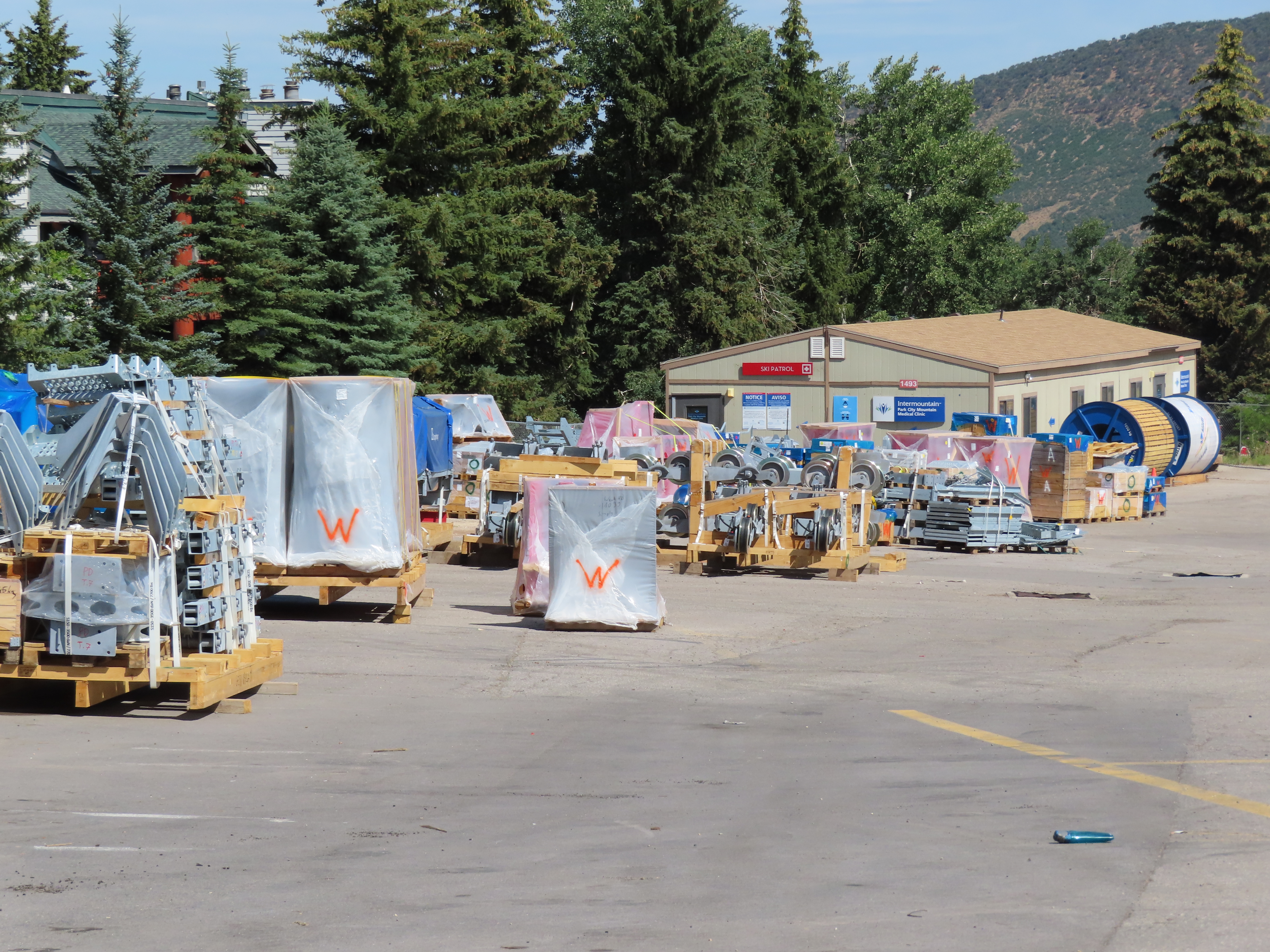 While the process plays out, Doppelmayr and Park City are placing lift equipment which has already been delivered into storage. When I stopped by last week, parts were being sorted and loaded onto trailers.