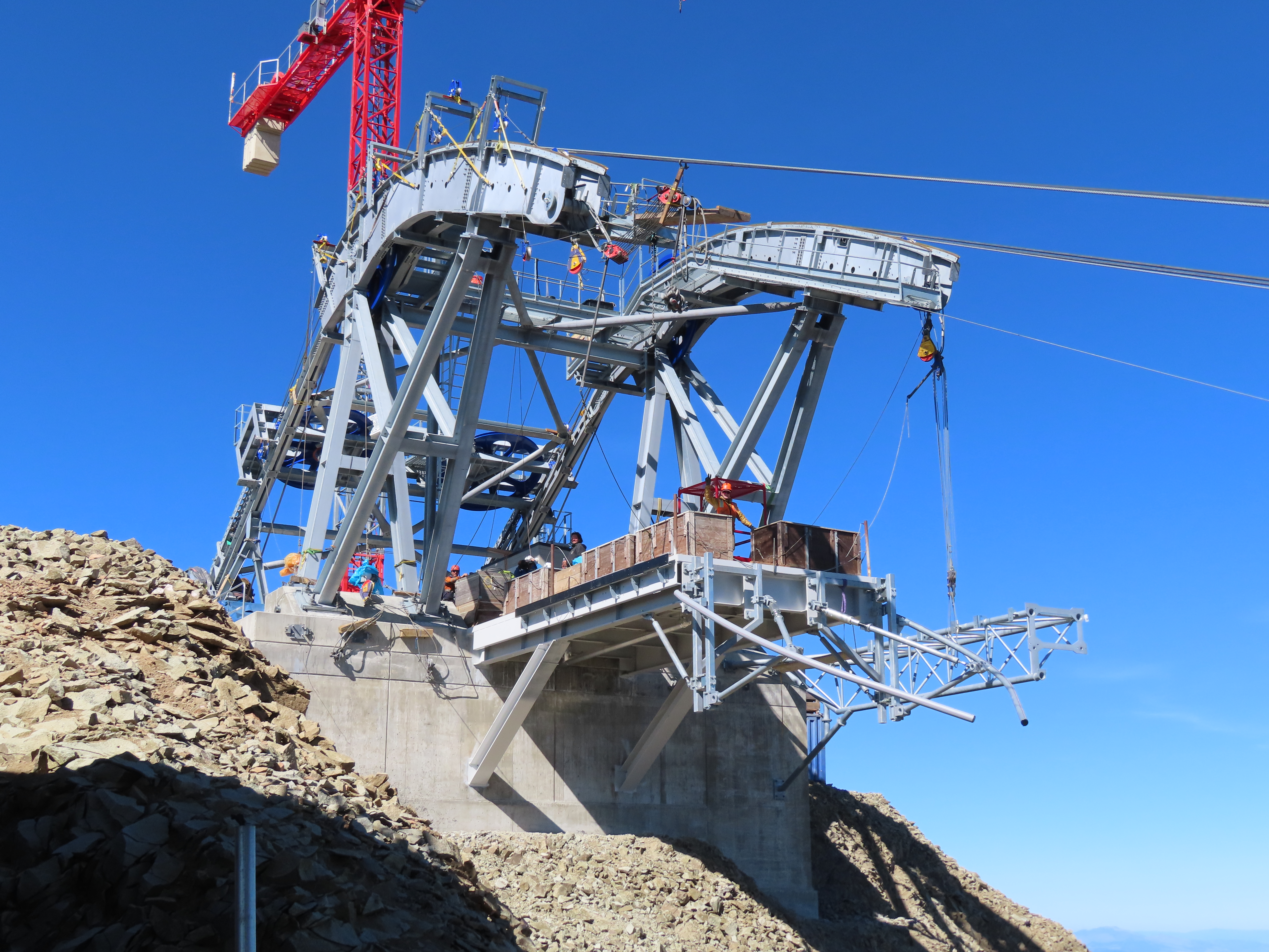 The old tram needed to go. The bottom terminal was built atop a rock glacier and, while designed for it, flowed at least 25 feet downhill over the past 28 years. The lower dock no longer sits level such that water pools in triangles at corners. Erroneous faults occur routinely as the tram completes its final missions to 11,166 feet (it’s not a safety issue, each fault is investigated before the lift is restarted).