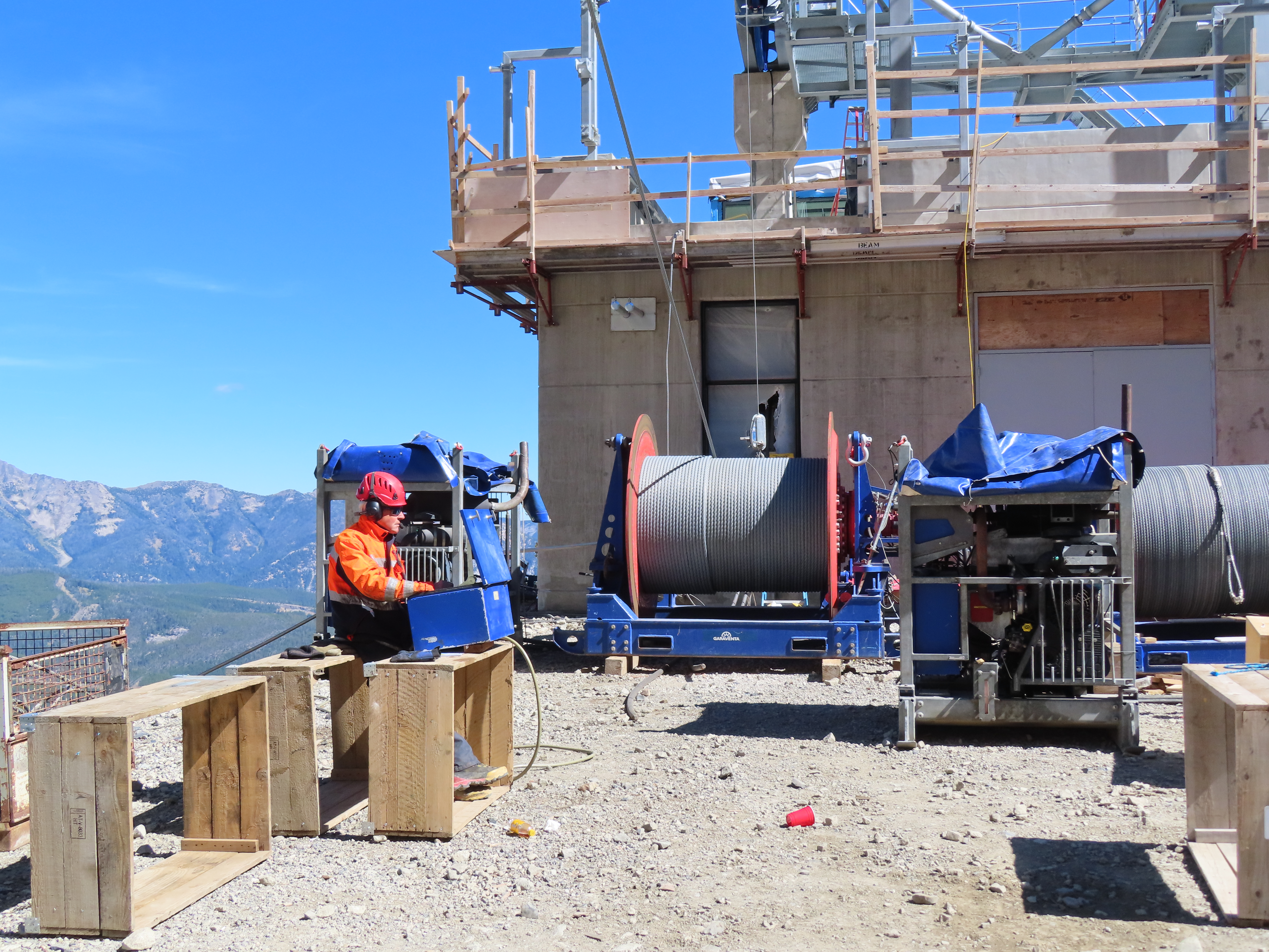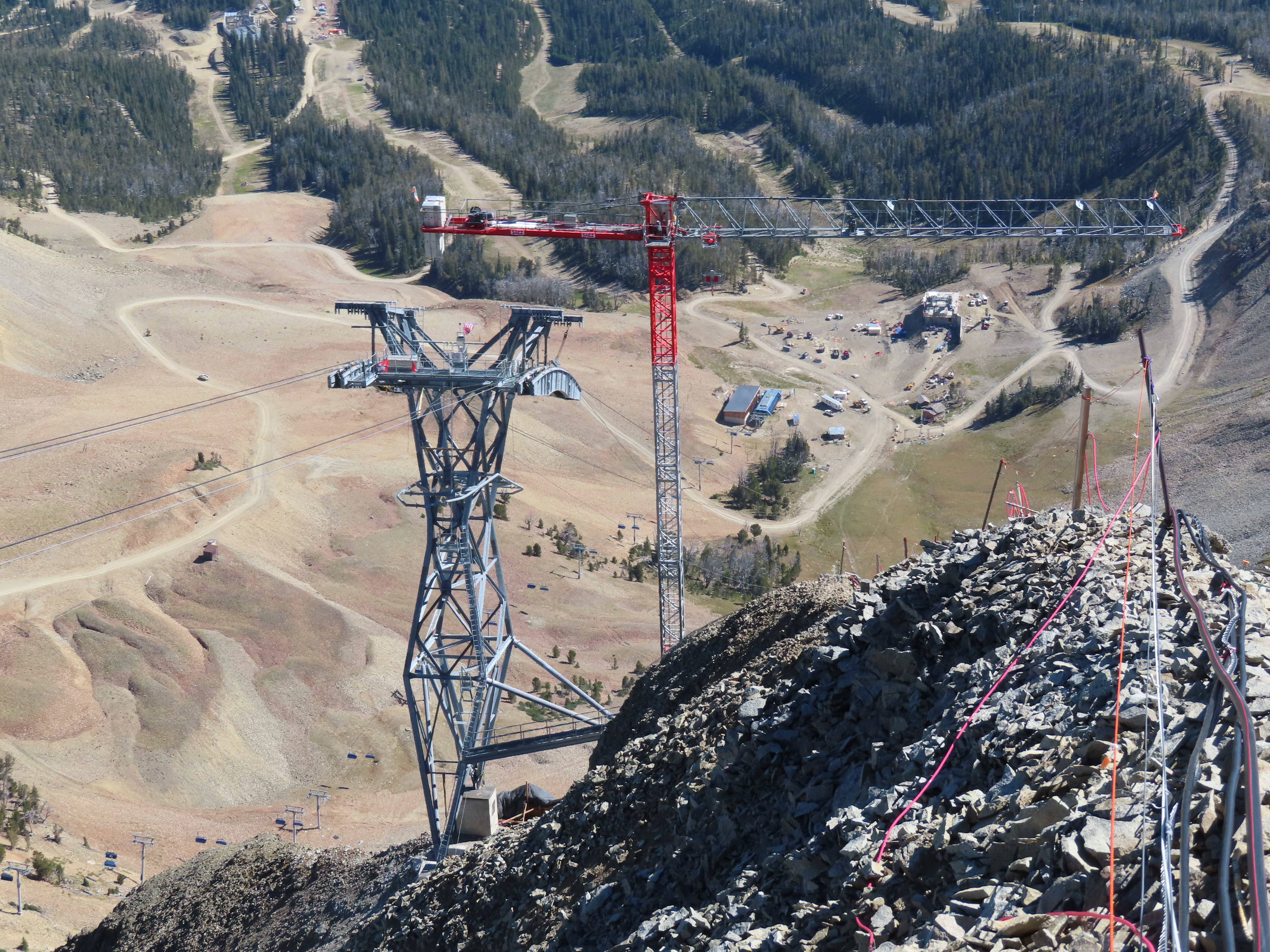 This summer’s greatest challenge was not the tram installation itself but rather setting twin tower cranes needed to build the 100 foot intermediate tower and top terminal. Each crane had to be flown in sections weighing up to 9,000 lbs. It took multiple Chinook helicopters weeks with pauses for bad weather and other setbacks. Once the cranes were live and Big Sky’s own employees trained to operate them, the installation team from Garaventa could get to work.