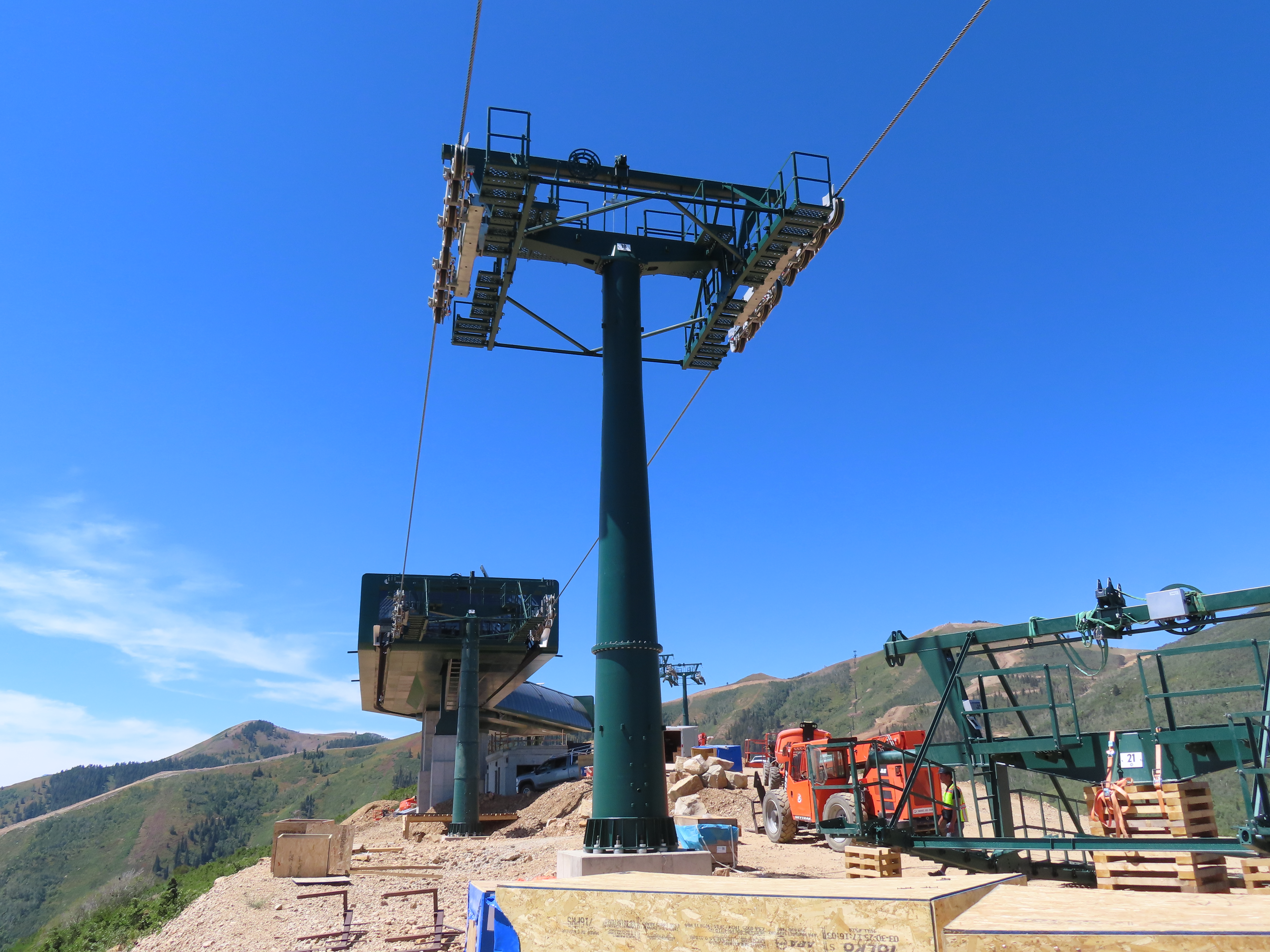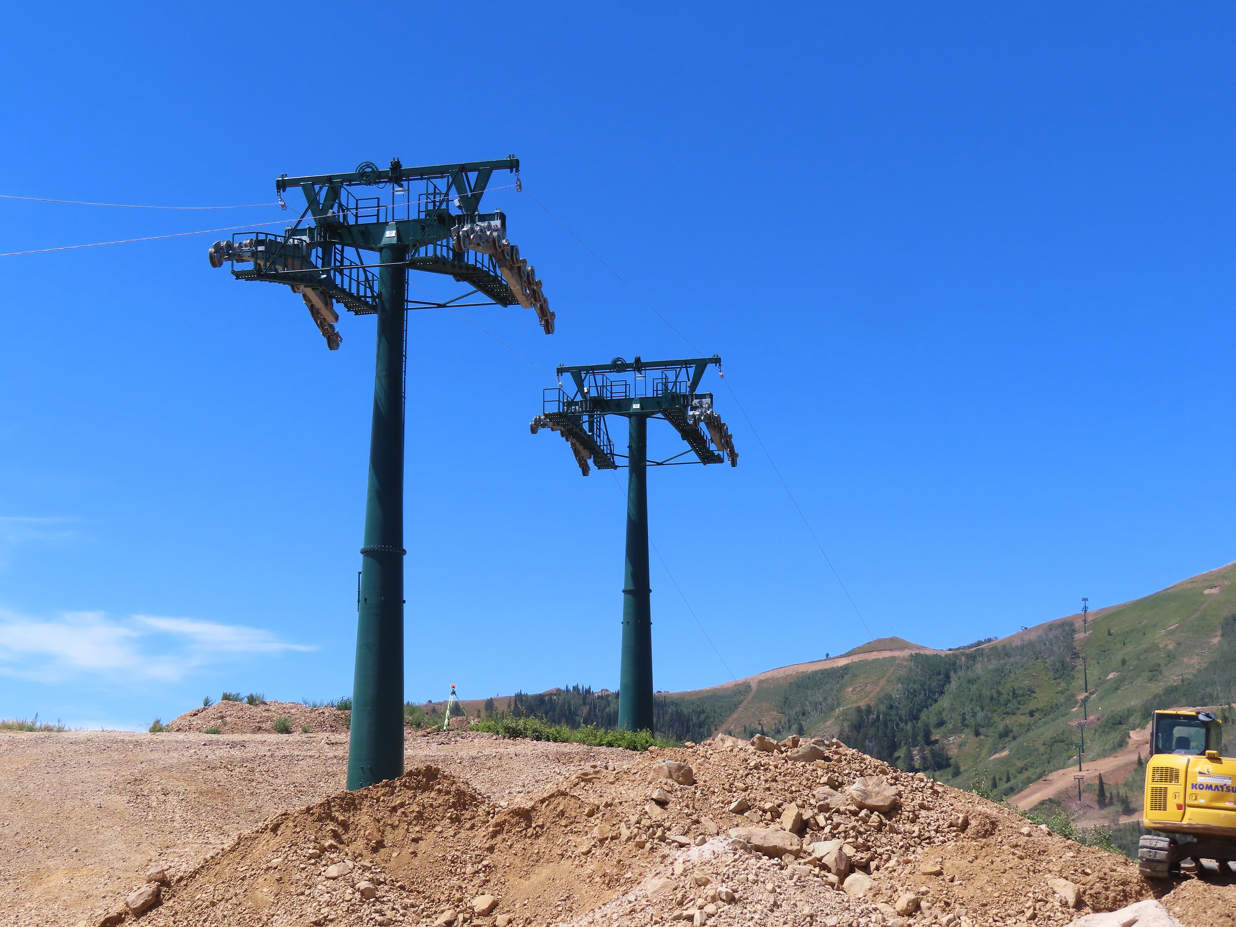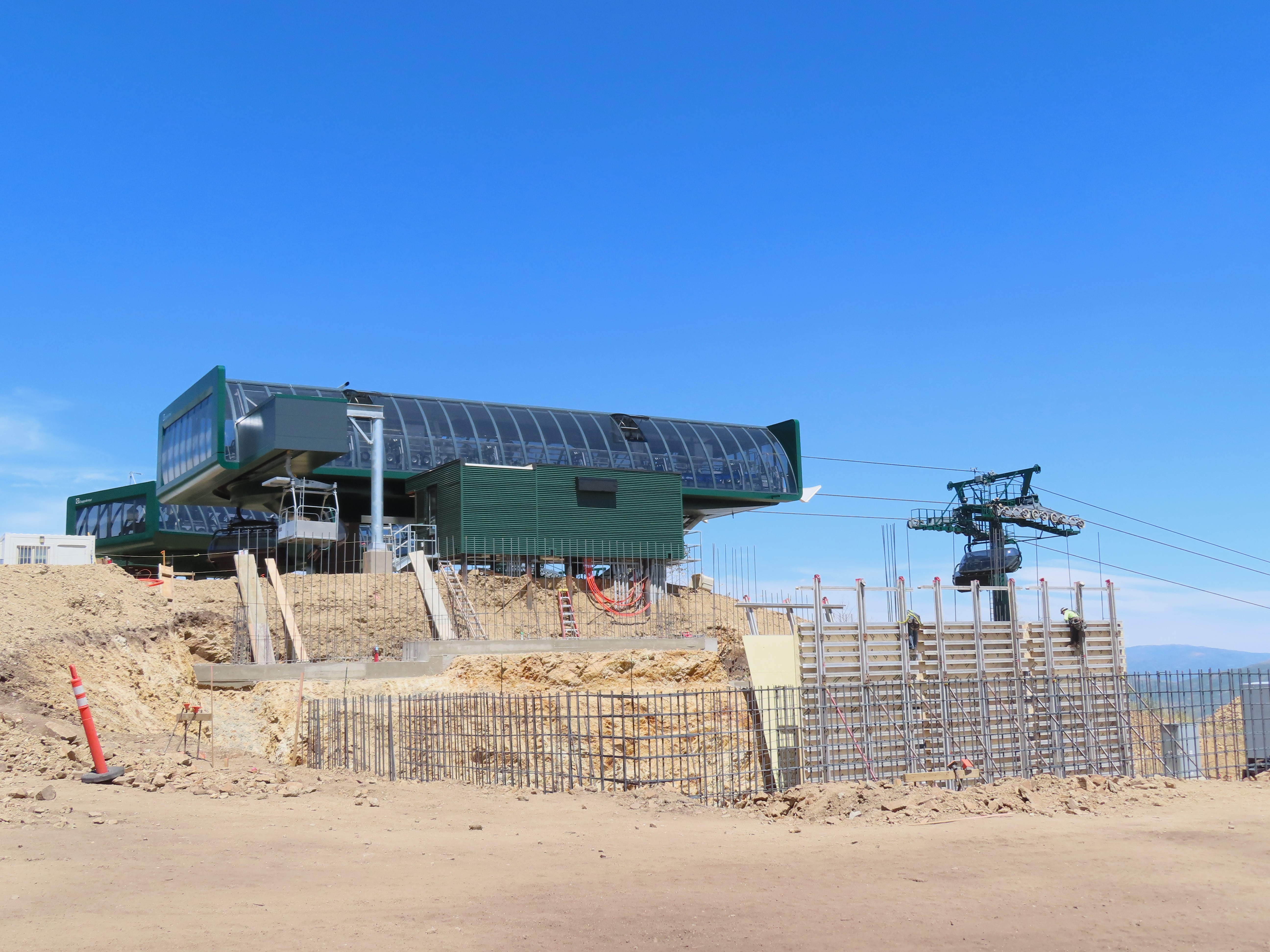 The smallest lift under construction is Neptune Express, set to load below Pioche Village and top out next to Pioche Express. This is one of the two machines Highlander’s installing this summer on top of several last year. The Highlander team was completing the top drive terminal this week with the bottom to follow.