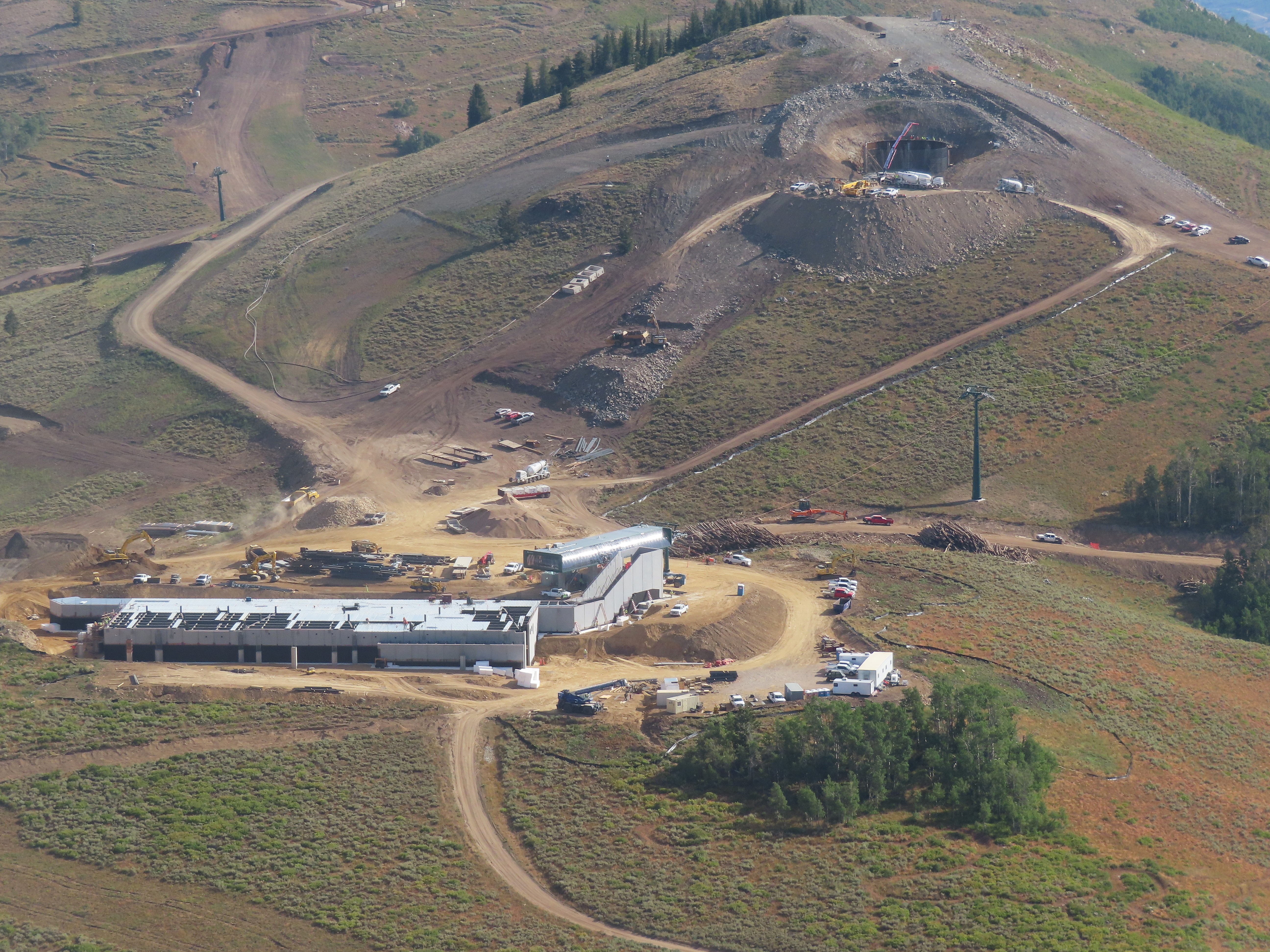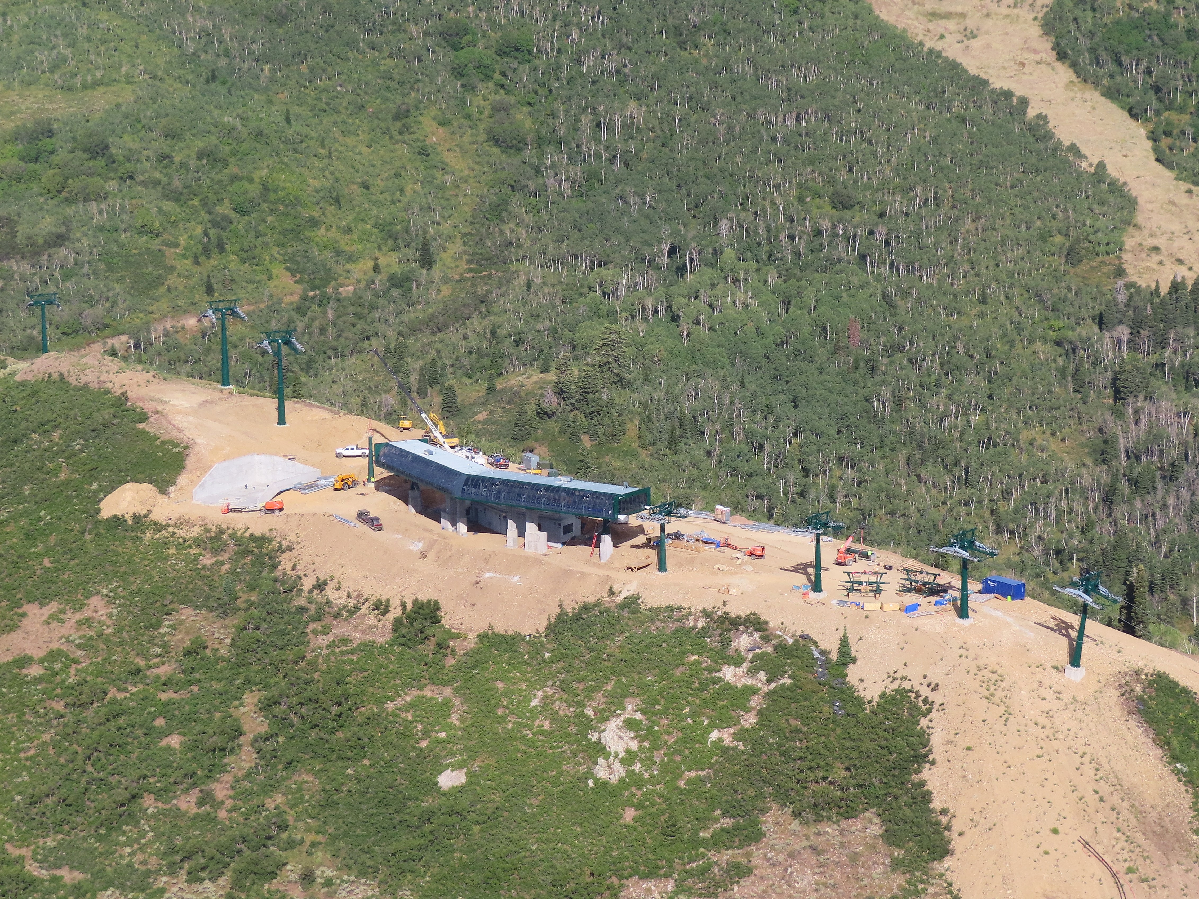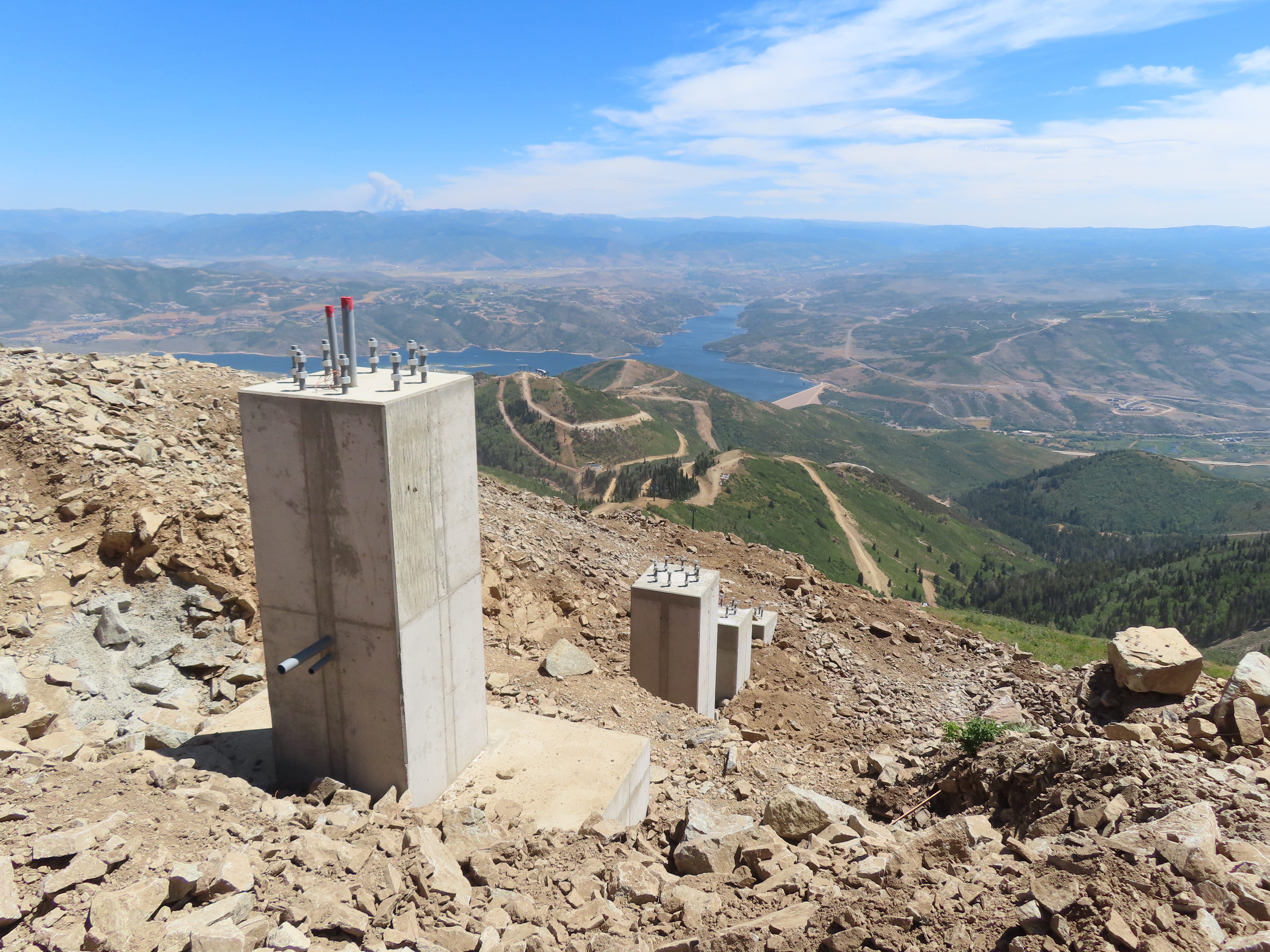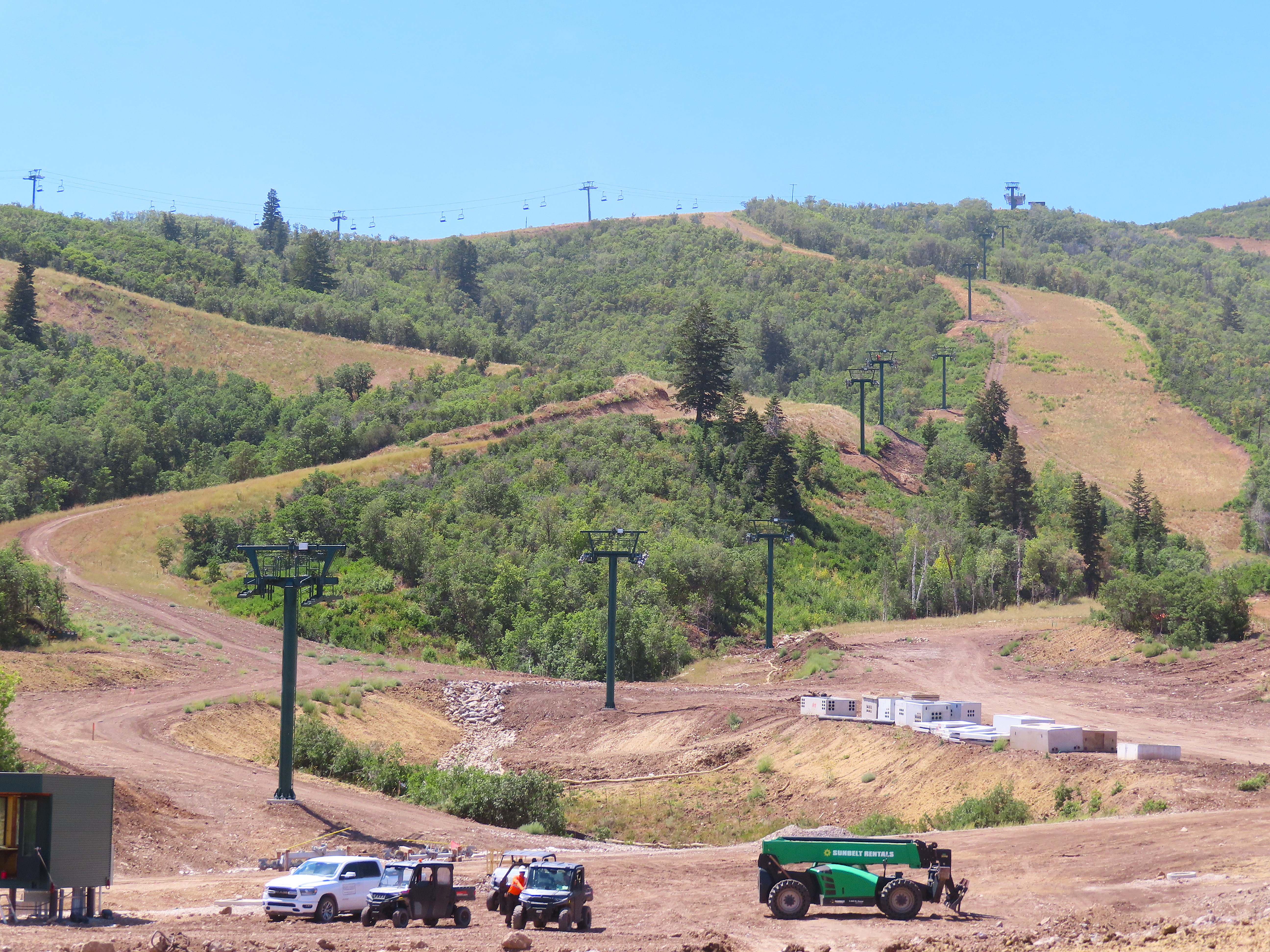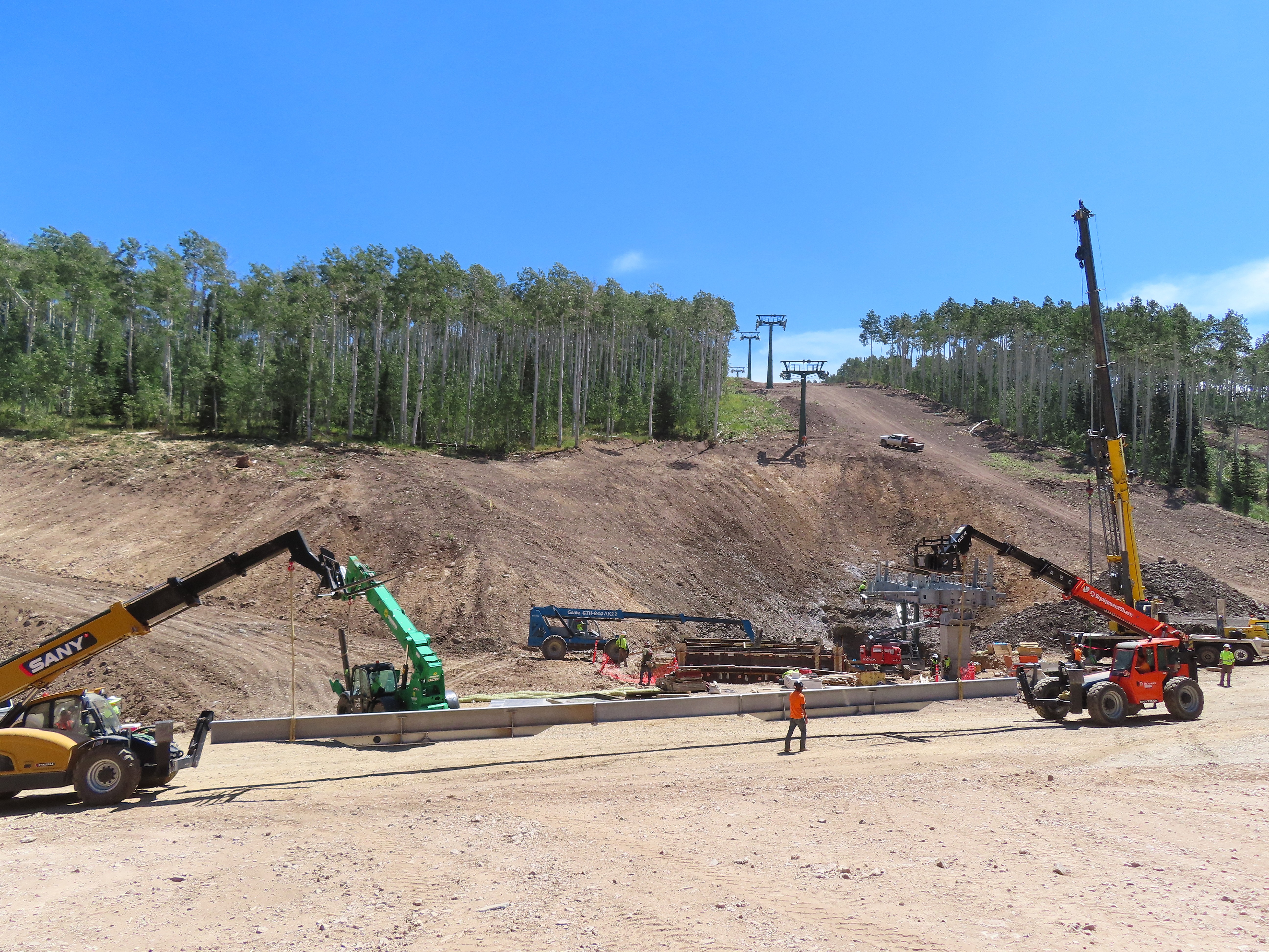 The last two pieces of the chairlift network are what the development team call 6A and 6B, originally planned as one lift with an intermediate station. Now dubbed Vulcan Express and Revelator Express, these steep UNI-G quads will service some of the best fall line skiing in Utah. Revelator will cross underneath the gondola and reach the high point of the expansion – 9,370 feet. Revelator’s bottom terminal is in with concrete almost complete and towers to follow in early September. “We’re almost out of the concrete business,” McKinnon noted.