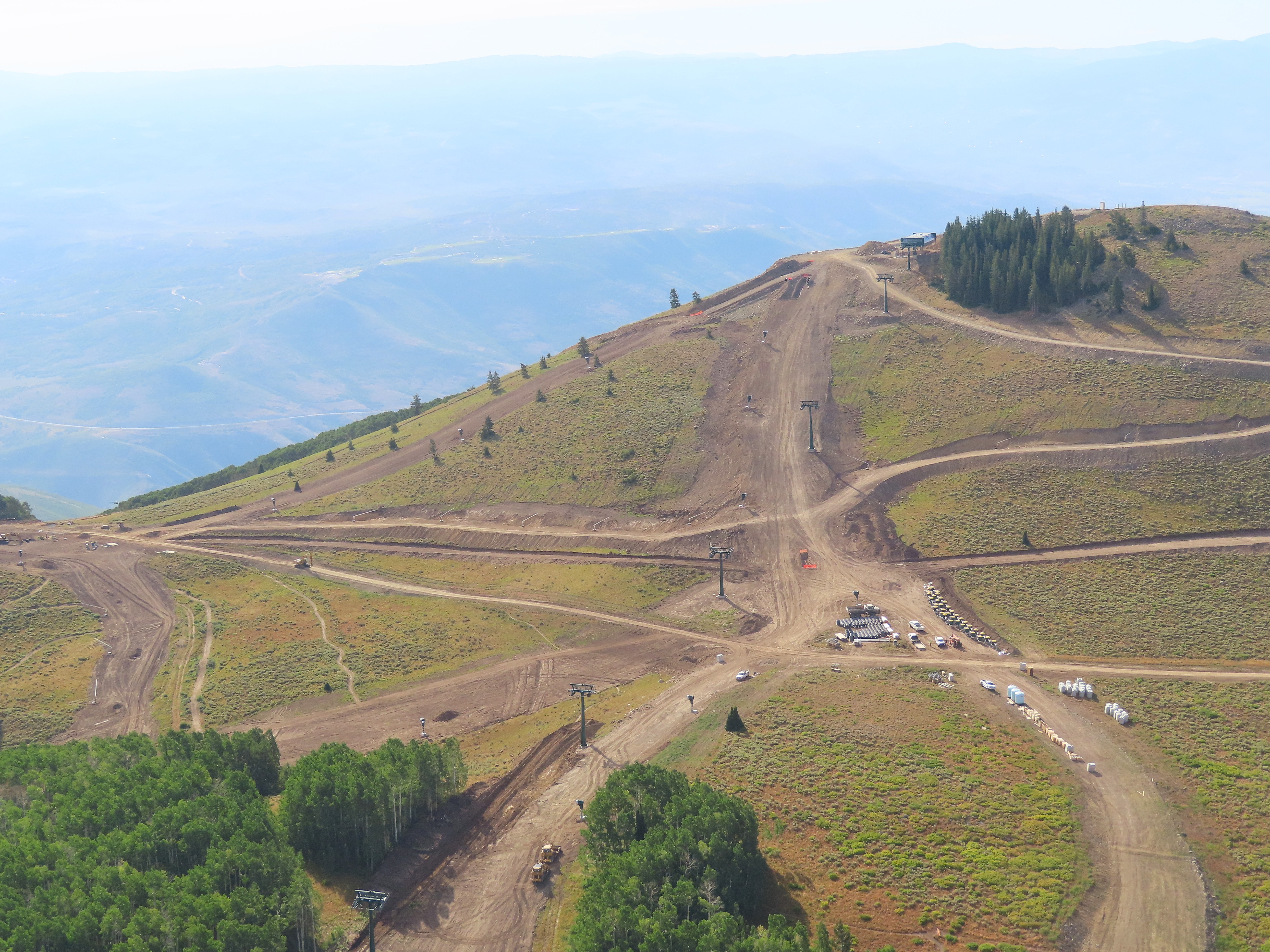 Most readers know Deer Valley launched the six place Keetley Express and two nearby quad chairs last season. While Keetley’s gorgeous, she represents a small portion of the overall project. Within that initial footprint, Layton Construction continues work this summer to complete a parking building for Keetley’s 102 bubble chairs. Right next to the top of Keetley sits the top of Galena Express, one of two detachable quads finished and commissioned last spring. The second is Pioche Express, connecting the bottom of Aurora to the northernmost summit in the 2,274 acre expansion.