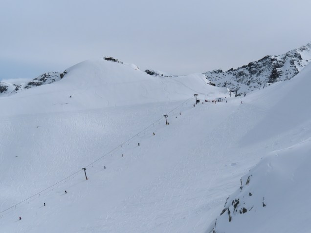 Opened in 1988, the Showcase T-Bar crests the upper part of Horstman Glacier near Blackcomb Peak. For much of its history, the T-Bar ran throughout winter, spring and summer; servicing a wide variety of terrain. In recent years, glacial recession caused the Doppelmayr T-Bar to operate sporadically. Three of Showcase’s towers are pinned on ice, requiring periodic maintenance and repair. When snow levels drop too low, the track becomes too steep for safe riding. Vail removed the nearby Horstman T-Bar without replacement in 2020 due to recession on the lower part of the glacier.