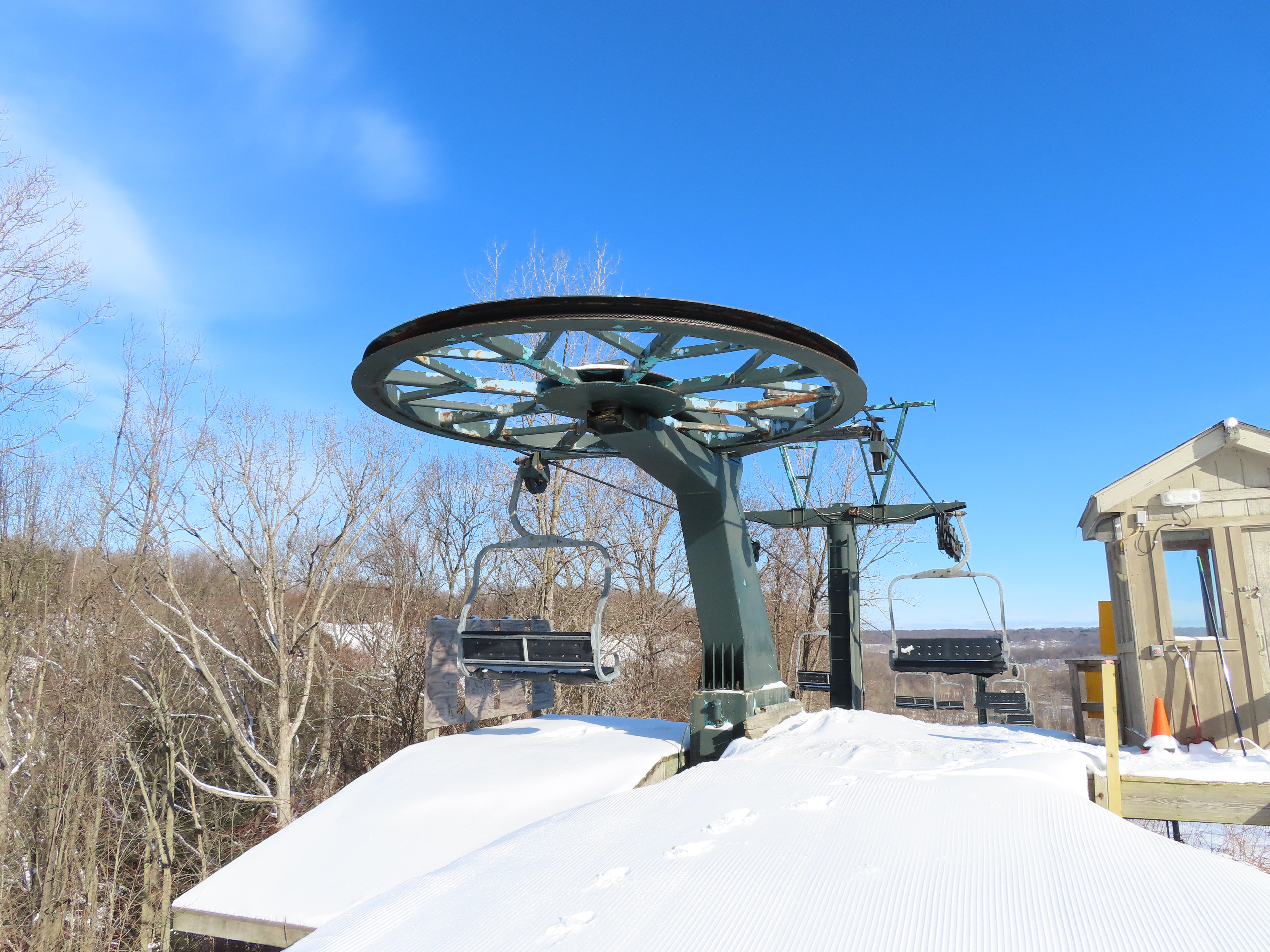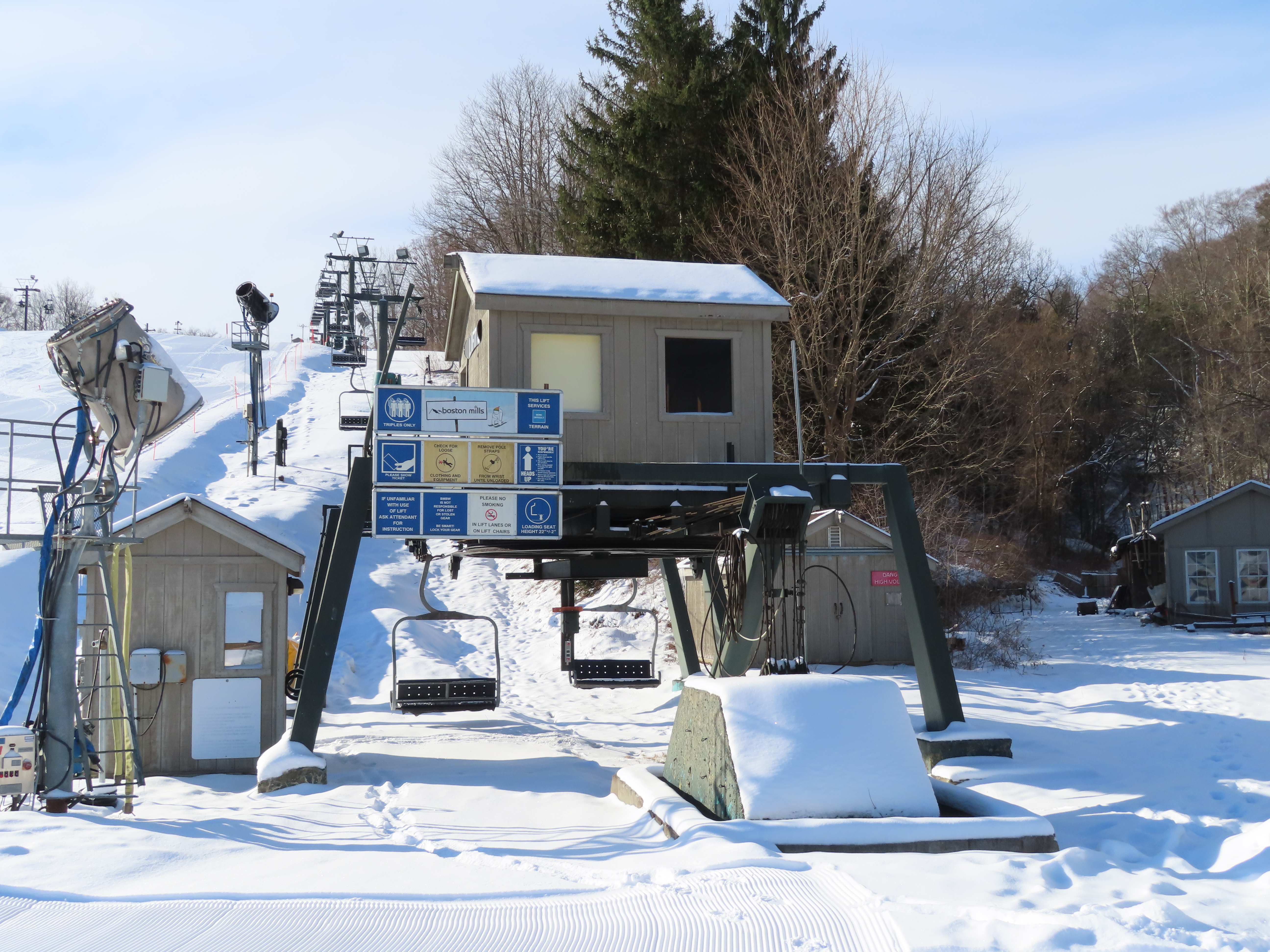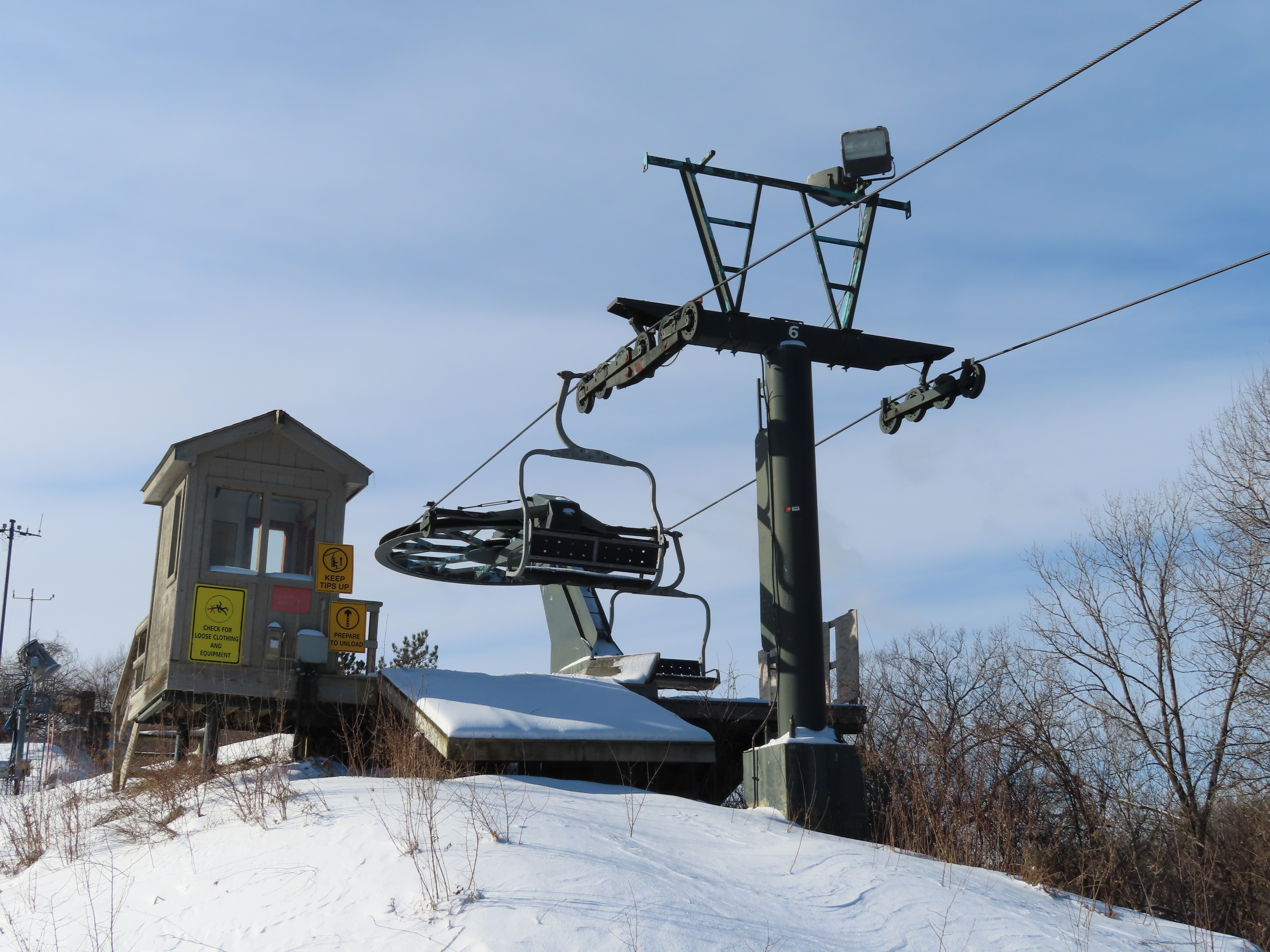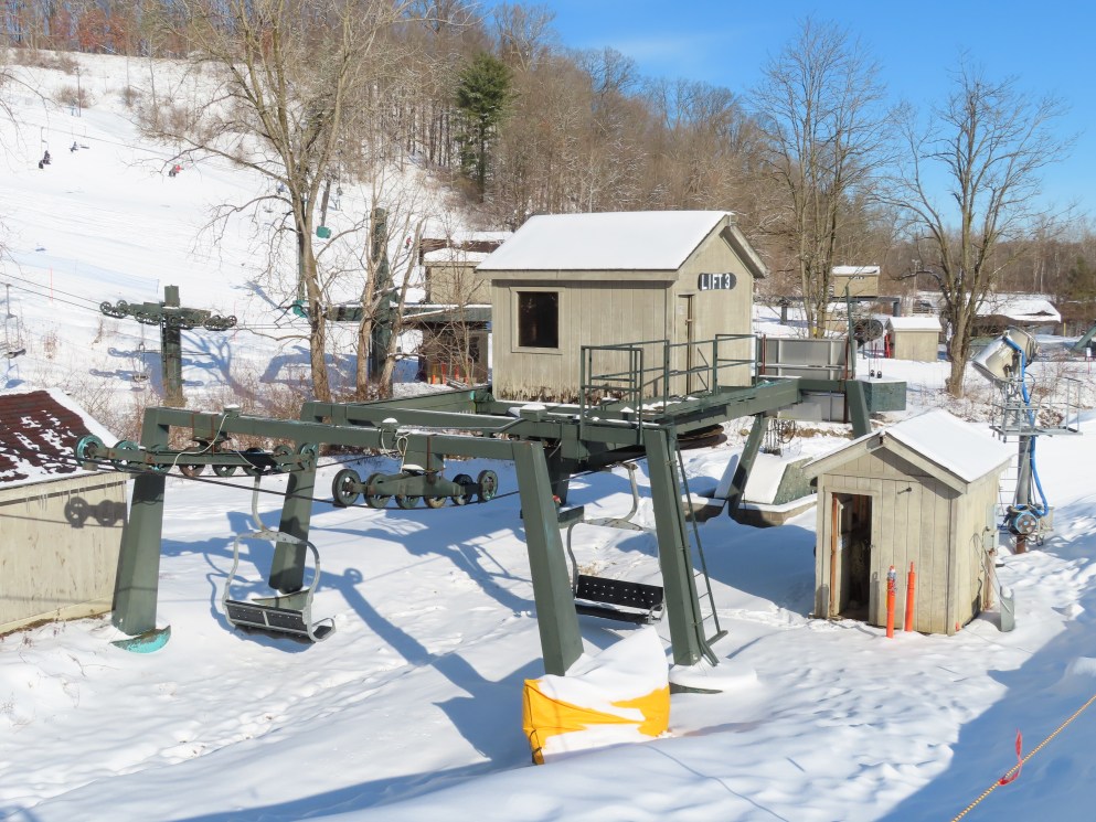 The upper terminal appears to have been moved downhill sometime around 2001 or 2002, shortening the lift from its original stats (currently under 1000 ft long). I’m not sure when the Partek carriers were installed, but likely within the same few years as Lift 1.