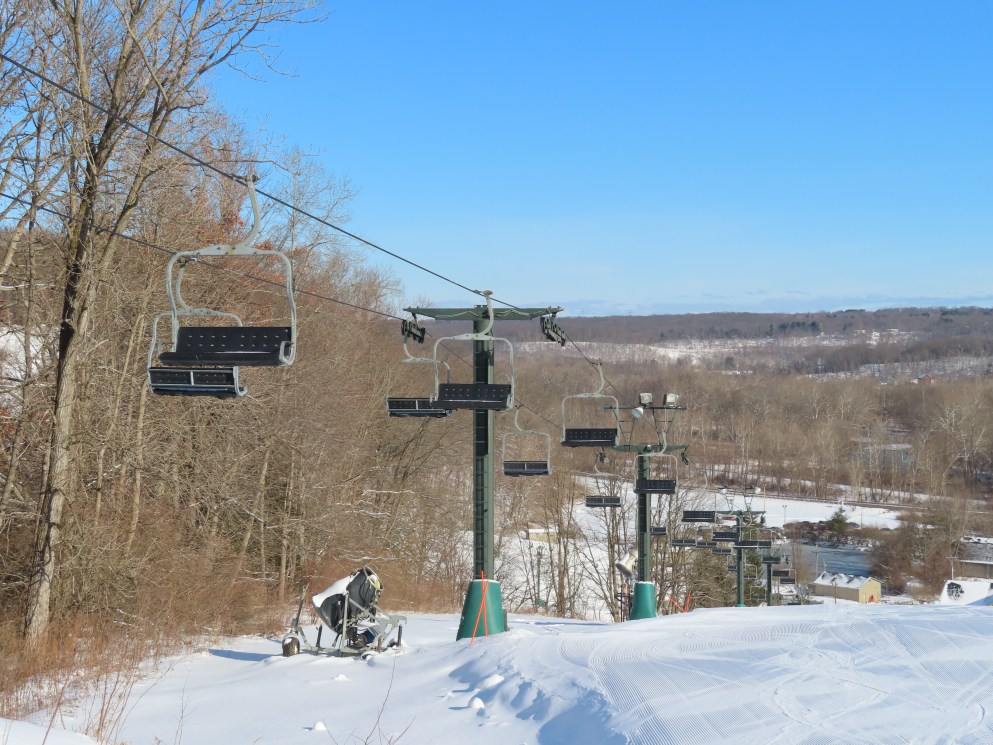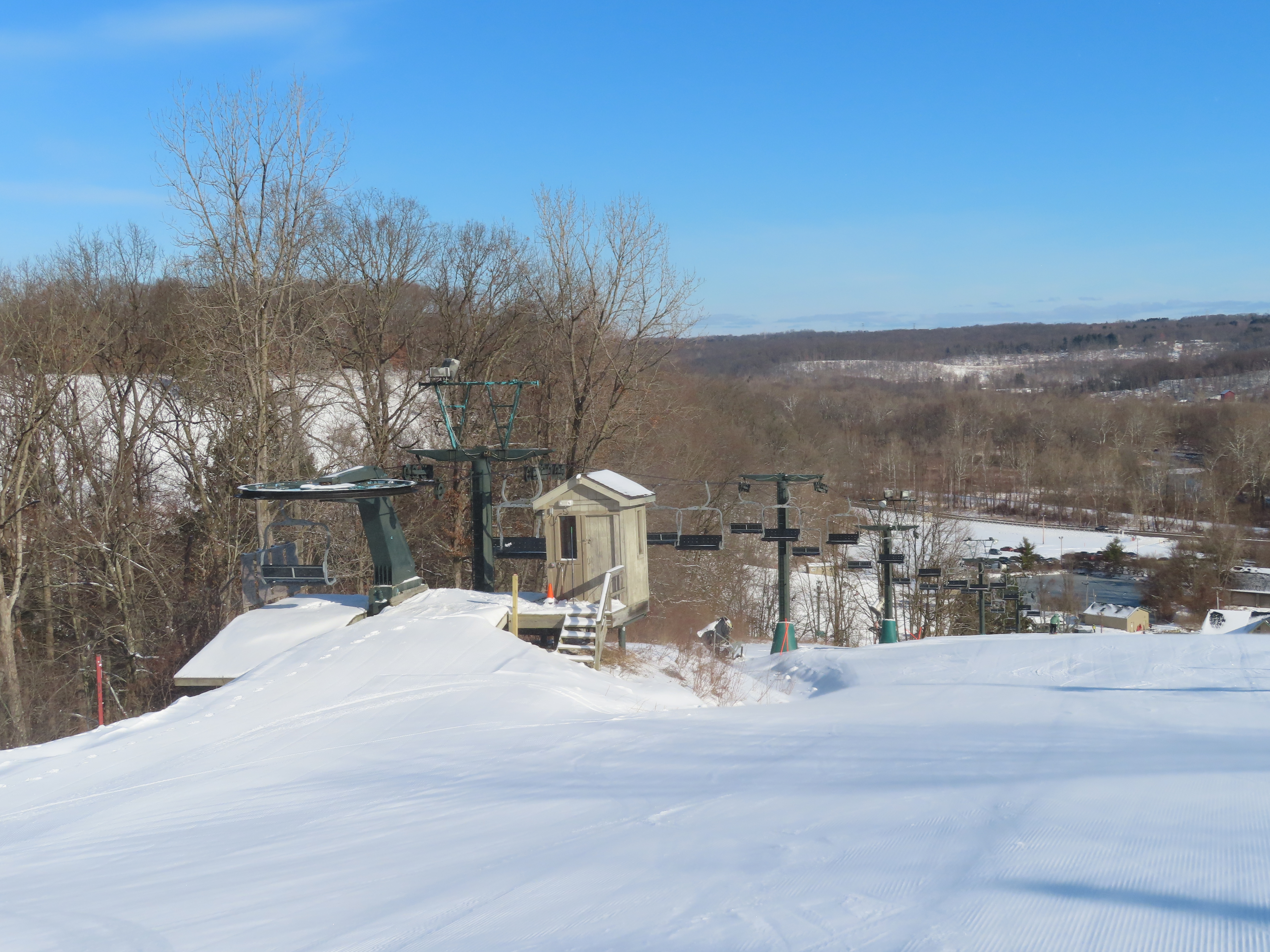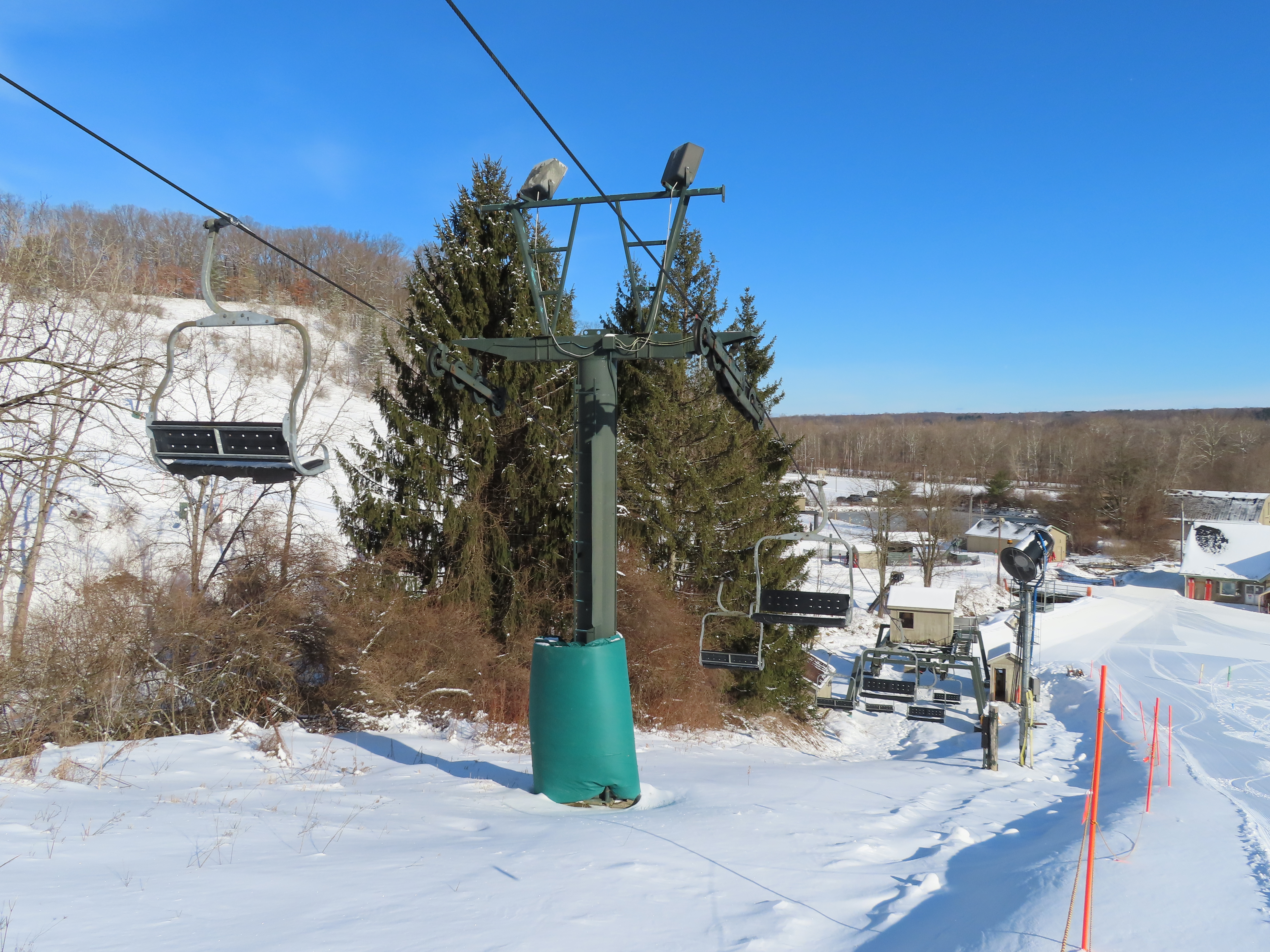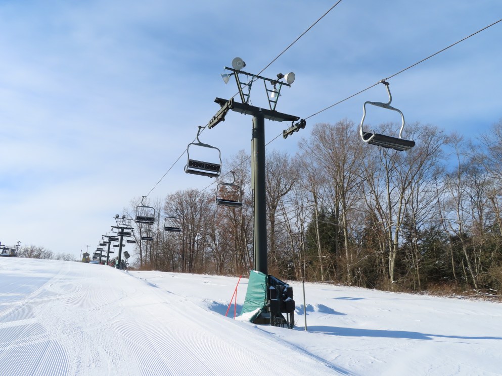 The upper terminal appears to have been moved downhill sometime around 2001 or 2002, shortening the lift from its original stats (currently under 1000 ft long). I’m not sure when the Partek carriers were installed, but likely within the same few years as Lift 1.