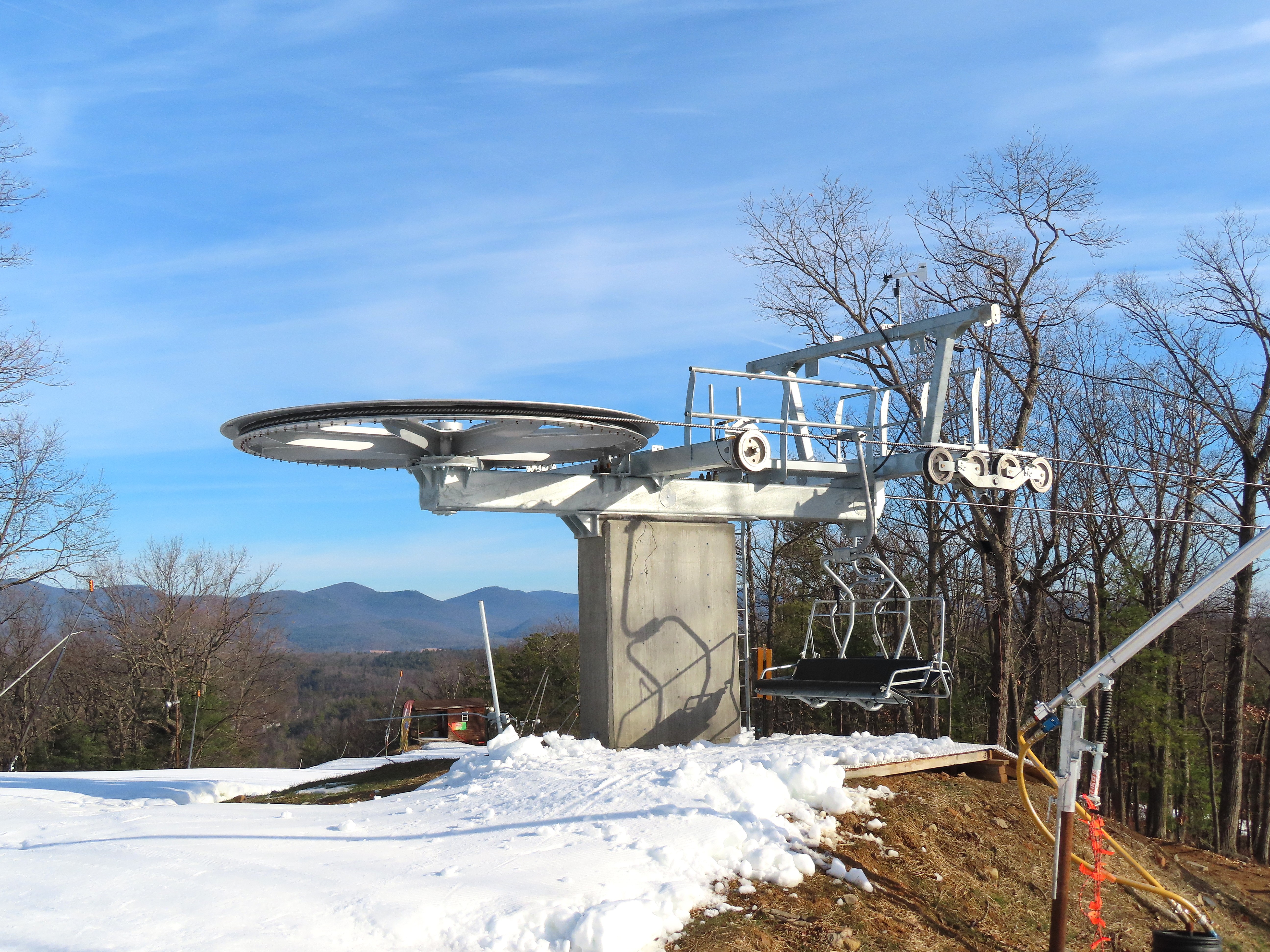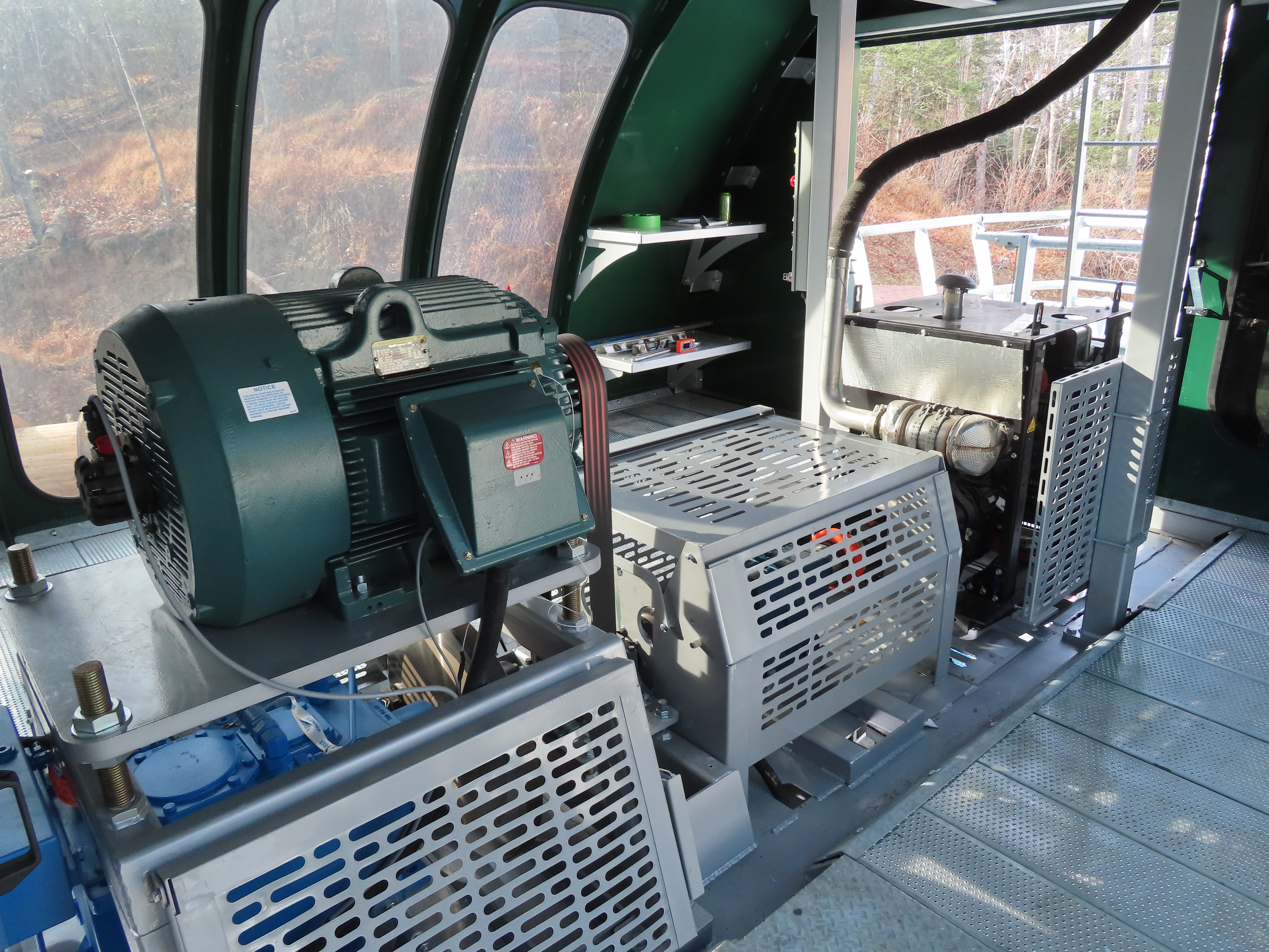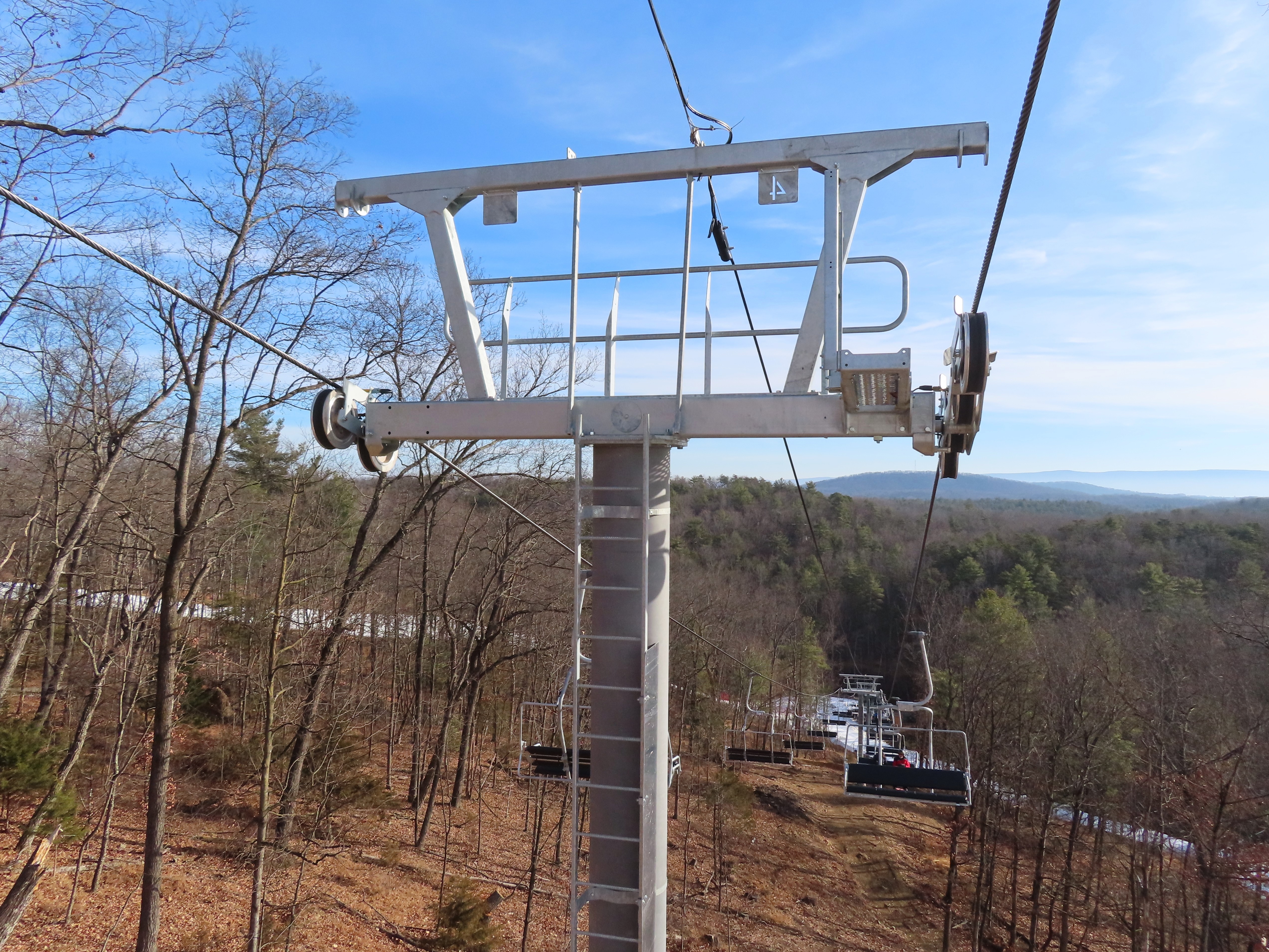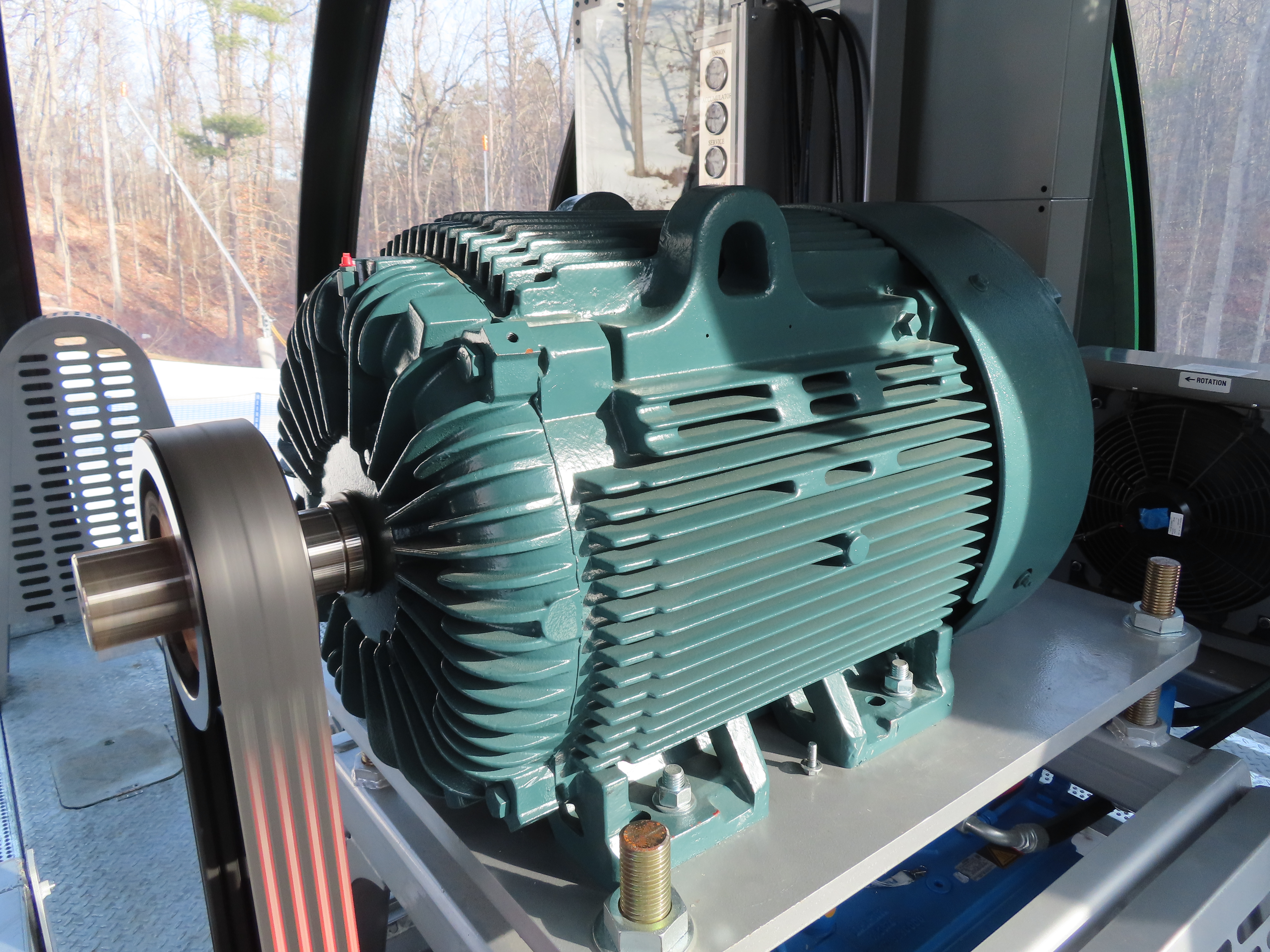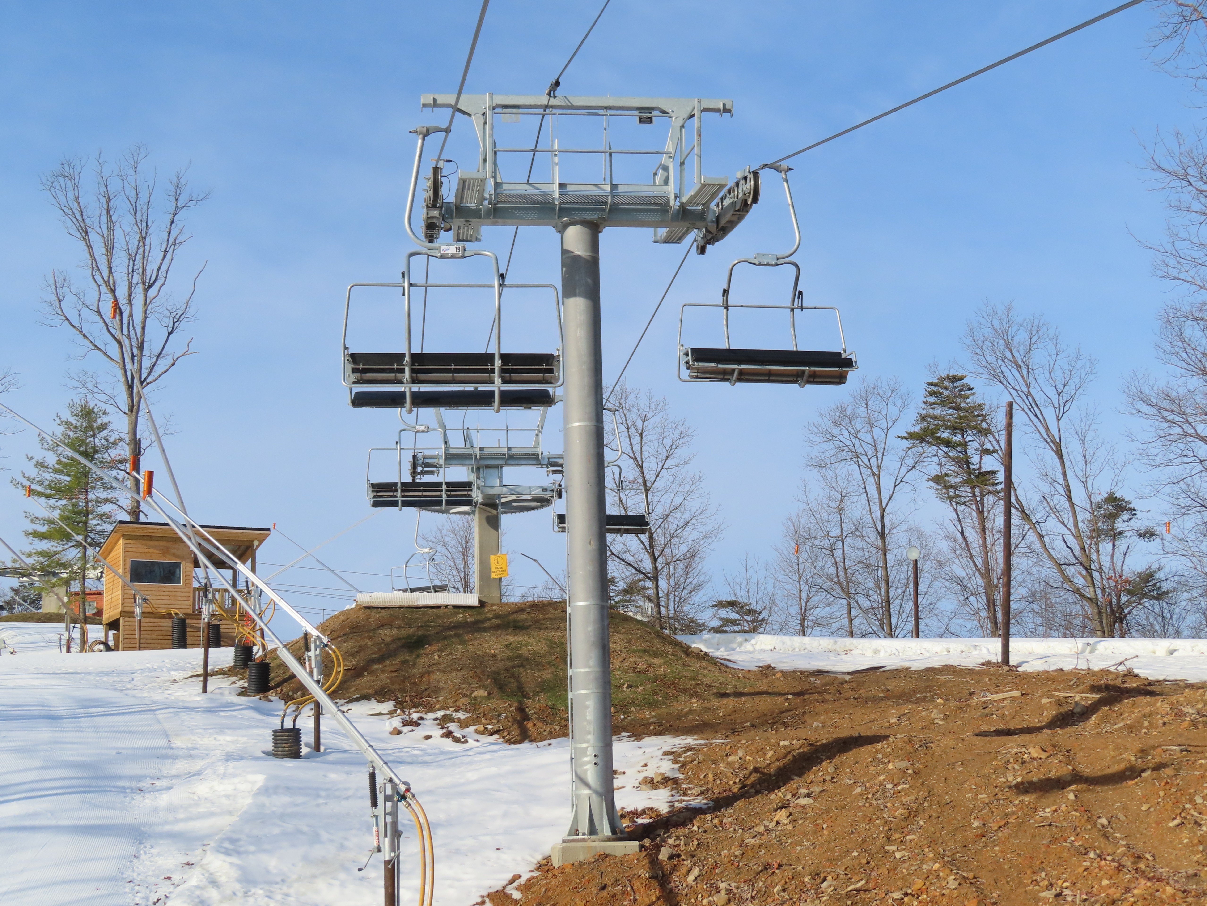 This lift became Bryce’s third Skytrac in 2025 and services a backside expansion.The top terminal sits on a ridge near two other Peak return stations.Short lift line see from tower 5.Middle section of the line.Both ski and bike trails run underneath.View arriving at the top of the new trails.Skytrac Monarch drive-tension station.Tower 5.The top of the lift with HKD snowmaking.Bottom part of the lift line.Skytrac quad chair without foot rests.View riding up the middle part of the line.Tower 4 crossarm.Computer display in the bottom operator buiding.Drive desk controls.Outside control pedestal.View from the motor room porch.Motor room controls.AC electric motor.The drive train.Tension and brake hydraulic cabinet.Loading area.Chairs passing at tower 5.Side view of the drive station.Tower 2.Loading area and motor room seen from above.Riding up the middle part of the line.Lift overview.The top operator house sits some distance away from the bullwheel with a great view.Outside controls at the return.View from the top.Three Skytrac returns.