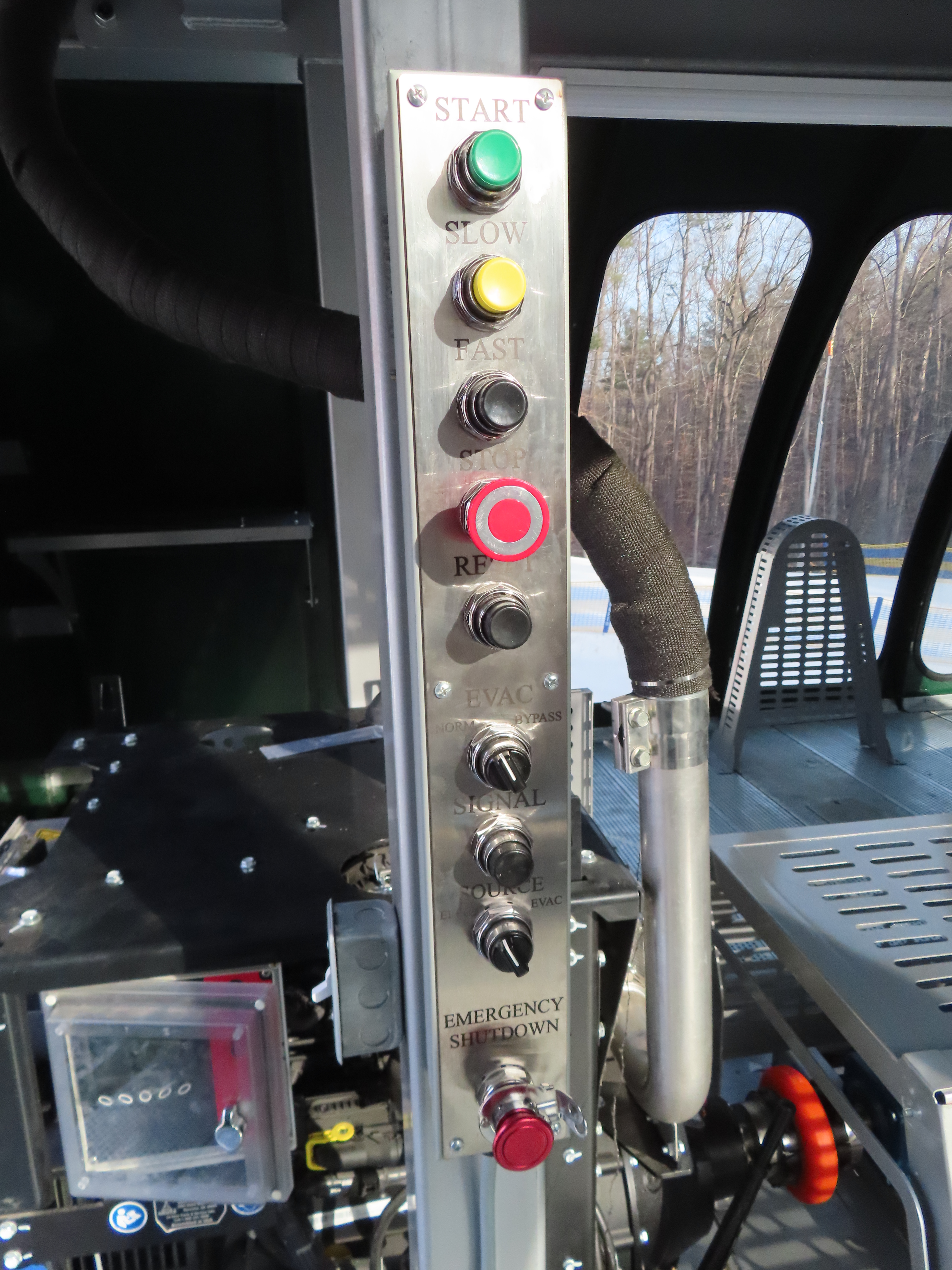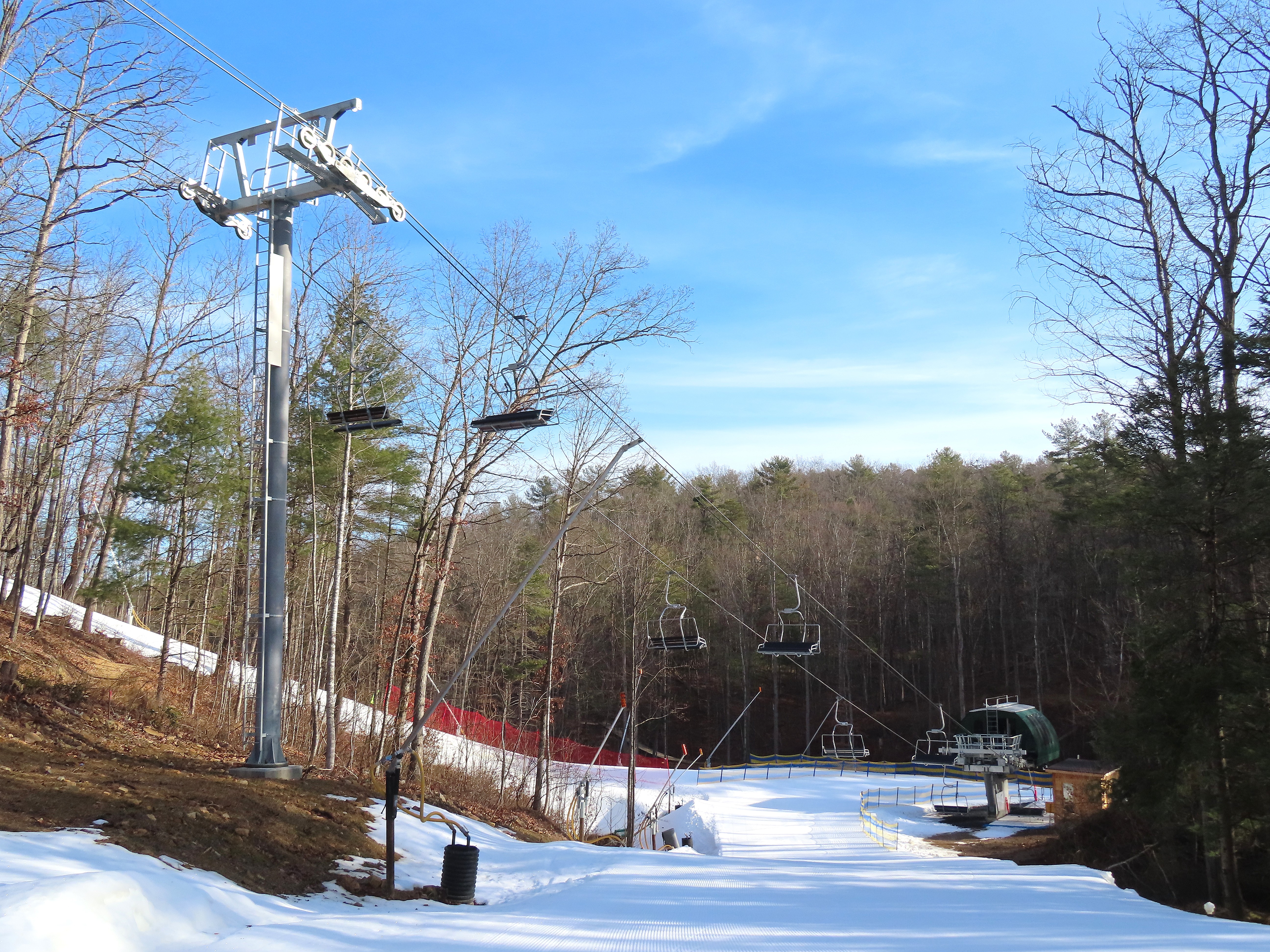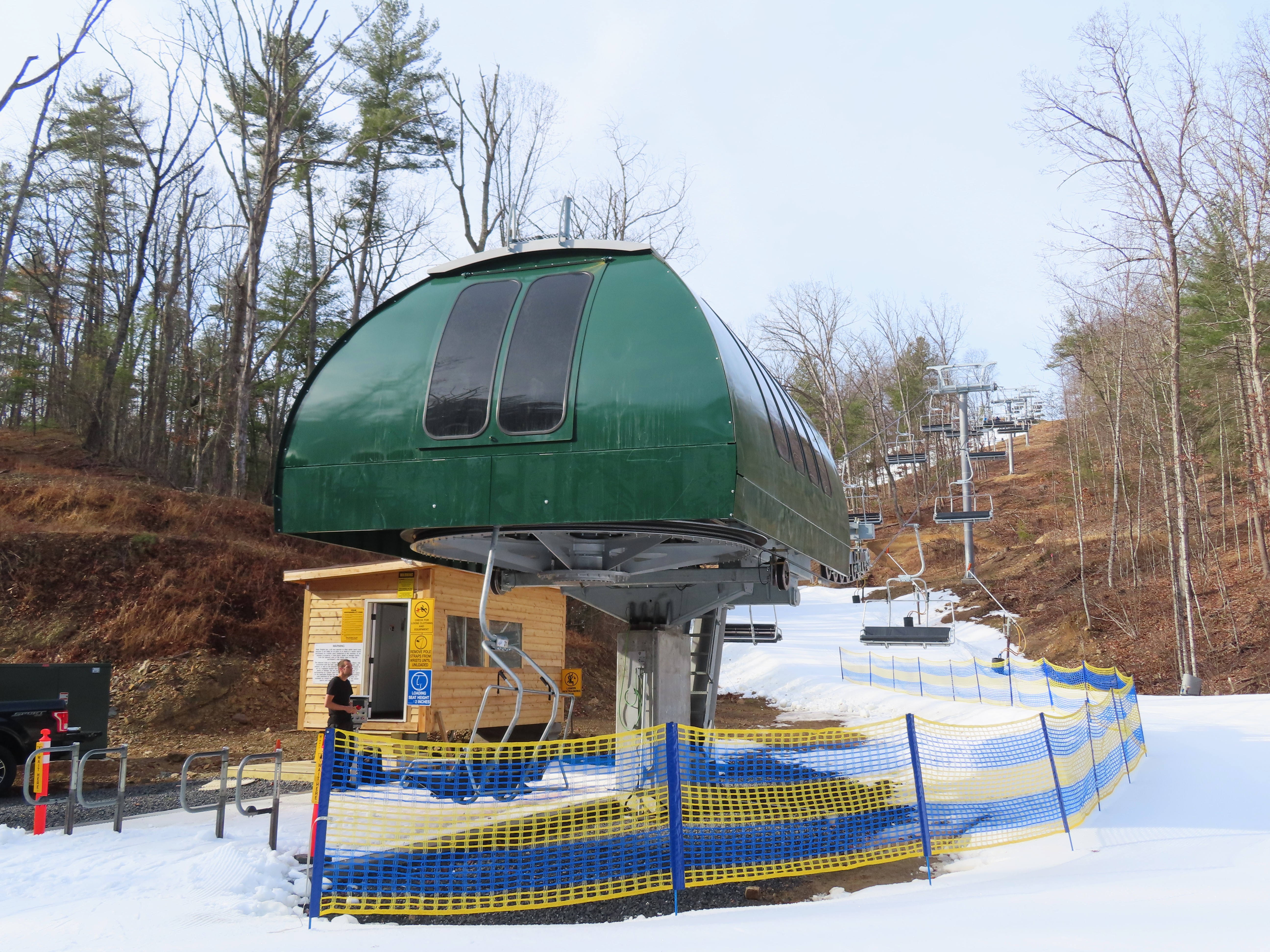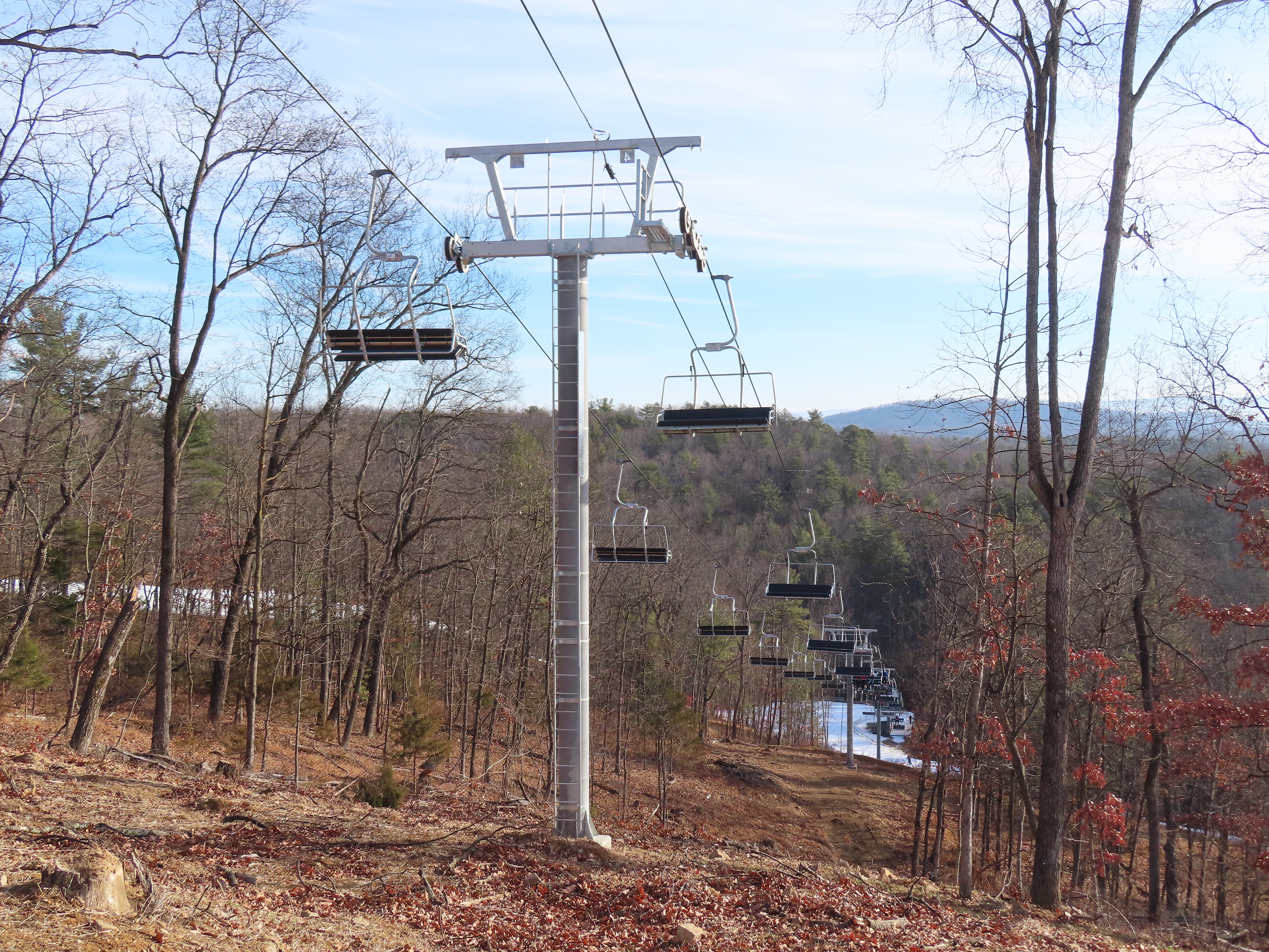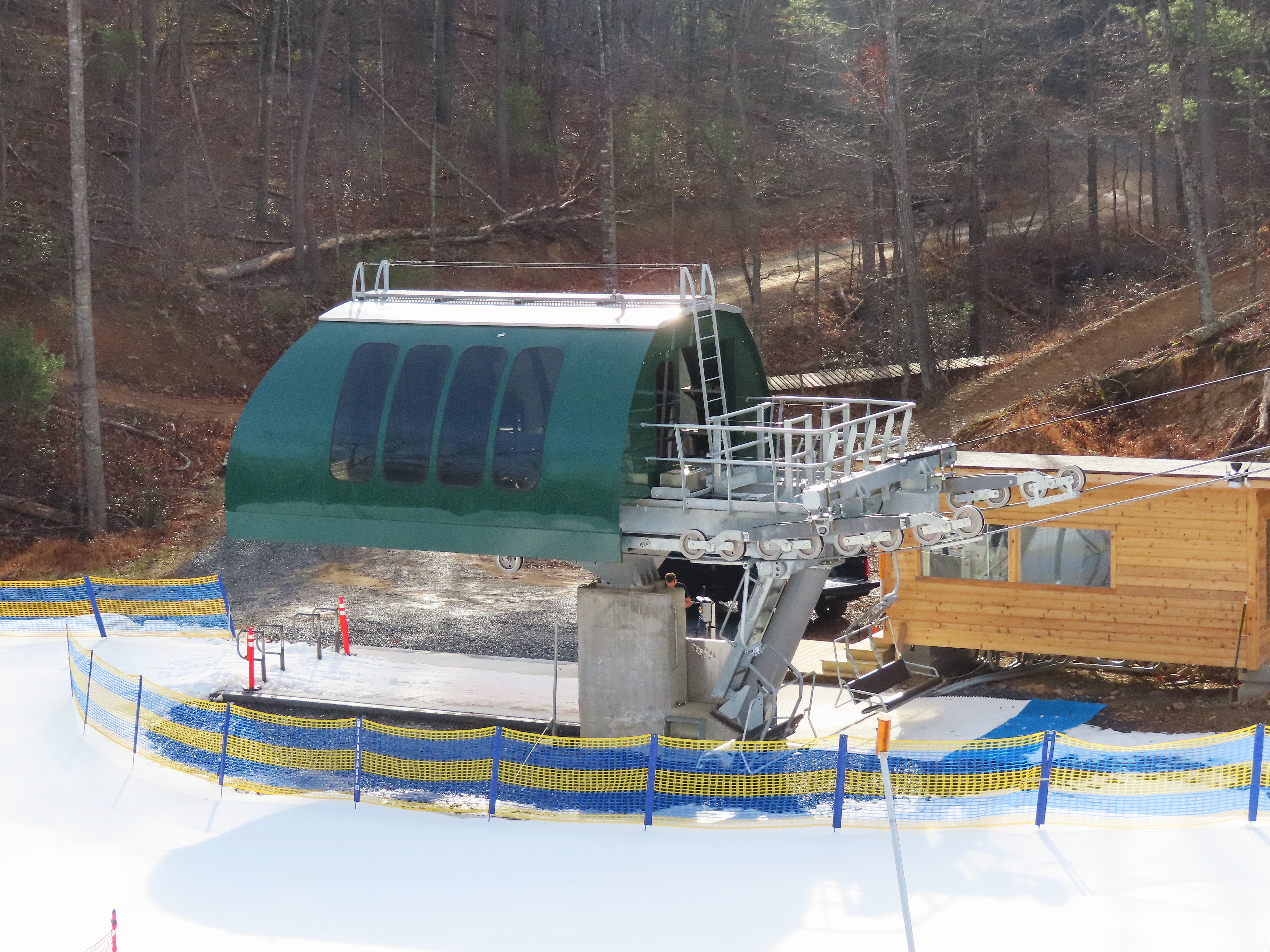 This lift became Bryce’s third Skytrac in 2025 and services a backside expansion.The top terminal sits on a ridge near two other Peak return stations.Short lift line see from tower 5.Middle section of the line.Both ski and bike trails run underneath.View arriving at the top of the new trails.Skytrac Monarch drive-tension station.Tower 5.The top of the lift with HKD snowmaking.Bottom part of the lift line.Skytrac quad chair without foot rests.View riding up the middle part of the line.Tower 4 crossarm.Computer display in the bottom operator buiding.Drive desk controls.Outside control pedestal.View from the motor room porch.Motor room controls.AC electric motor.The drive train.Tension and brake hydraulic cabinet.Loading area.Chairs passing at tower 5.Side view of the drive station.Tower 2.Loading area and motor room seen from above.Riding up the middle part of the line.Lift overview.The top operator house sits some distance away from the bullwheel with a great view.Outside controls at the return.View from the top.Three Skytrac returns.