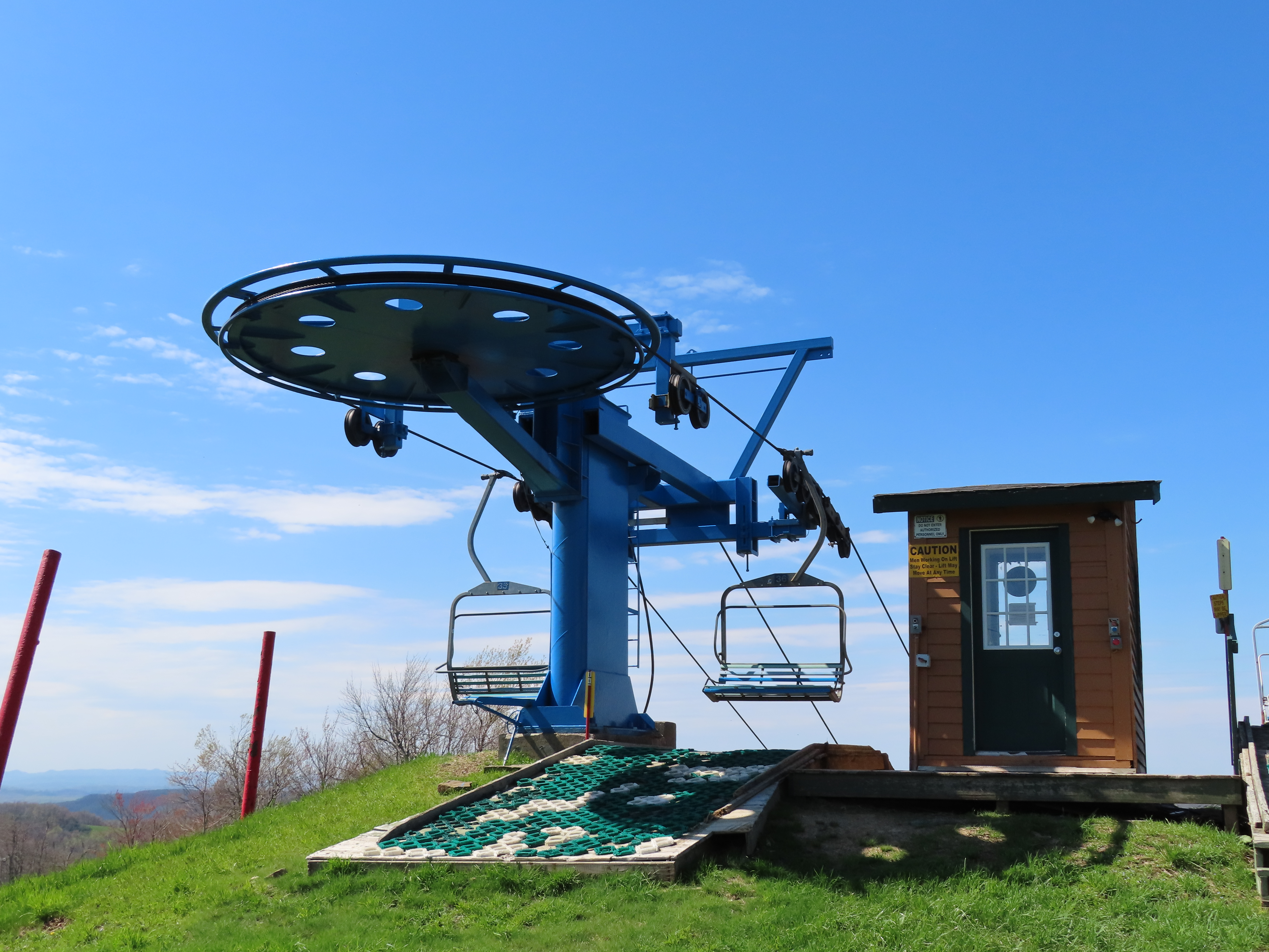 3 – Winterplace, WV The original summit lift at Winterplace has the biggest vertical rise on the mountain. Loading area and motor room. View up the line. Bottom station overview. View down the line. Unloading area. Side view of the top station next to Lift 9. Share this: Email a link to a friend (Opens in new window) Email Share on X (Opens in new window) X Share on Facebook (Opens in new window) Facebook Like Loading...