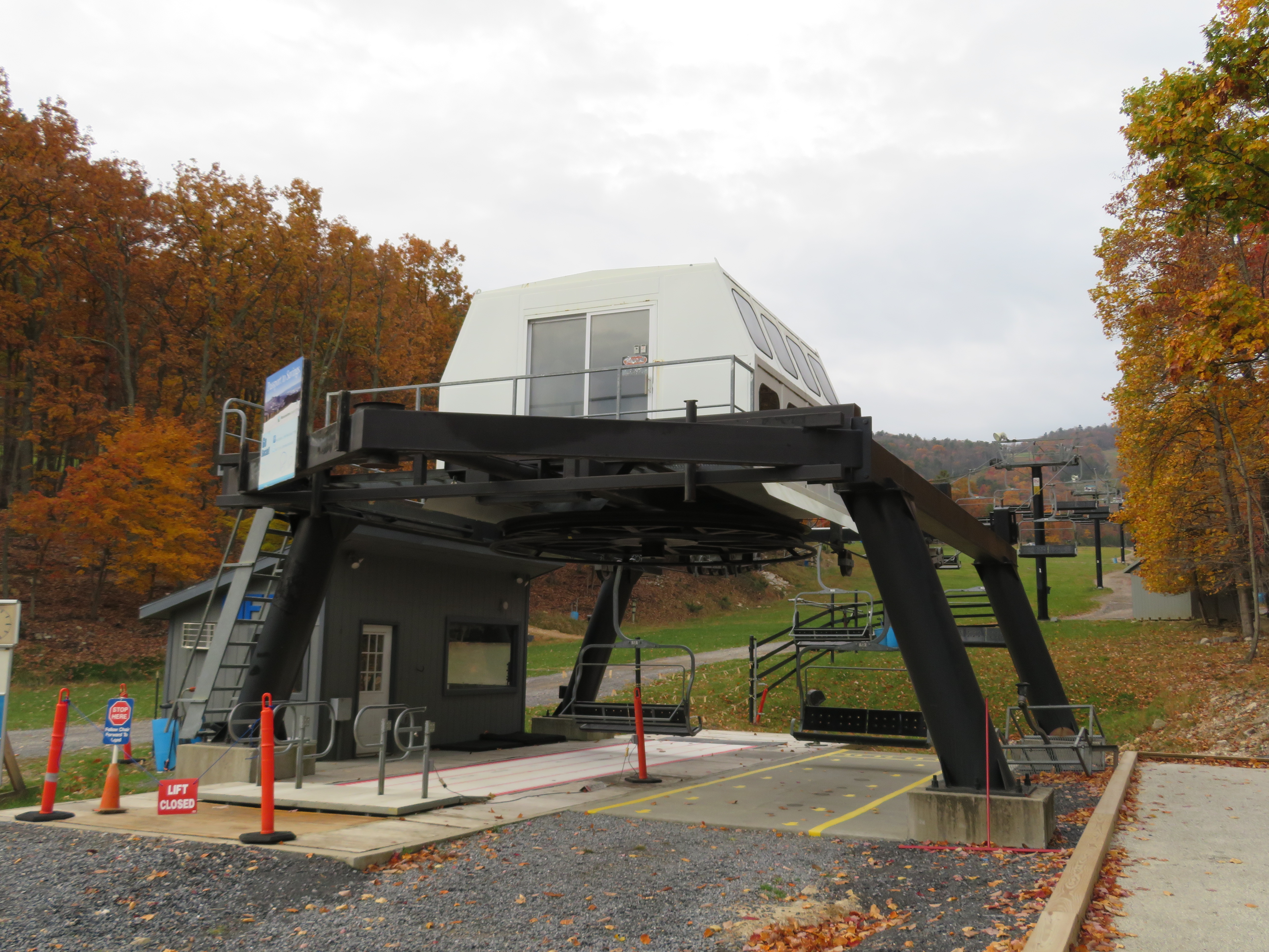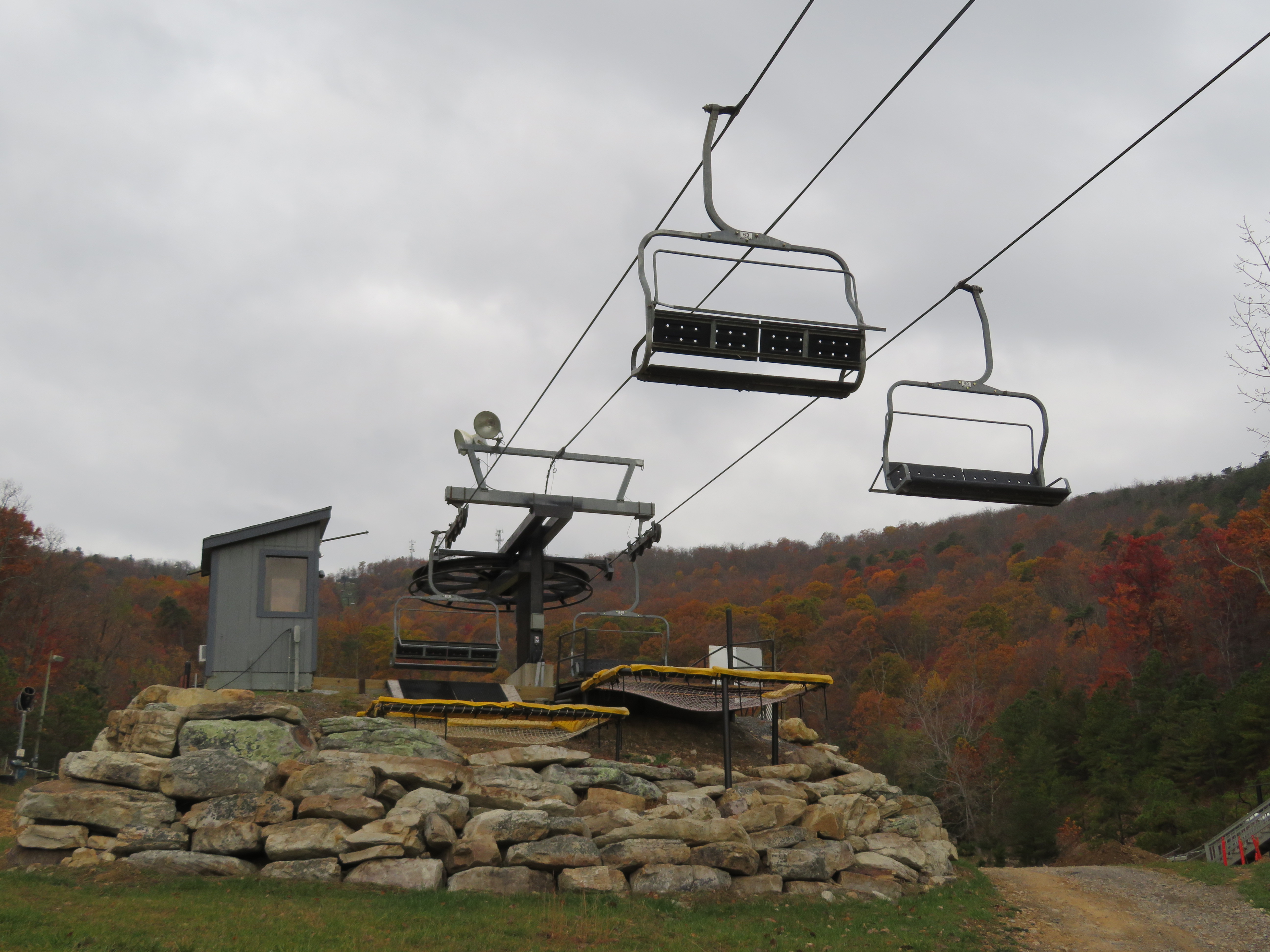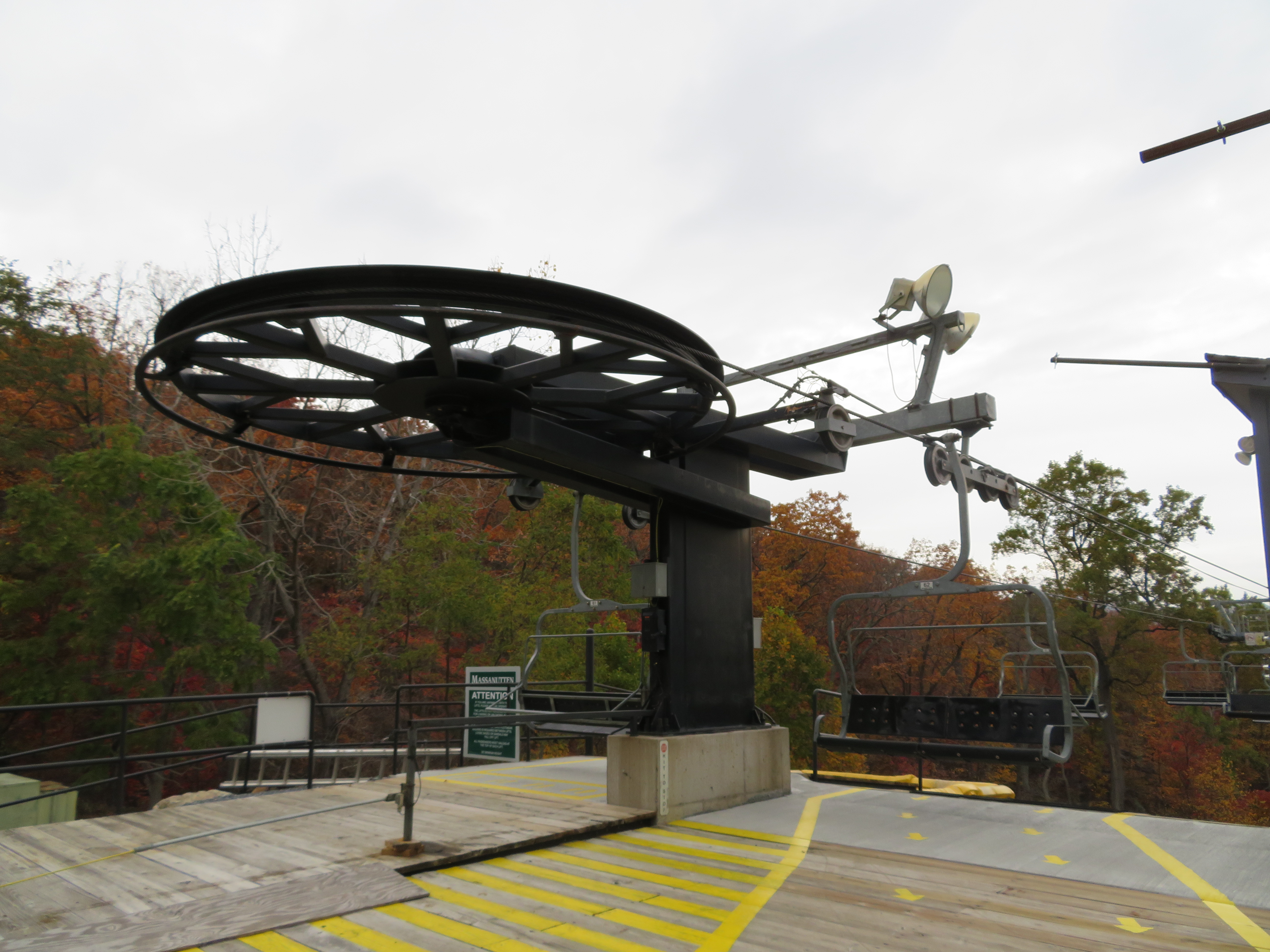 Creekside #4 – Massanutten, VA This Partek quad chair replaced an older Borvig double. The bottom station has a loading carpet. Loading area. The lift line is relatively flat. View down the lift line. Top station. Snowflake bullwheel. Lift overview. Share this: Click to email a link to a friend (Opens in new window) Email Click to share on X (Opens in new window) X Click to share on Facebook (Opens in new window) Facebook Like Loading...