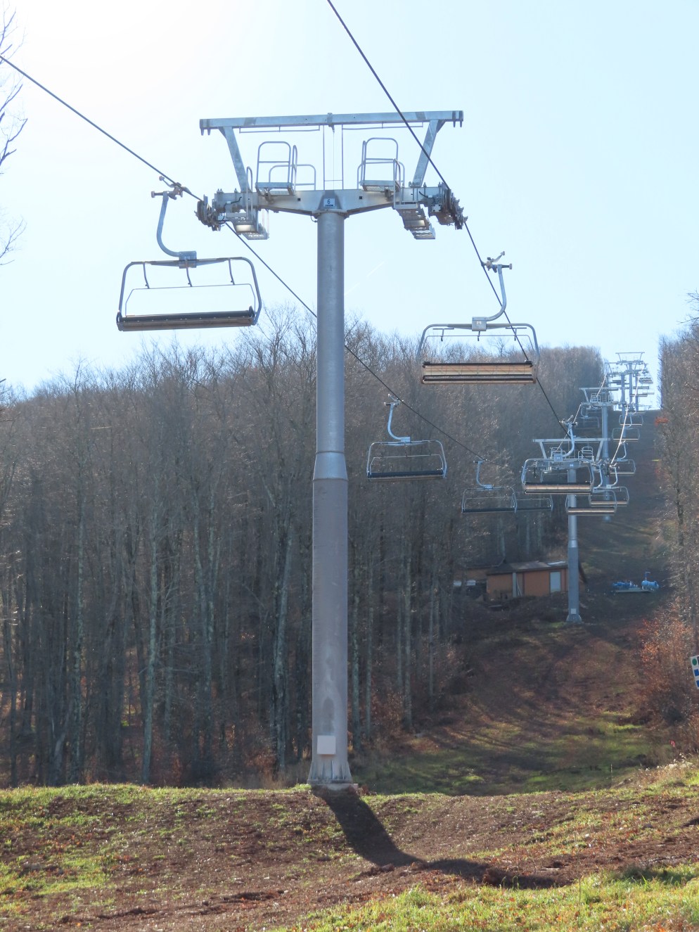 This is the flagship lift at the new Timberline Mountain.Loading area with queueing gates.Looking up the lift line.Tower with combination assemblies.Upper part of the lift line.Looking down the line.Uni-G top terminal.Unloading area.This is the return station.Tower 12.Doppelmayr operator house.EJ chair with DT grip.Upper terminal with storm doors lowered.Tower 9.Tower 5.View up at T6.Base area.Another view of the line.Tower 1 is right next to the bottom terminal.Another view of the drive station.Drive station side view.Lift overview.Station with new snowmaking nearby.