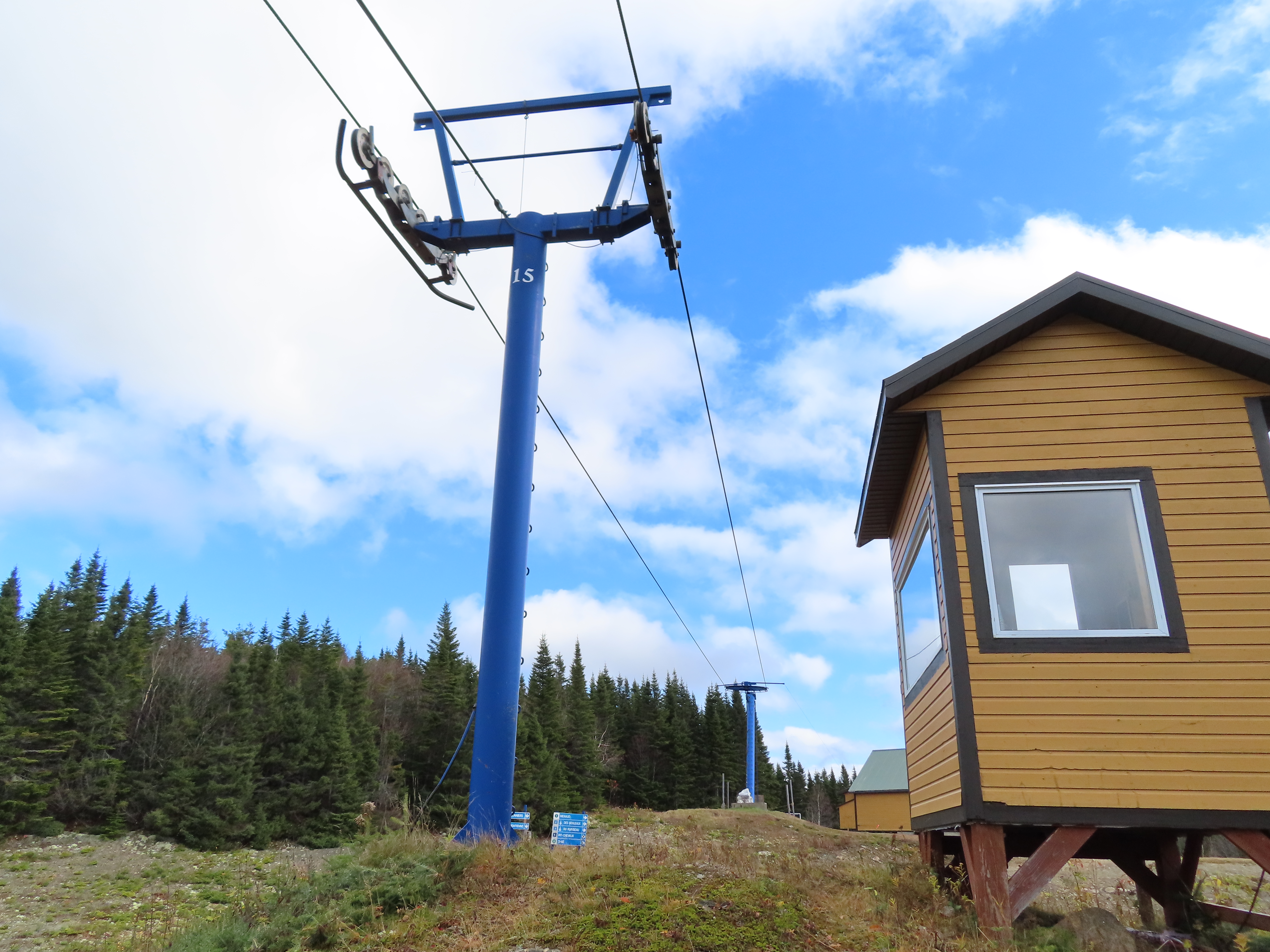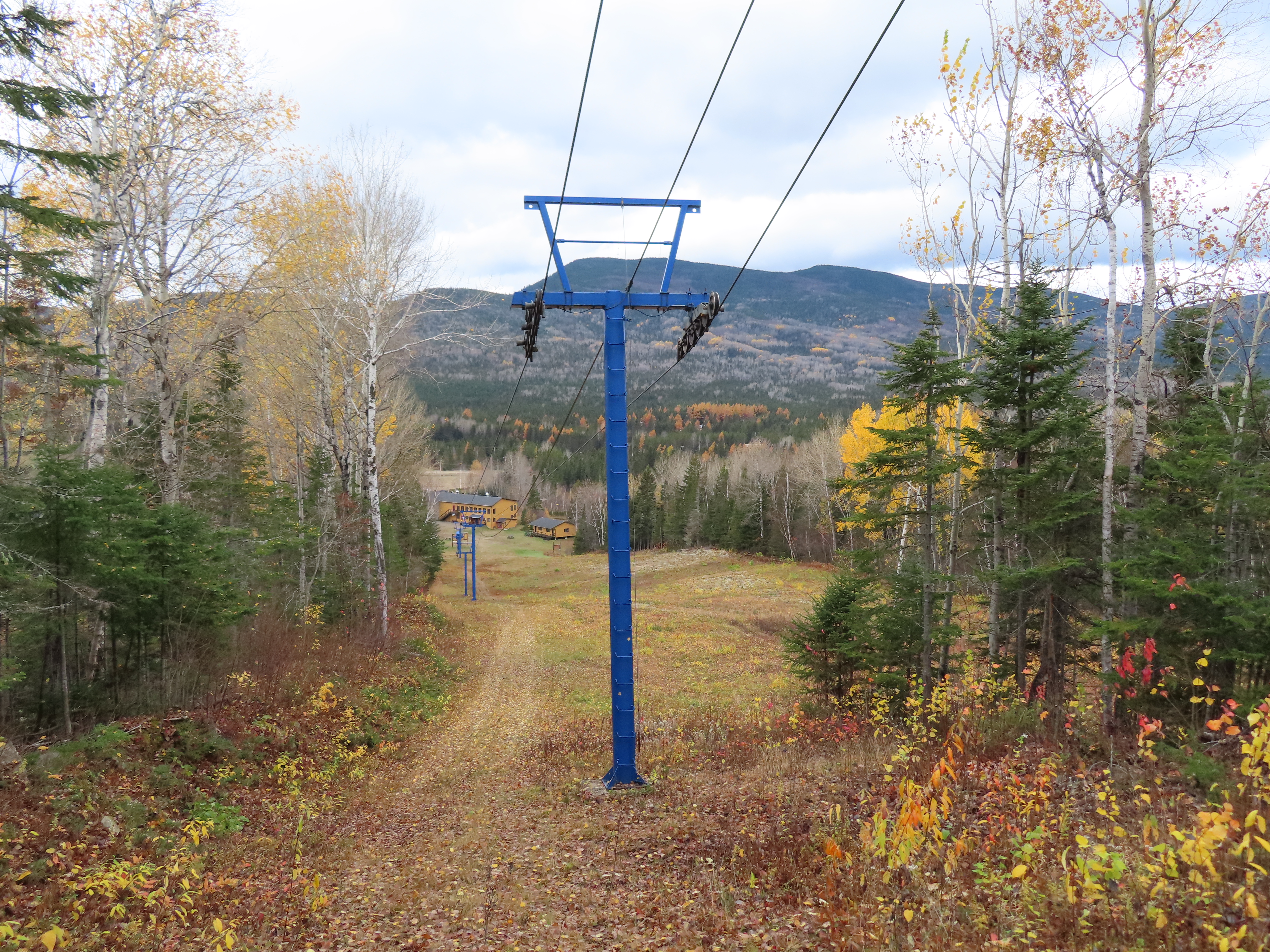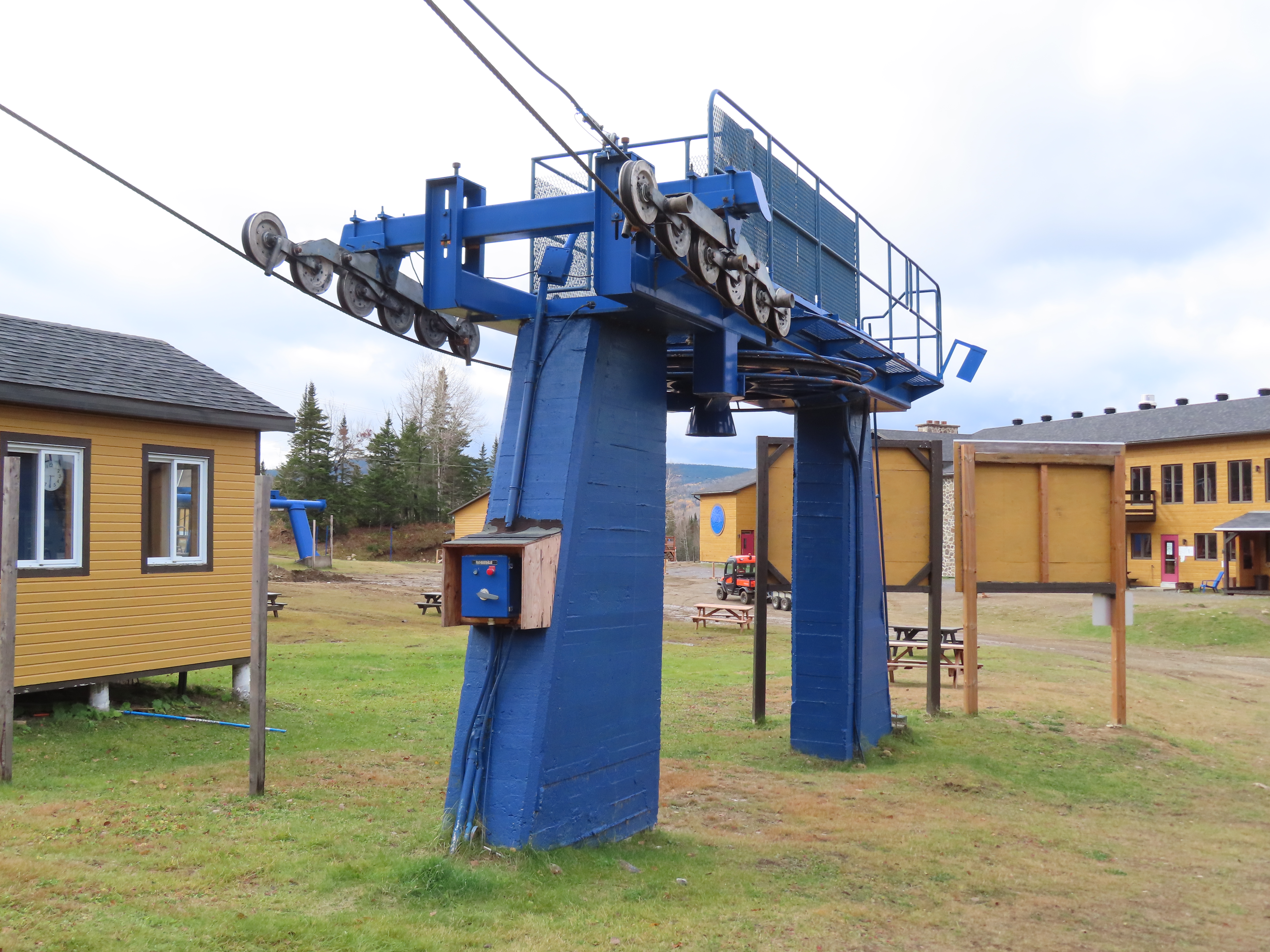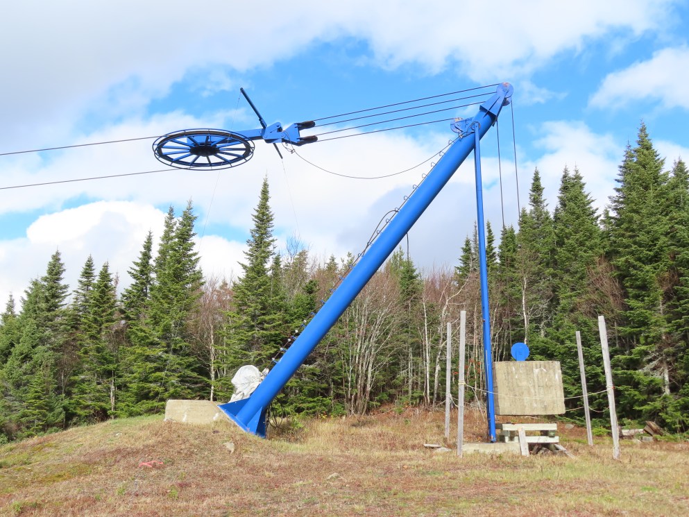 This large Samson T-Bar runs from base to summit alongside a Samson quad.The lift line.Unique bottom terminal structure.Top station with floating bullwheel.Unloading point.Tower 15.Breakover towers.Tower 13.View down the line.Middle section of the lift line.One of a few hold down towers.Towers near the base.T3.View up the middle of the line.