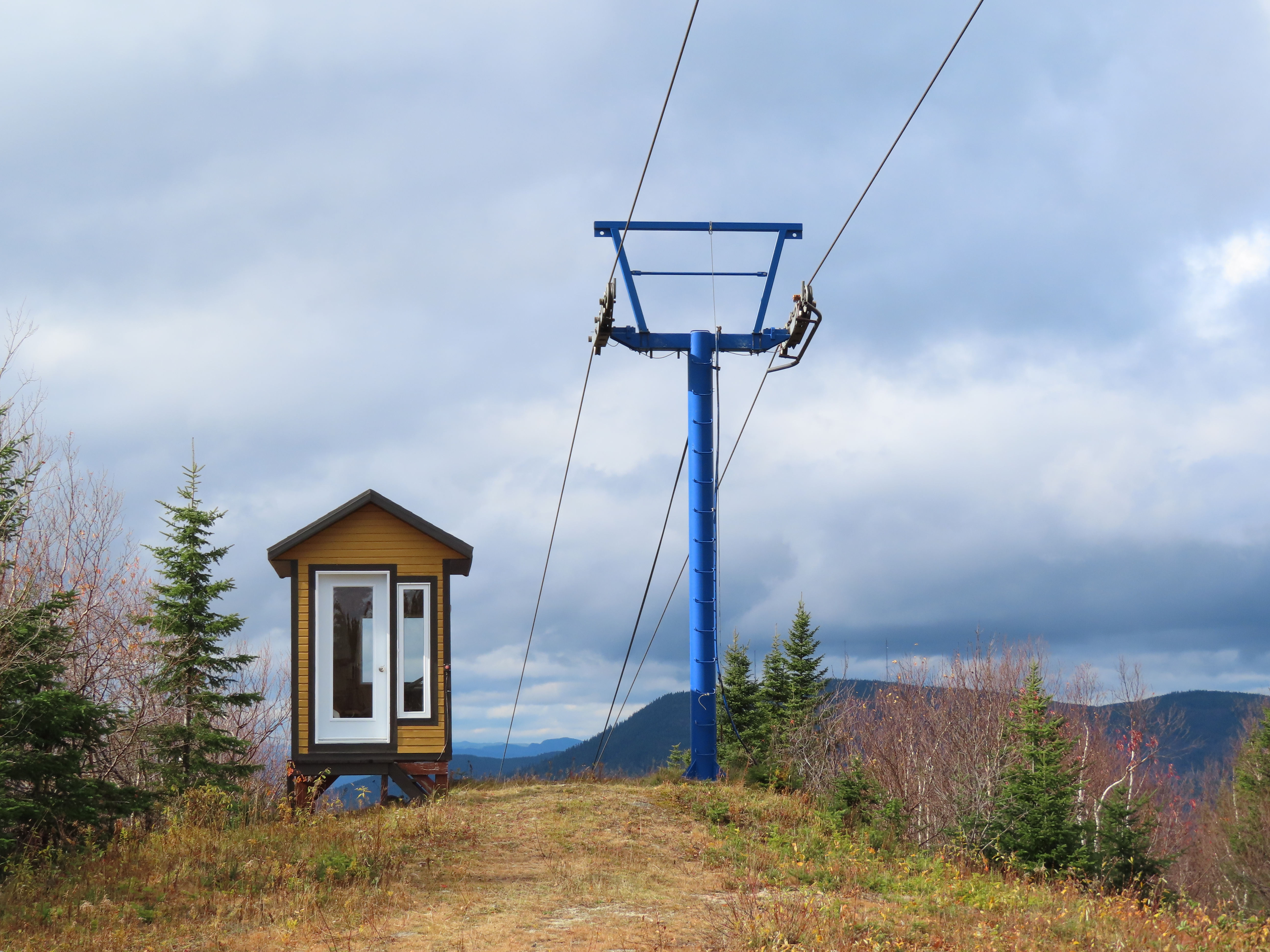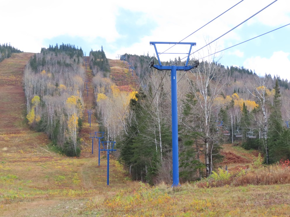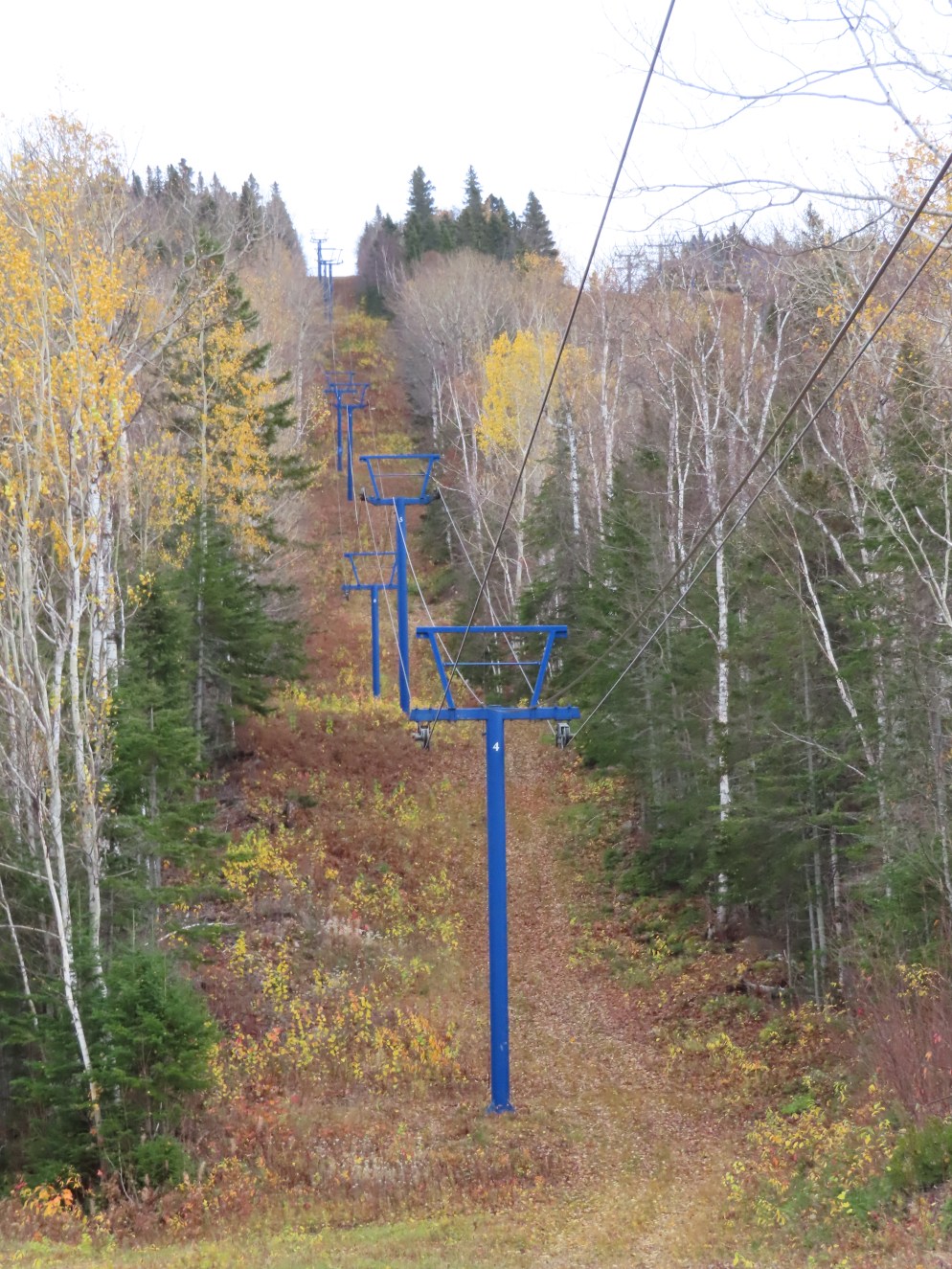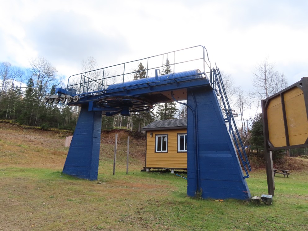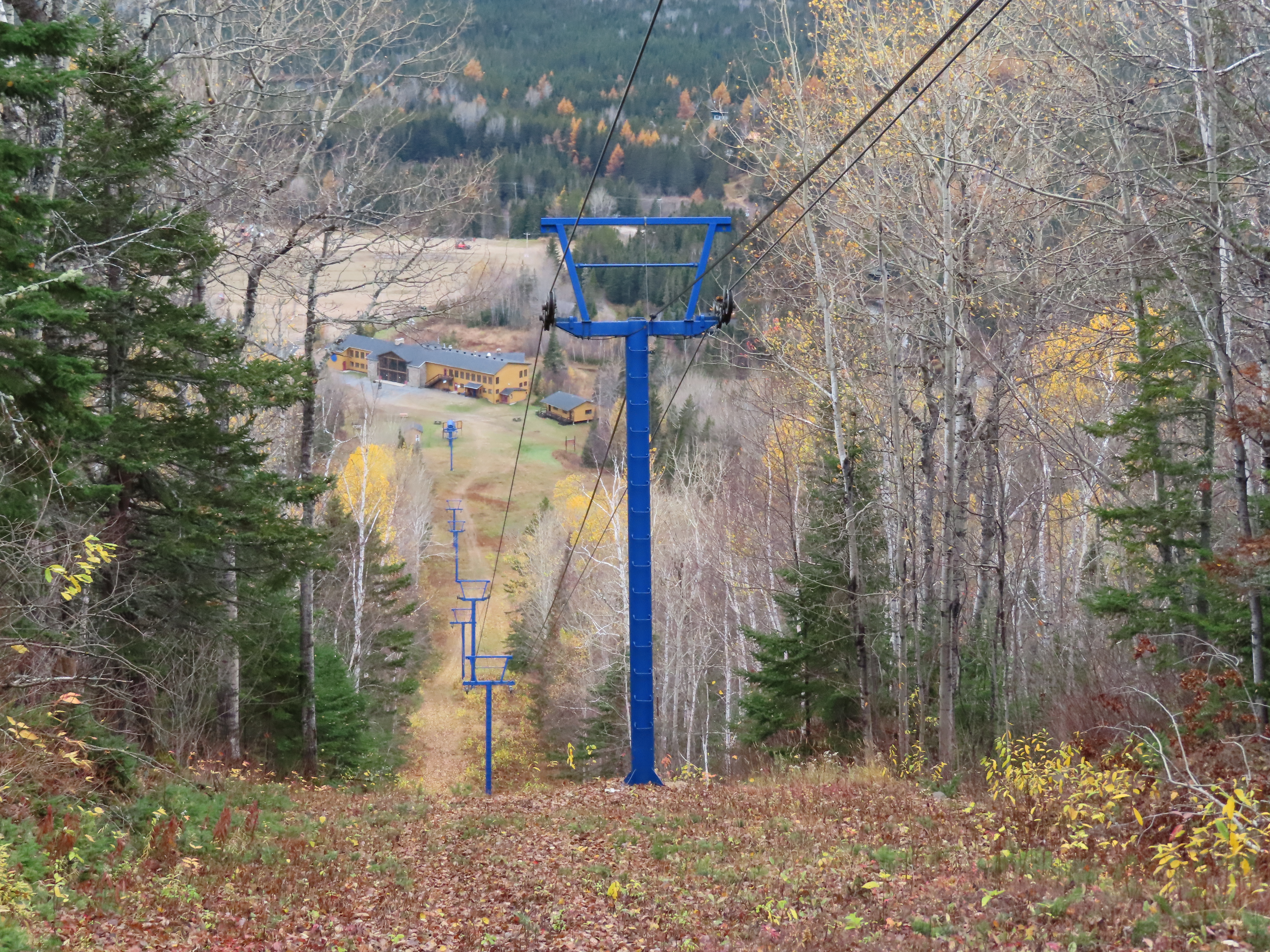 This large Samson T-Bar runs from base to summit alongside a Samson quad.The lift line.Unique bottom terminal structure.Top station with floating bullwheel.Unloading point.Tower 15.Breakover towers.Tower 13.View down the line.Middle section of the lift line.One of a few hold down towers.Towers near the base.T3.View up the middle of the line.