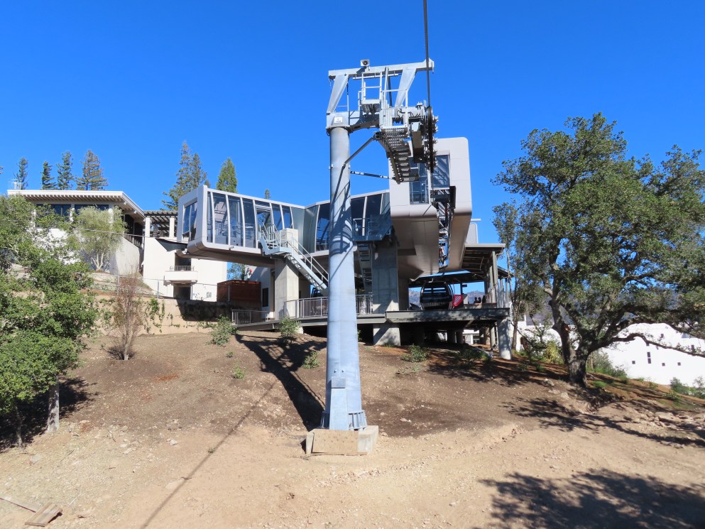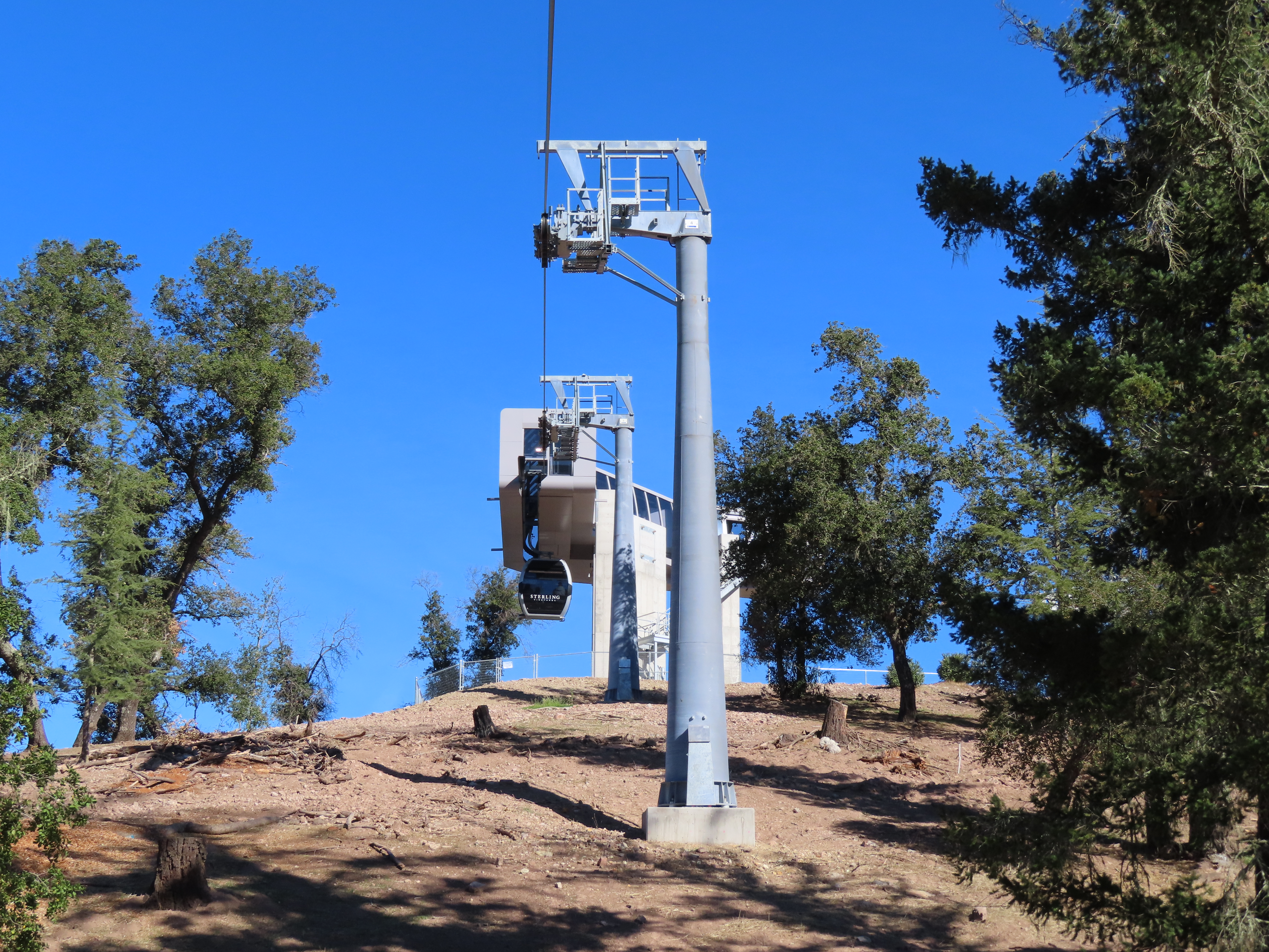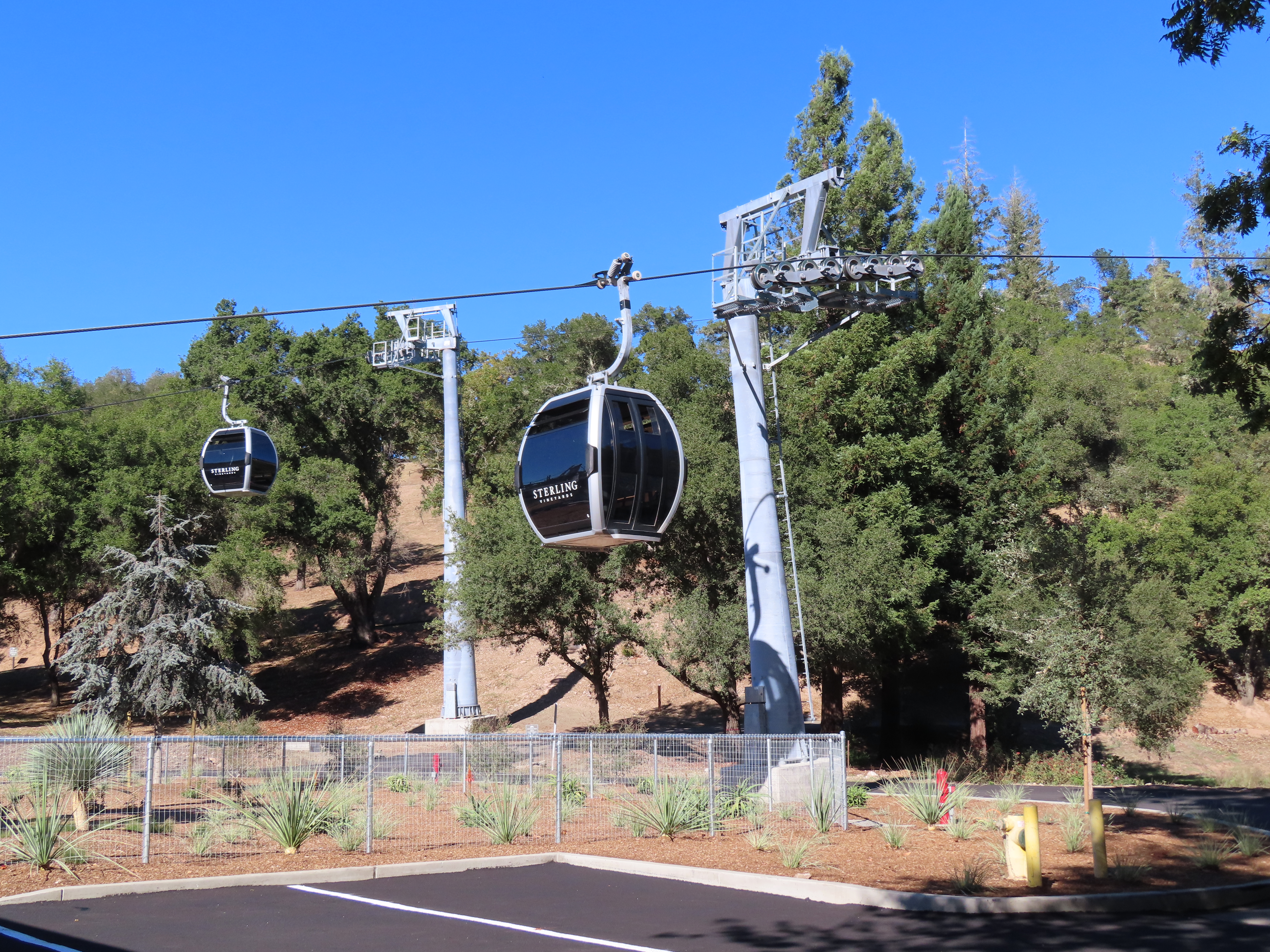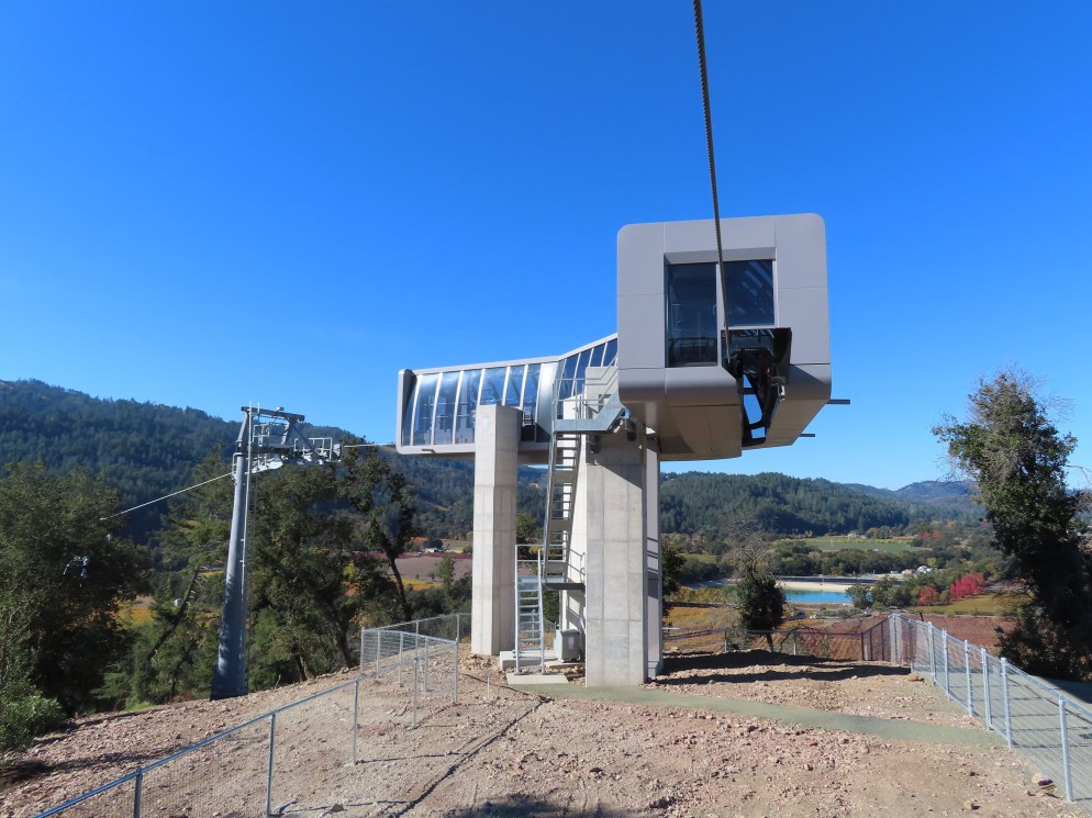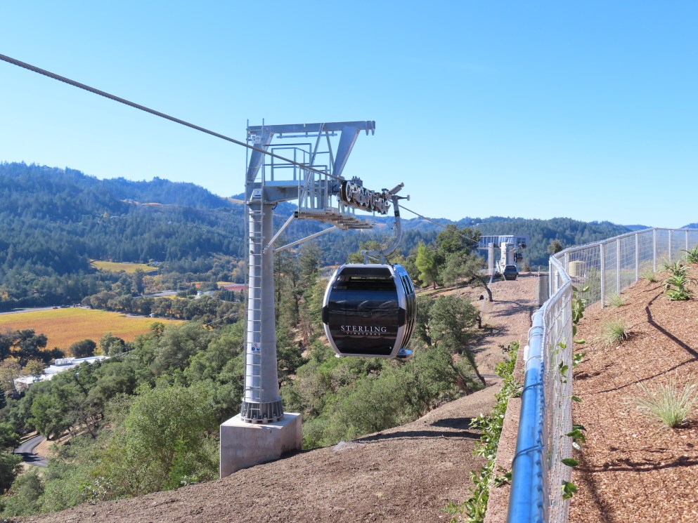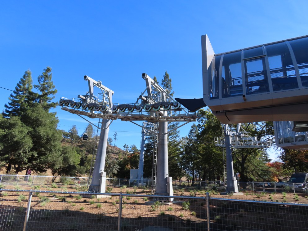 This D-Line gondola replaced an older four person gondola in a similar triangle alignment.Visitors load at the bottom station and travel up to tasting rooms and a gift shop with an intermediate station along the way.Tower 3.The first two towers at the drive station.All three stations are angled with cabins travelling one way.Tower 9, the tallest on the entire lift on the downhill portion of the line.Tower 11.Overview of the base station with small maintenance area.Tower 10.The loading area.An Omega V cabin in the bottom station.View departing the lower terminal.Bottom station seen from above.Towers 1, 2, 3 and 11 near the lower terminus.View riding up the first segment of the line.Nearing the first angle station and tower 5.View back down the lift line.Short middle section between the two non-drive stations.This station has no loading, unloading or operator.Short tower 6.View arriving at the wine tasting station.Doppelmayr Connect controls.Each station is wheelchair accessible, unlike the old gondola.Side view of a tower and Omega IV cabin.View along the ridge top.Another view of the unmanned station.Hilltop station with half towers.View of the gondola from the vineyard’s terrace.Upper station overview.Doppelmayr detachable equipment.Side view of a short D-Line station.Tower 7.Eight passenger cabin.Another view of the third station.Loading area at the summit.Doppelmayr USA operates and maintains the gondola on behalf of the vineyard.A cabin in the station.View leaving the ridge.Half station.Tower 8.Tower 9.View of the vineyard estate from the gondola.Arriving back at the base.Cabins traveling one way down the line.The lower station and towers.Another view of the drive station.Cabins traveling along two different segments.Unmanned terminal seen from the valley.