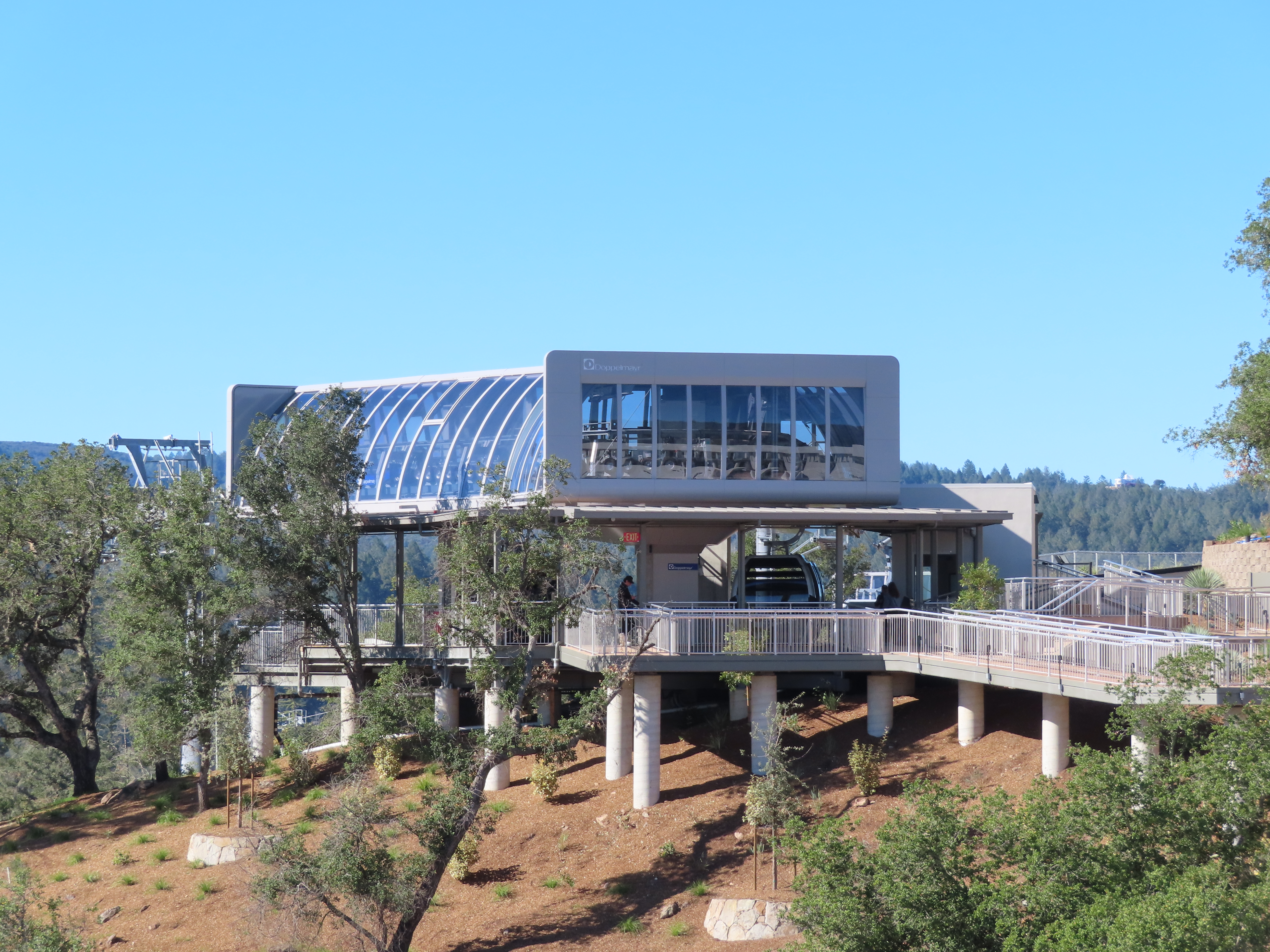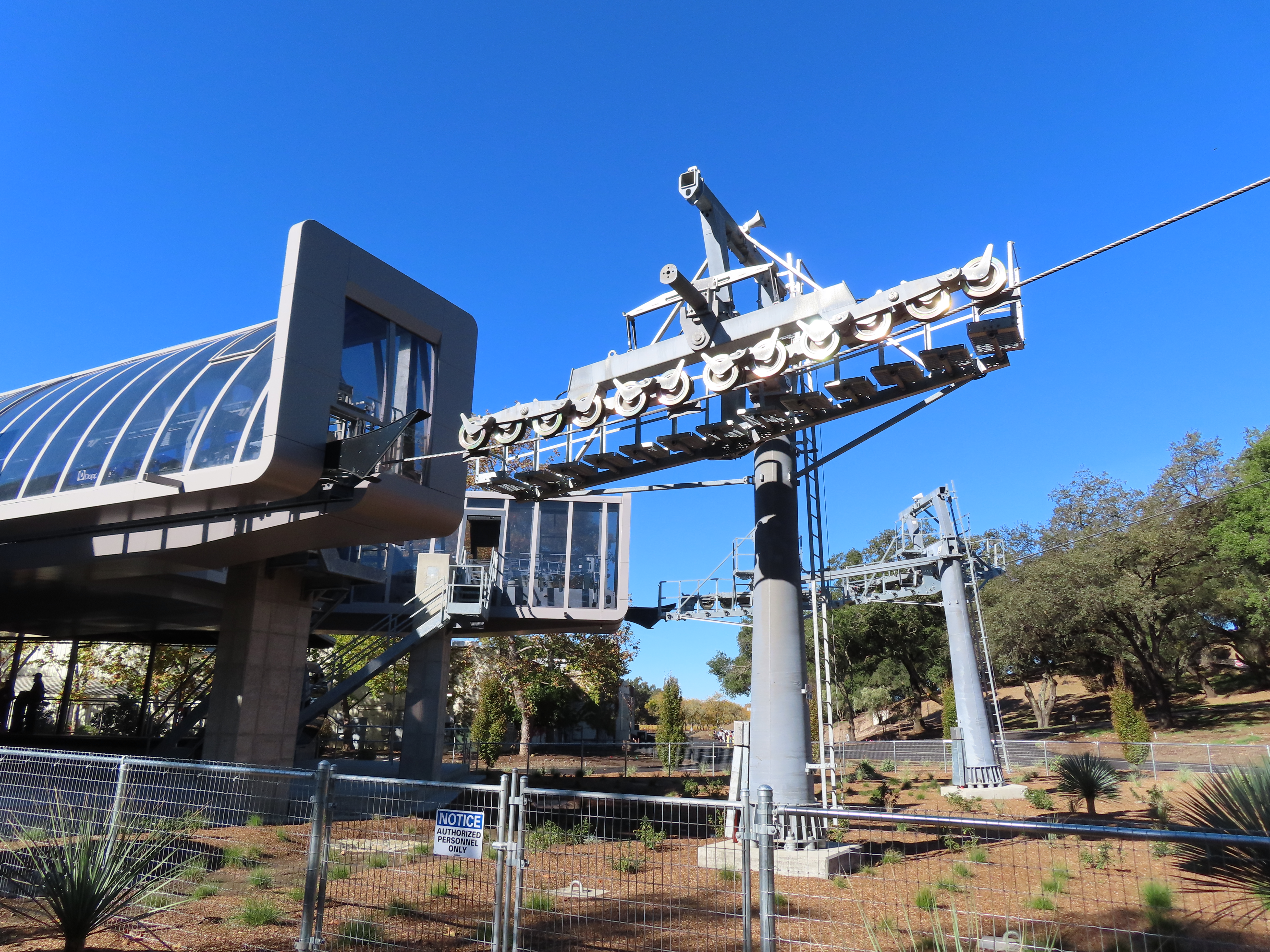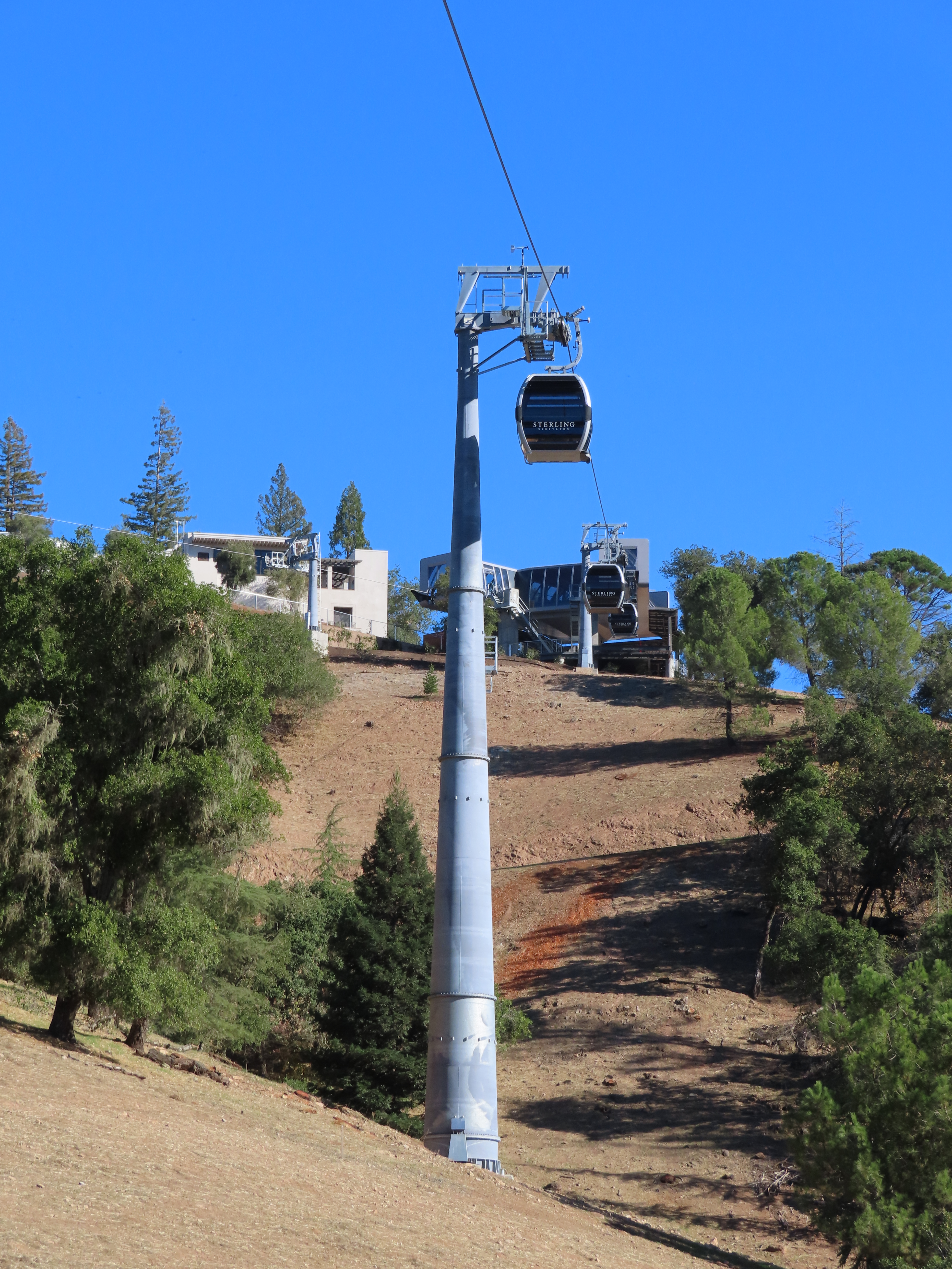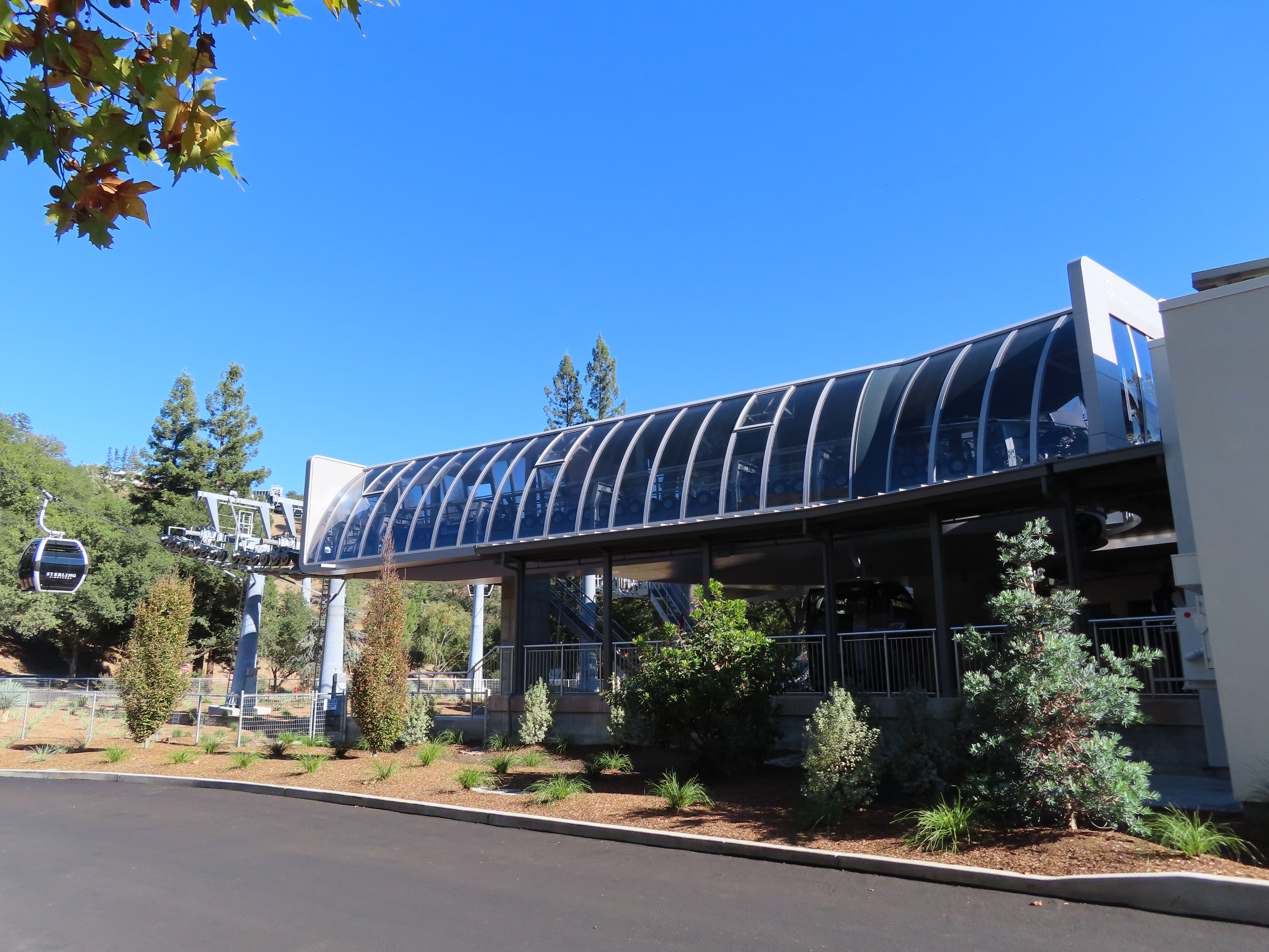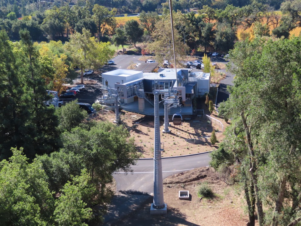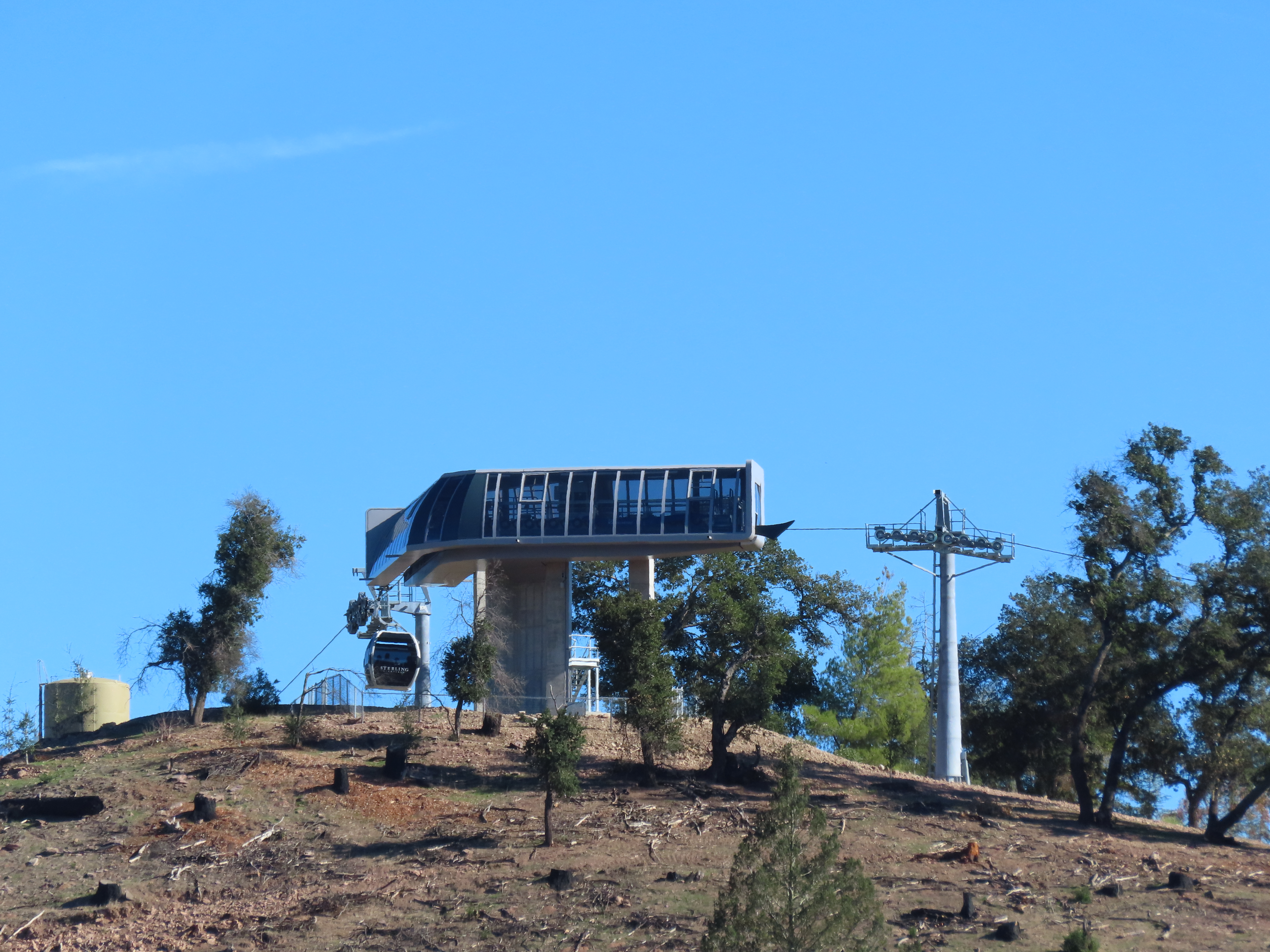 This D-Line gondola replaced an older four person gondola in a similar triangle alignment.Visitors load at the bottom station and travel up to tasting rooms and a gift shop with an intermediate station along the way.Tower 3.The first two towers at the drive station.All three stations are angled with cabins travelling one way.Tower 9, the tallest on the entire lift on the downhill portion of the line.Tower 11.Overview of the base station with small maintenance area.Tower 10.The loading area.An Omega V cabin in the bottom station.View departing the lower terminal.Bottom station seen from above.Towers 1, 2, 3 and 11 near the lower terminus.View riding up the first segment of the line.Nearing the first angle station and tower 5.View back down the lift line.Short middle section between the two non-drive stations.This station has no loading, unloading or operator.Short tower 6.View arriving at the wine tasting station.Doppelmayr Connect controls.Each station is wheelchair accessible, unlike the old gondola.Side view of a tower and Omega IV cabin.View along the ridge top.Another view of the unmanned station.Hilltop station with half towers.View of the gondola from the vineyard’s terrace.Upper station overview.Doppelmayr detachable equipment.Side view of a short D-Line station.Tower 7.Eight passenger cabin.Another view of the third station.Loading area at the summit.Doppelmayr USA operates and maintains the gondola on behalf of the vineyard.A cabin in the station.View leaving the ridge.Half station.Tower 8.Tower 9.View of the vineyard estate from the gondola.Arriving back at the base.Cabins traveling one way down the line.The lower station and towers.Another view of the drive station.Cabins traveling along two different segments.Unmanned terminal seen from the valley.