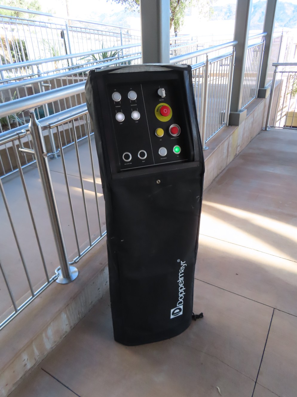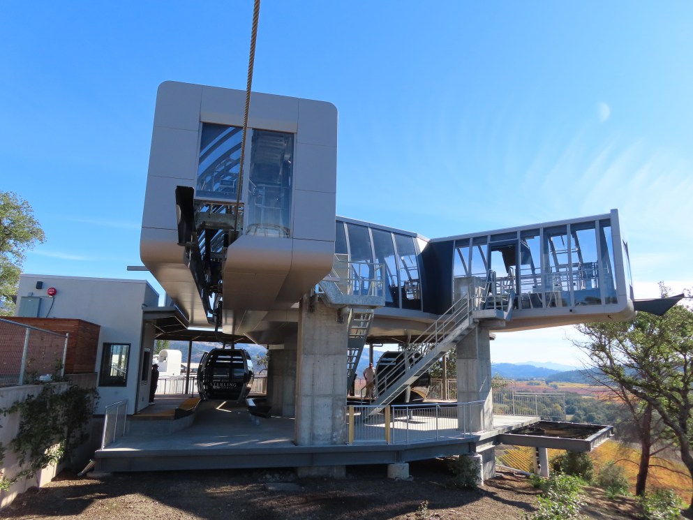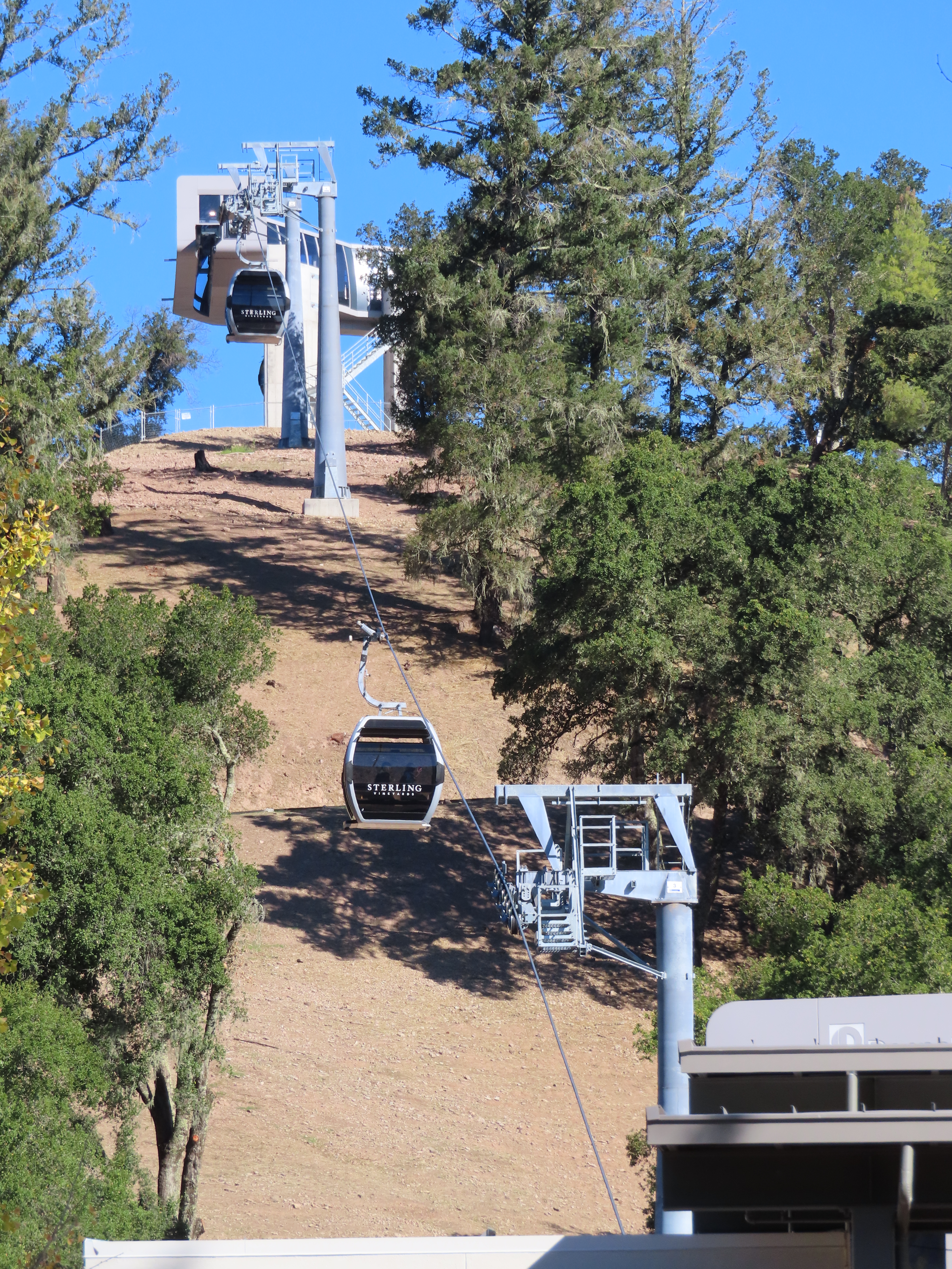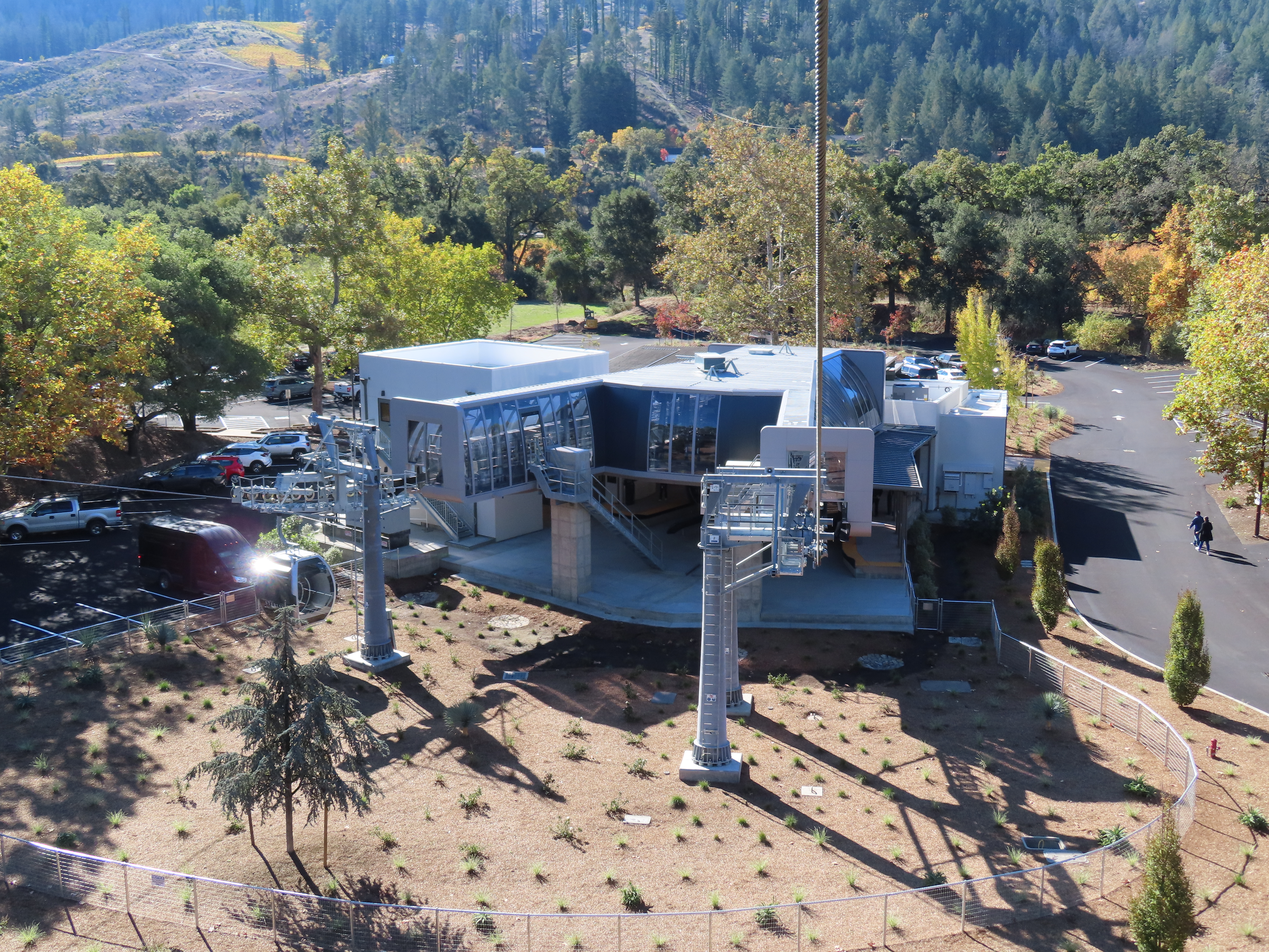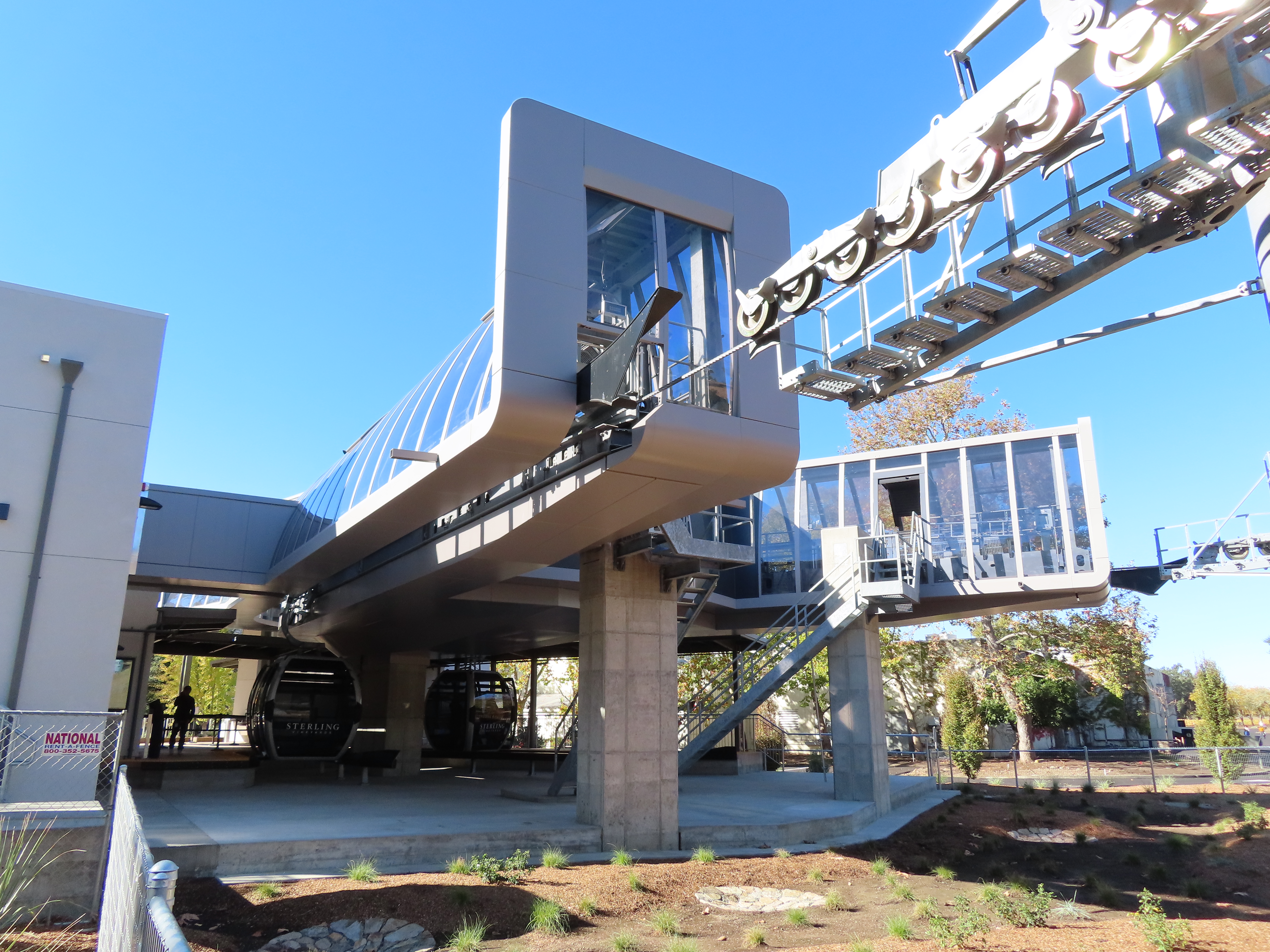 This D-Line gondola replaced an older four person gondola in a similar triangle alignment.Visitors load at the bottom station and travel up to tasting rooms and a gift shop with an intermediate station along the way.Tower 3.The first two towers at the drive station.All three stations are angled with cabins travelling one way.Tower 9, the tallest on the entire lift on the downhill portion of the line.Tower 11.Overview of the base station with small maintenance area.Tower 10.The loading area.An Omega V cabin in the bottom station.View departing the lower terminal.Bottom station seen from above.Towers 1, 2, 3 and 11 near the lower terminus.View riding up the first segment of the line.Nearing the first angle station and tower 5.View back down the lift line.Short middle section between the two non-drive stations.This station has no loading, unloading or operator.Short tower 6.View arriving at the wine tasting station.Doppelmayr Connect controls.Each station is wheelchair accessible, unlike the old gondola.Side view of a tower and Omega IV cabin.View along the ridge top.Another view of the unmanned station.Hilltop station with half towers.View of the gondola from the vineyard’s terrace.Upper station overview.Doppelmayr detachable equipment.Side view of a short D-Line station.Tower 7.Eight passenger cabin.Another view of the third station.Loading area at the summit.Doppelmayr USA operates and maintains the gondola on behalf of the vineyard.A cabin in the station.View leaving the ridge.Half station.Tower 8.Tower 9.View of the vineyard estate from the gondola.Arriving back at the base.Cabins traveling one way down the line.The lower station and towers.Another view of the drive station.Cabins traveling along two different segments.Unmanned terminal seen from the valley.